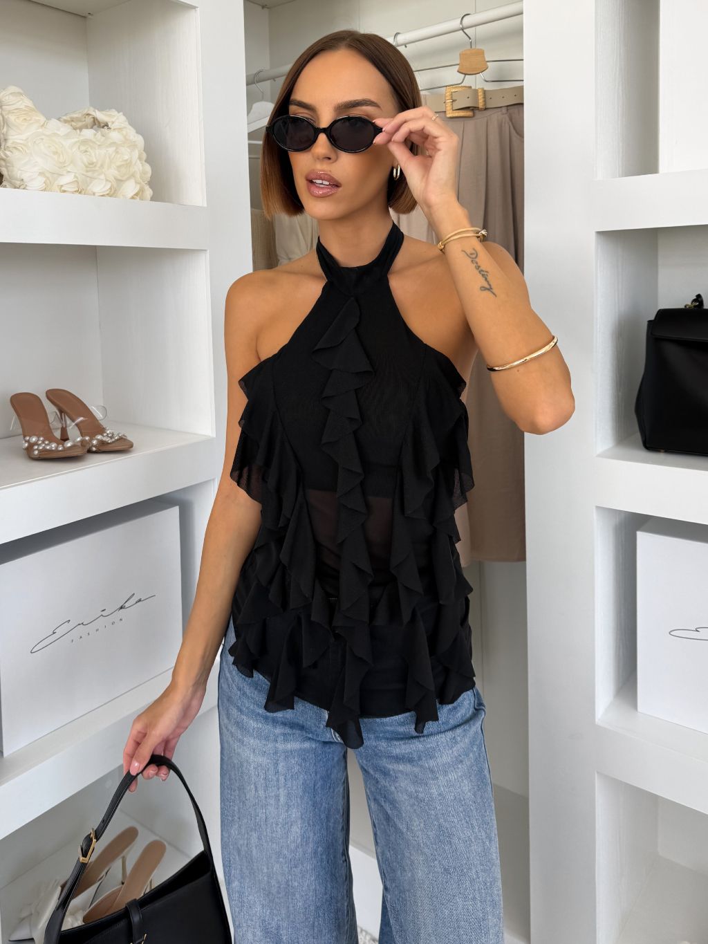 Černý volánkový top BROUZEN