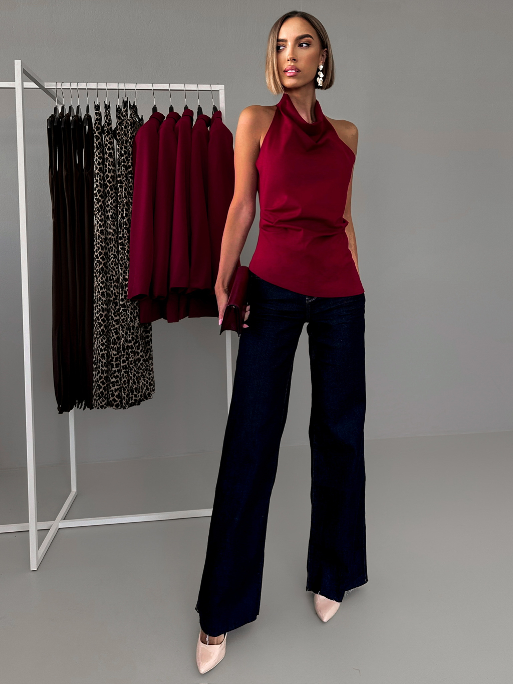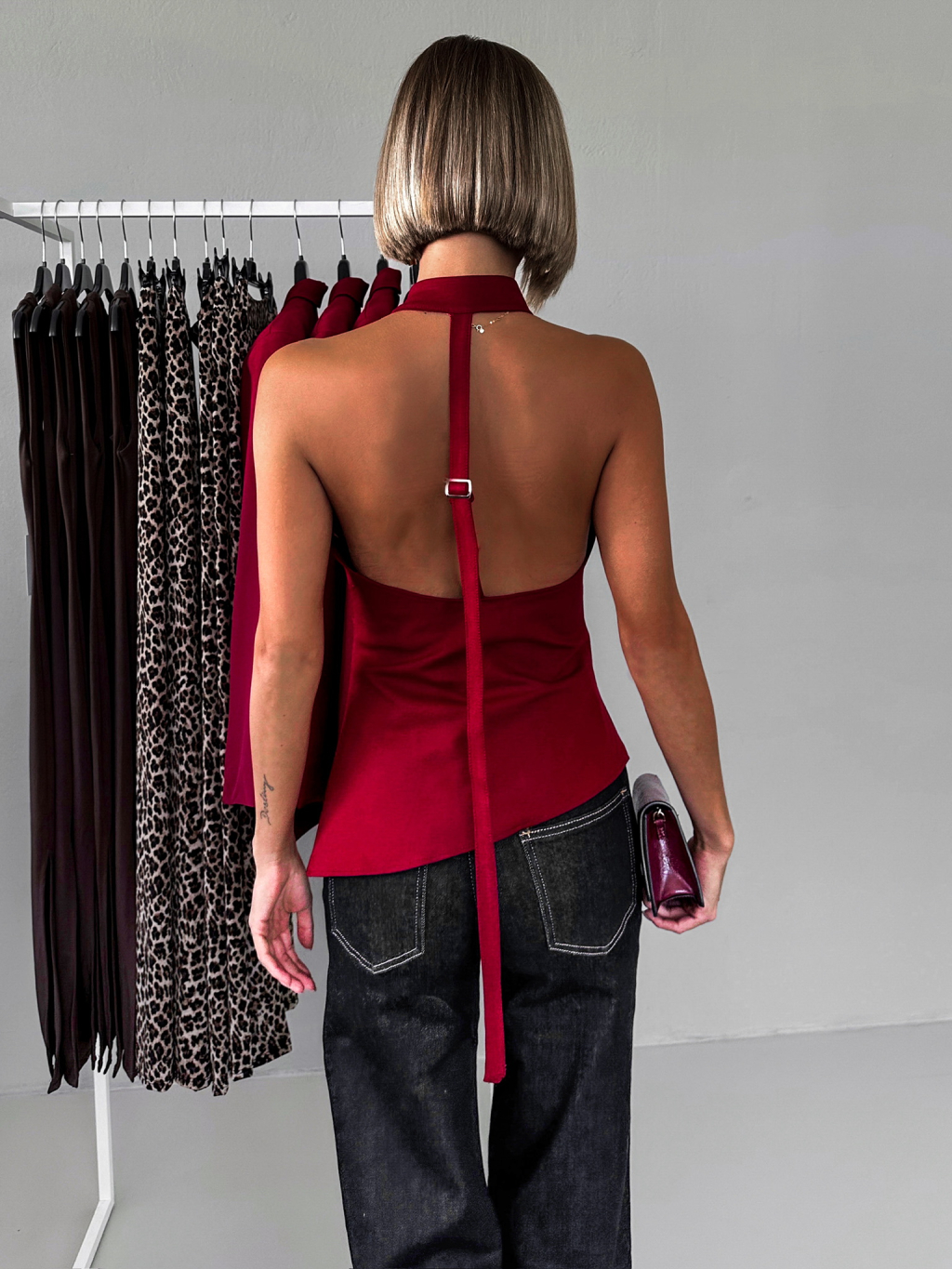 Bordó elegantní top ATANAS s holými zády