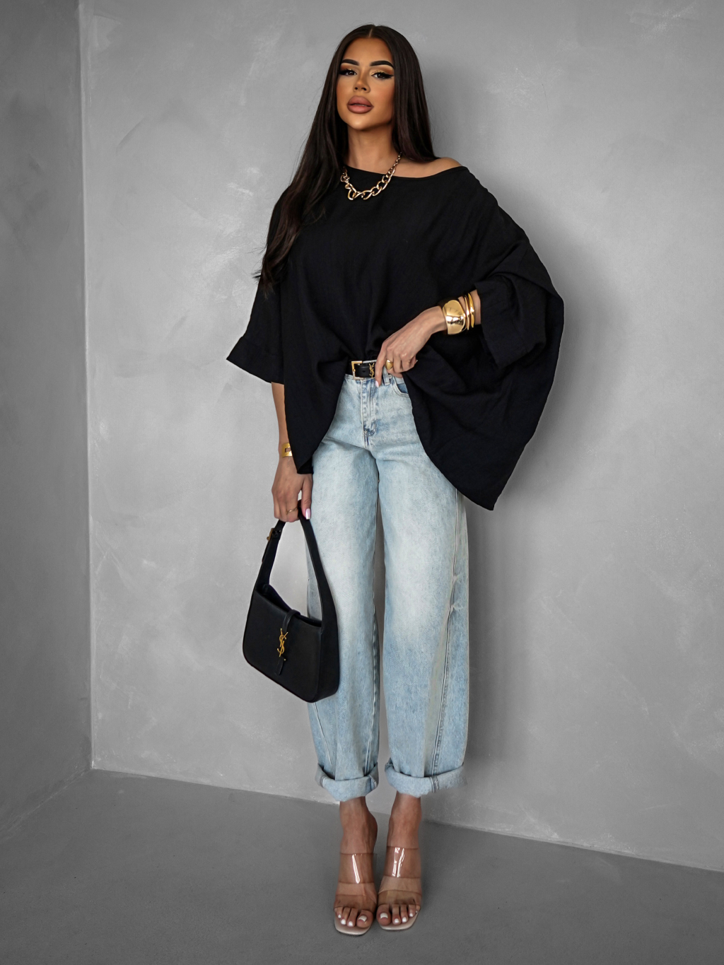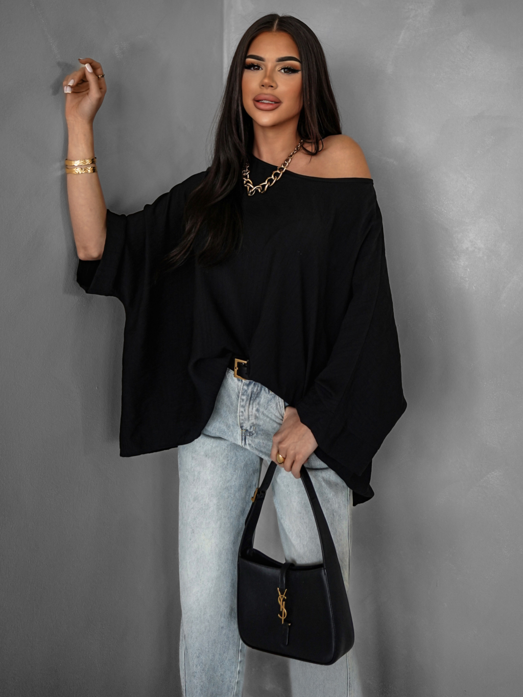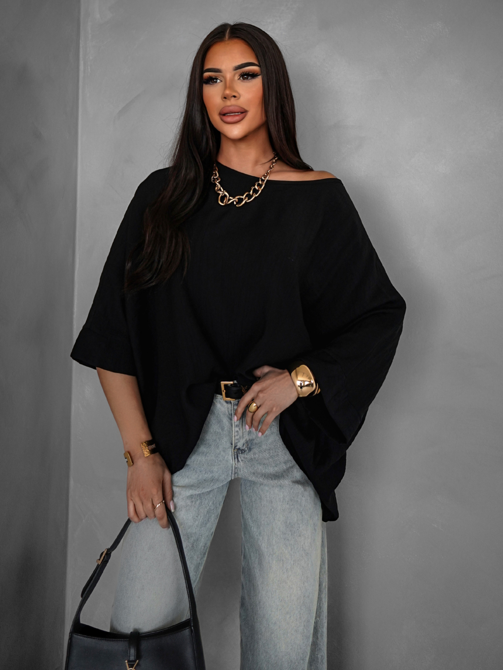Černá oversize tunika LYONNEL s dlouhým rukávem