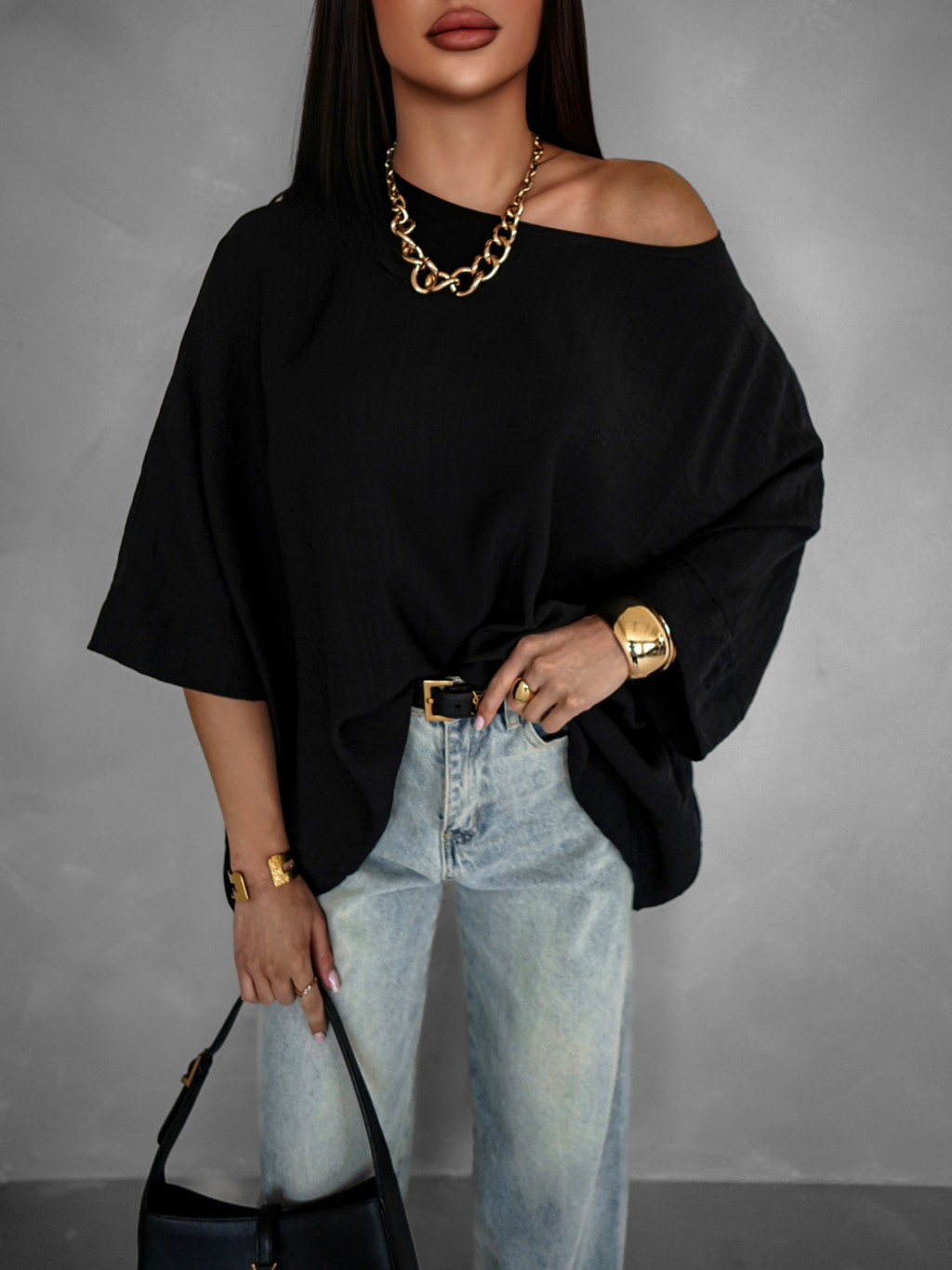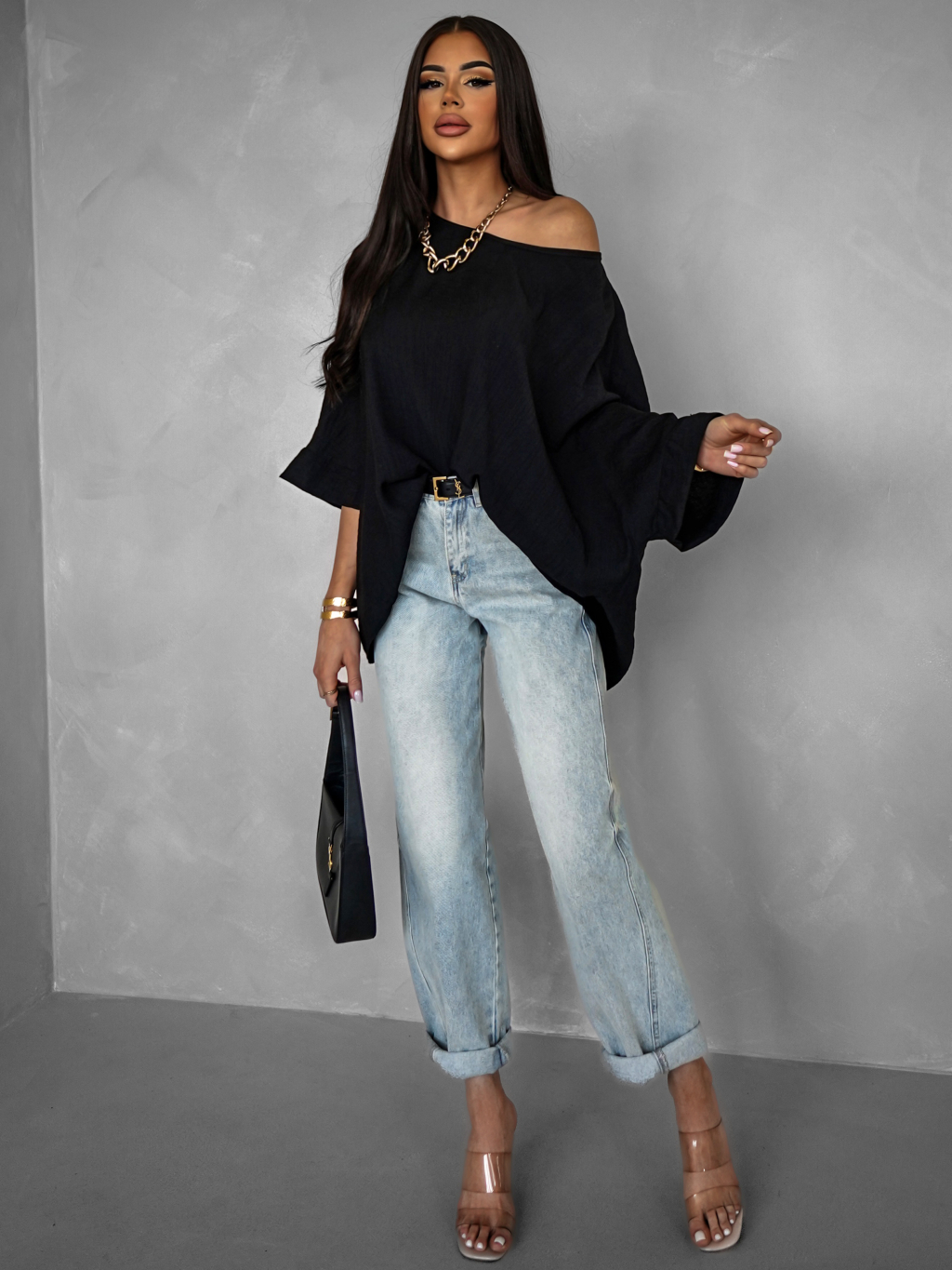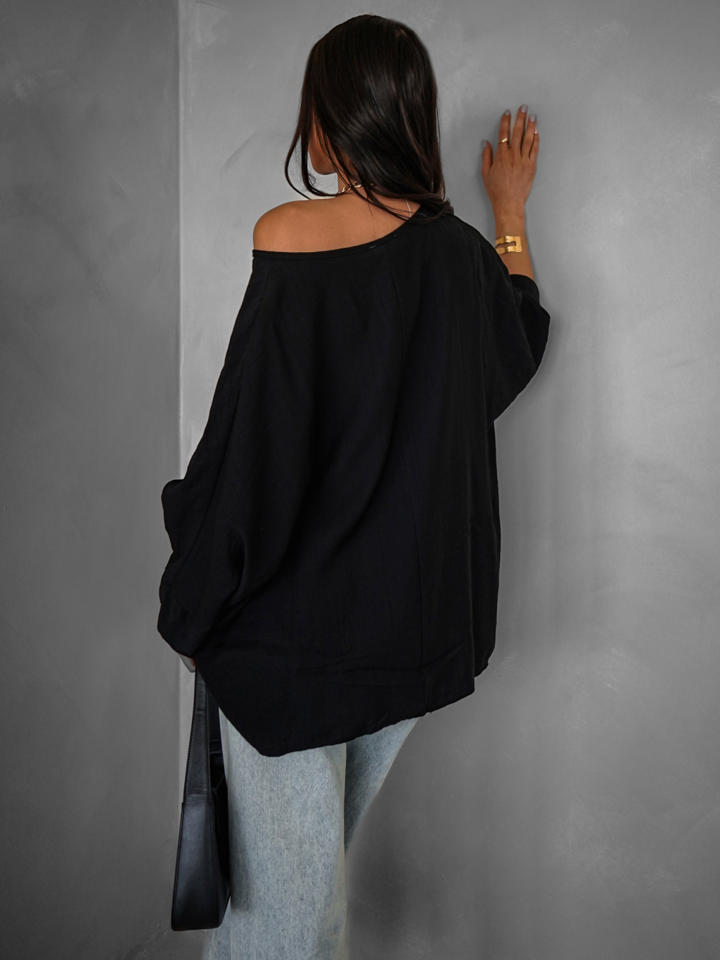 Černá oversize tunika LYONNEL s dlouhým rukávem