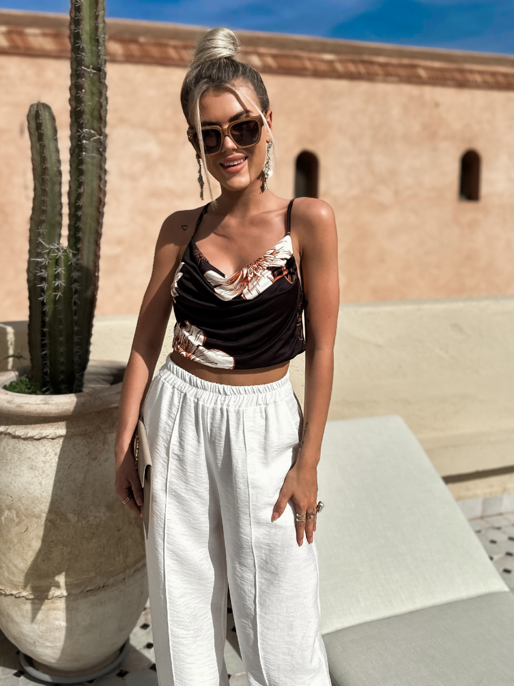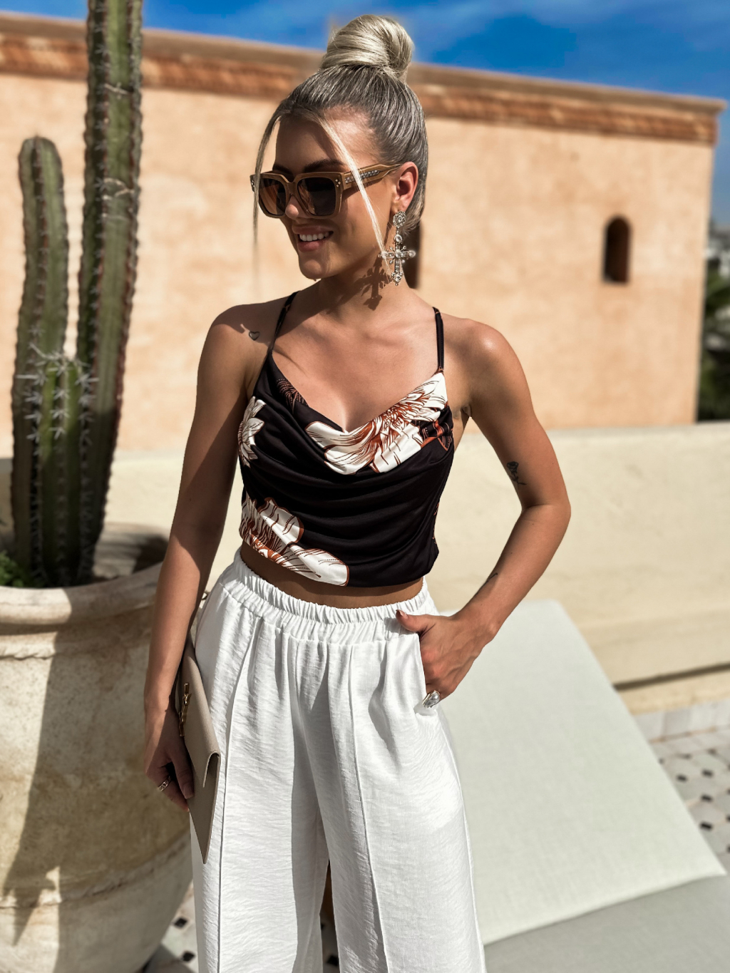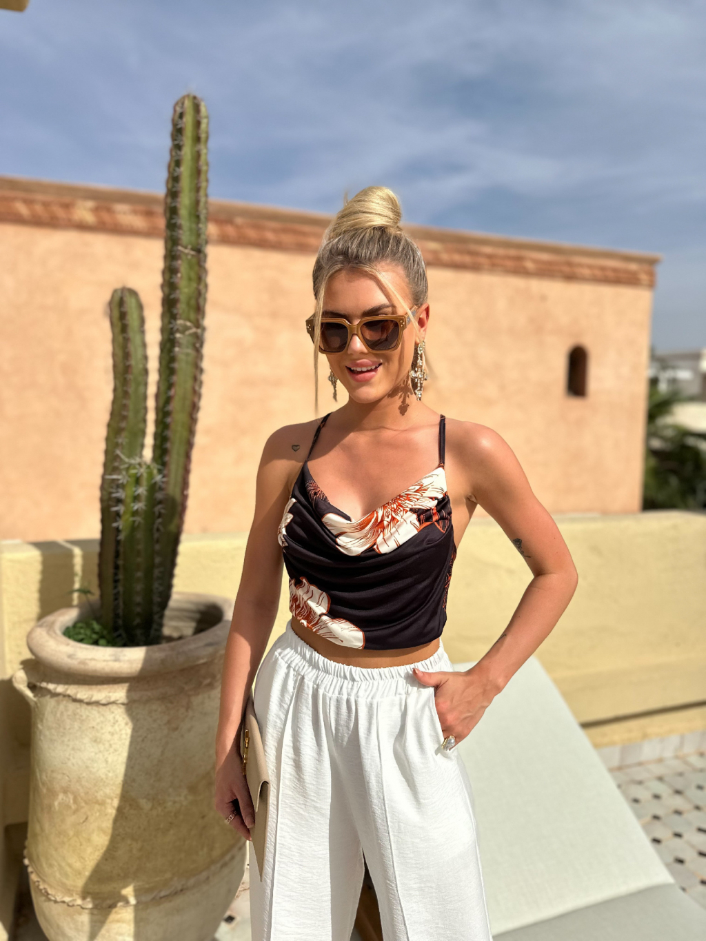 Černý krátký květovaný top ESLI
