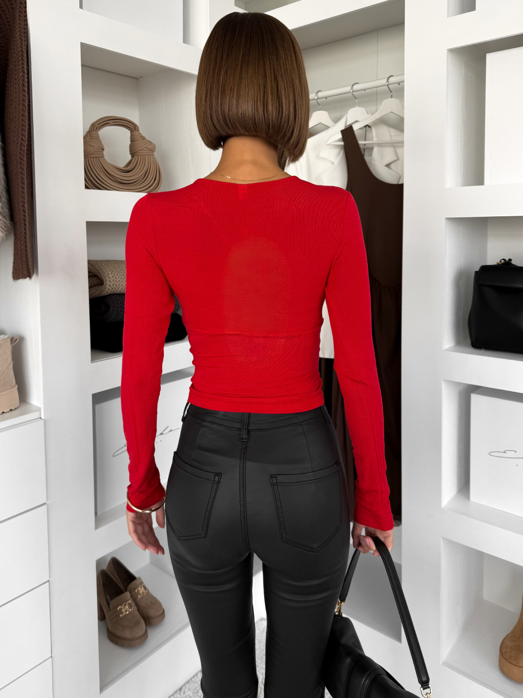 Červený basic top PLOXIS s dlouhým rukávem a výstřihem