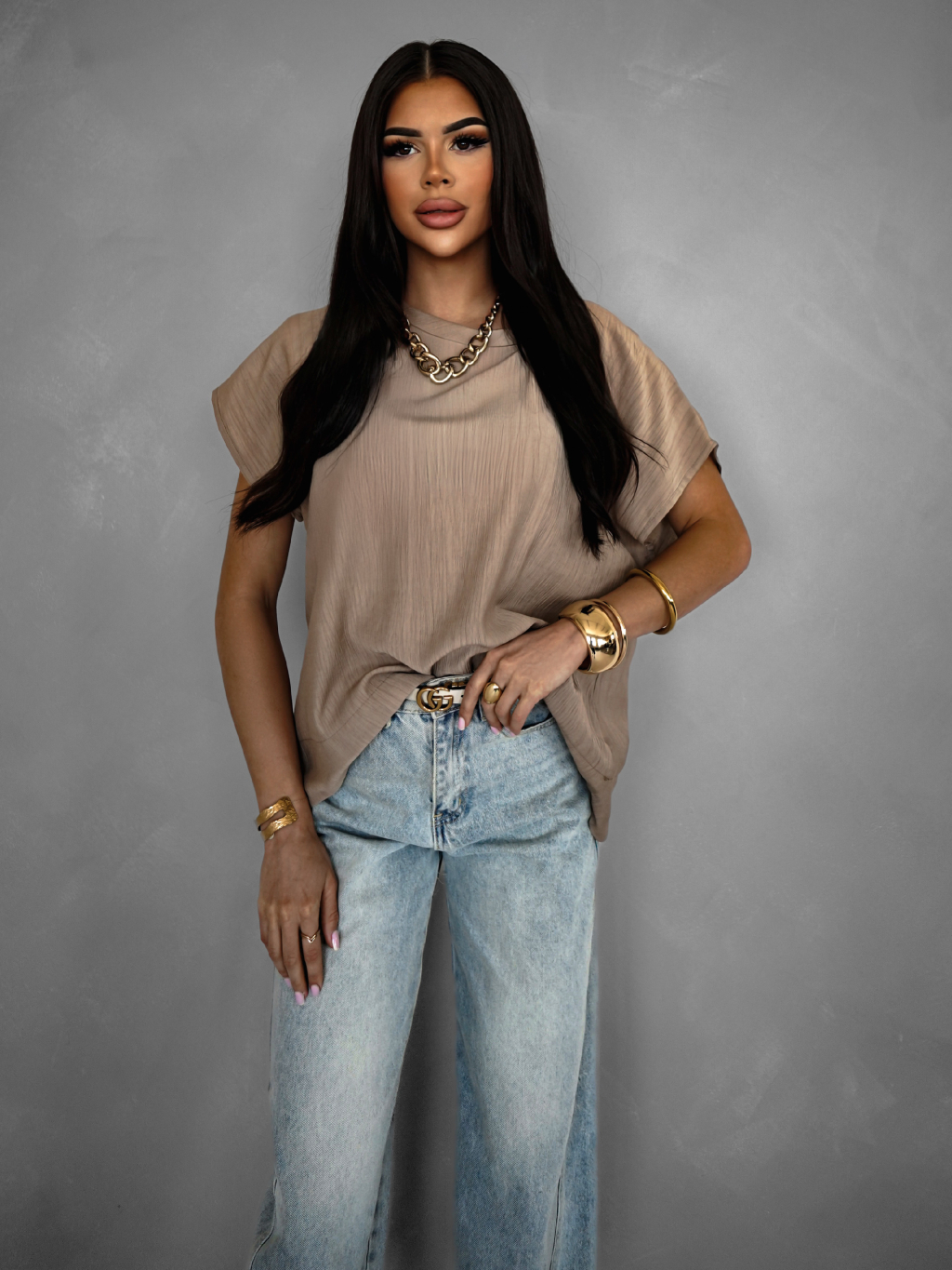 Hnědé oversize triko ALICANT s krátkým rukávem