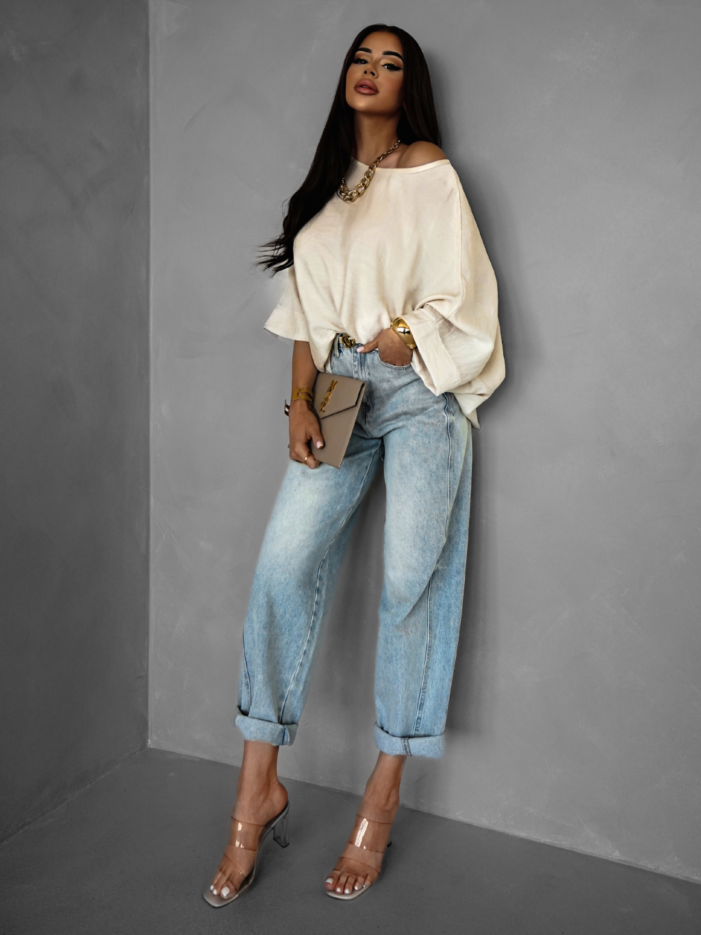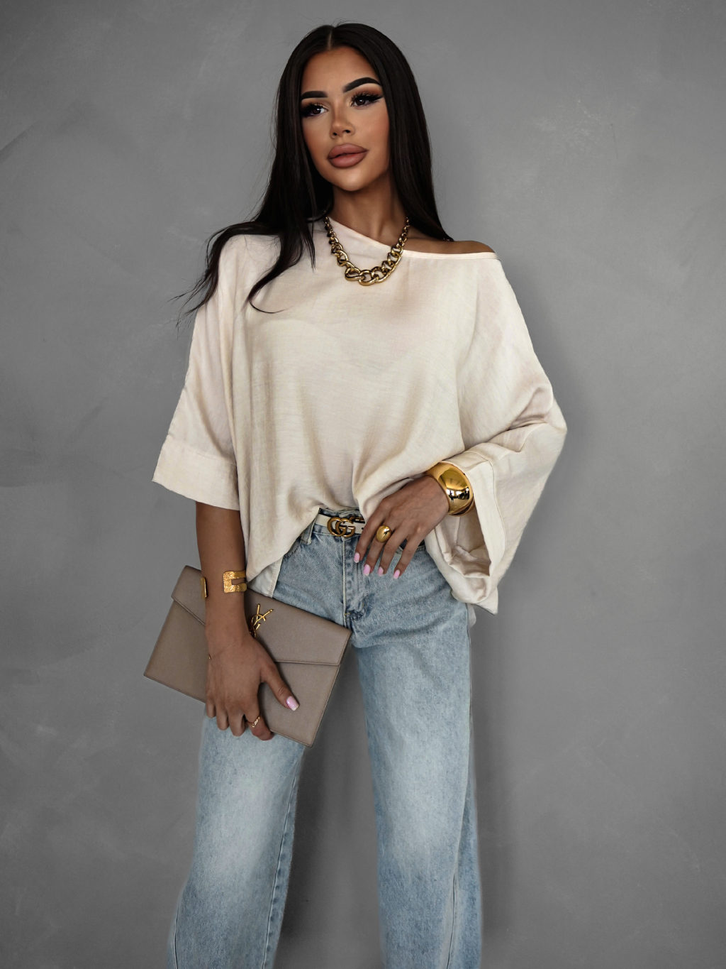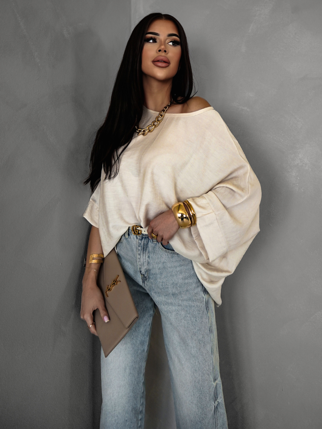 Krémové oversize triko LYONNEL s dlouhým rukávem