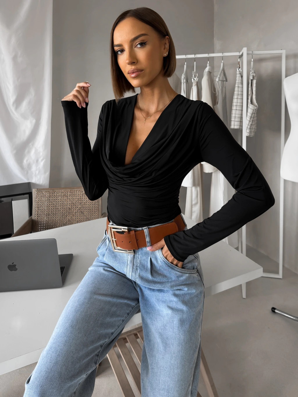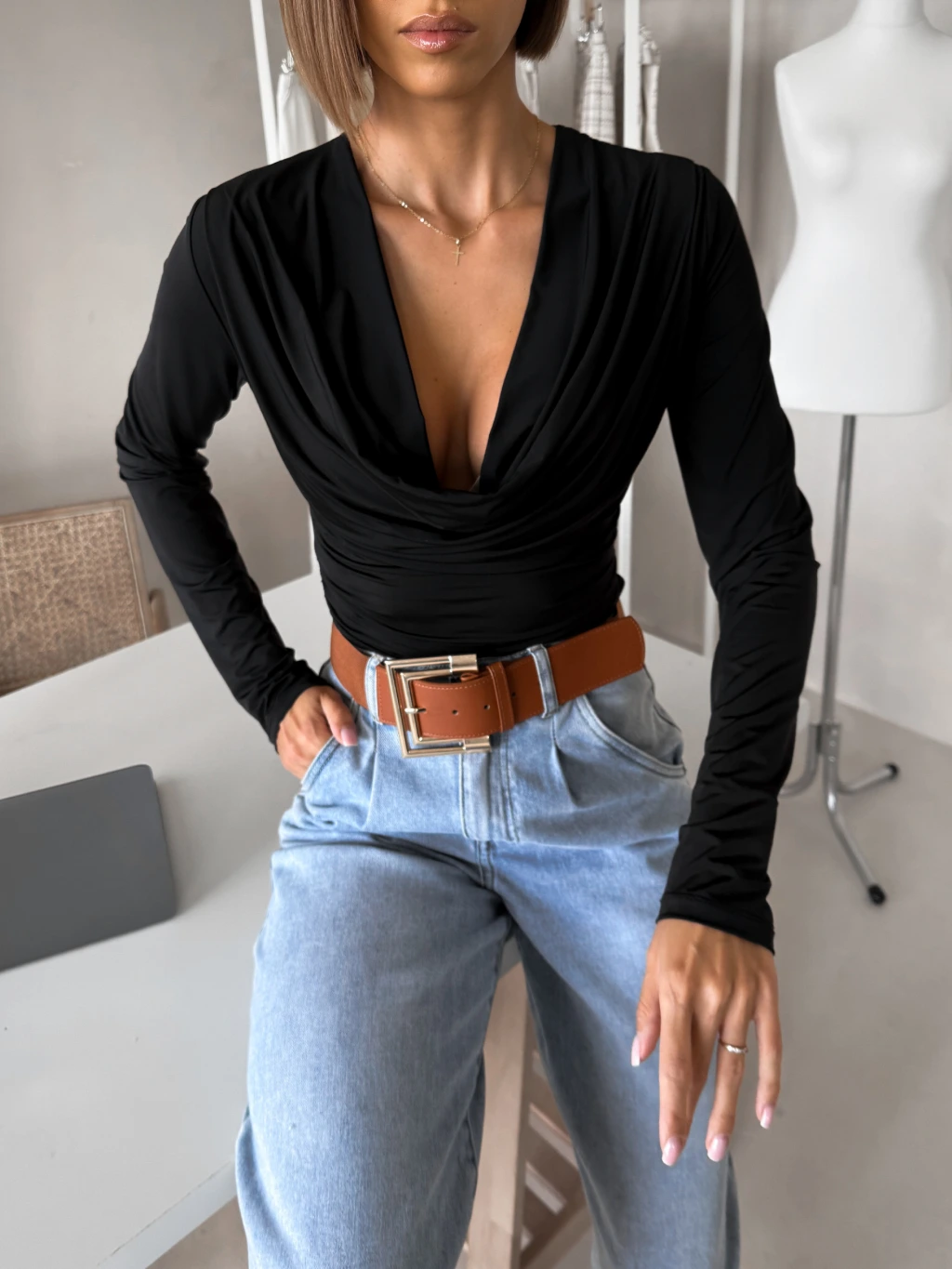 Černé elegantní triko CALIRA s výstřihem