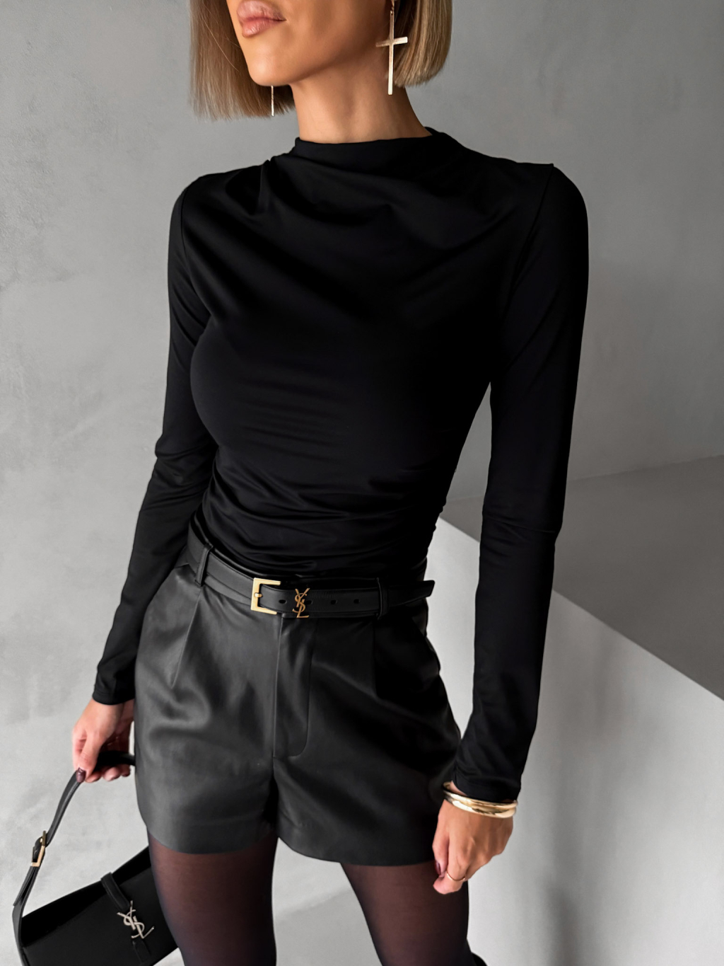 Černý elegantní top SAKLAR s dlouhým rukávem