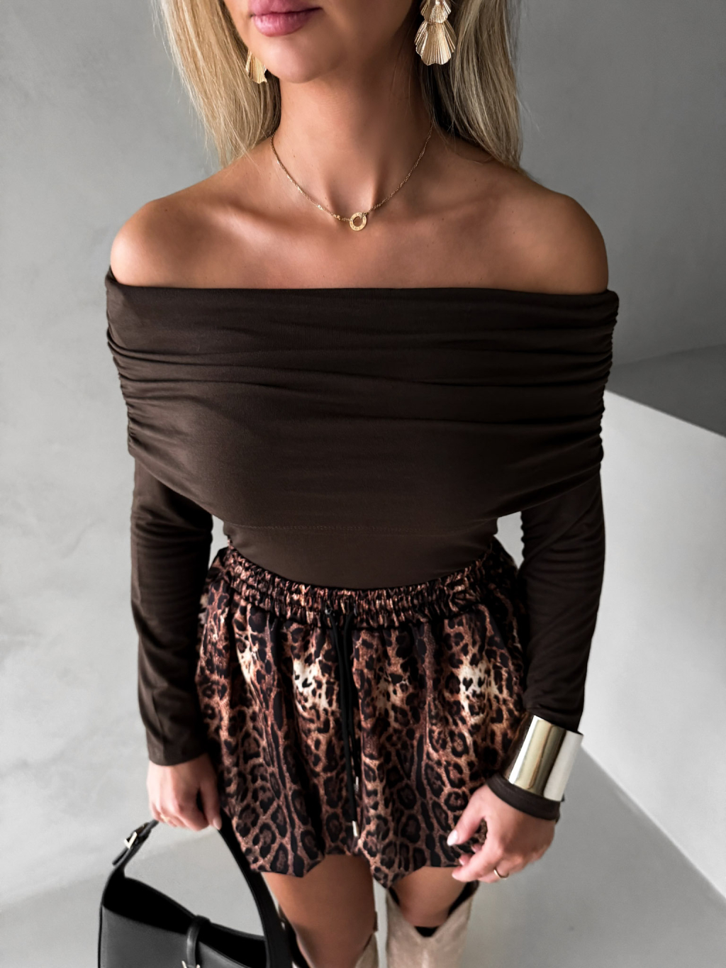Hnědý elegantní top DOLMI s dlouhým rukávem
