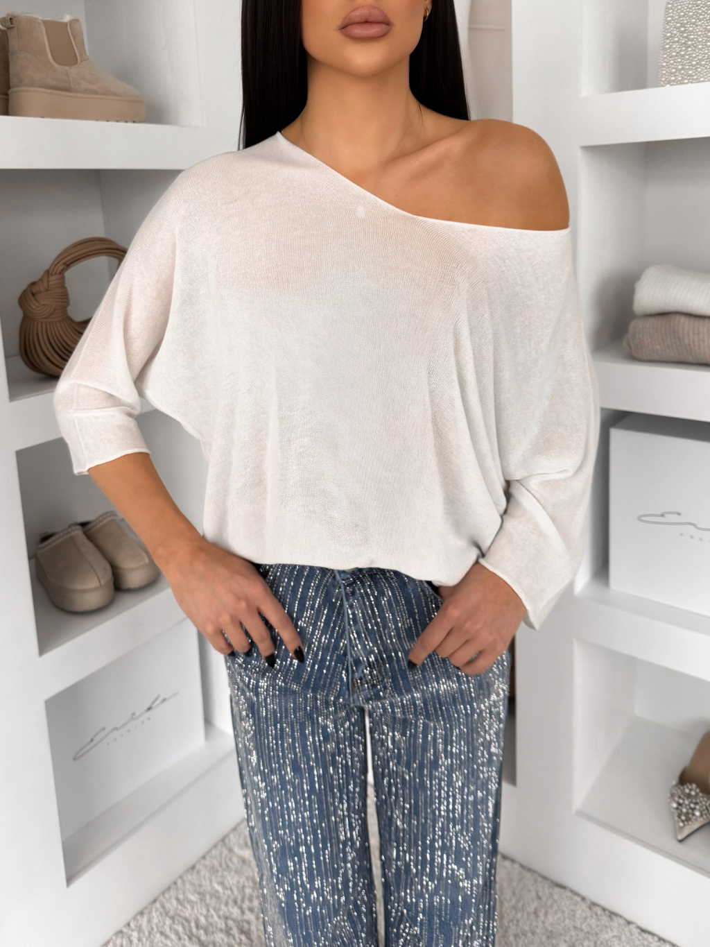Krémový oversize top CRYMORA s 3/4 rukávem