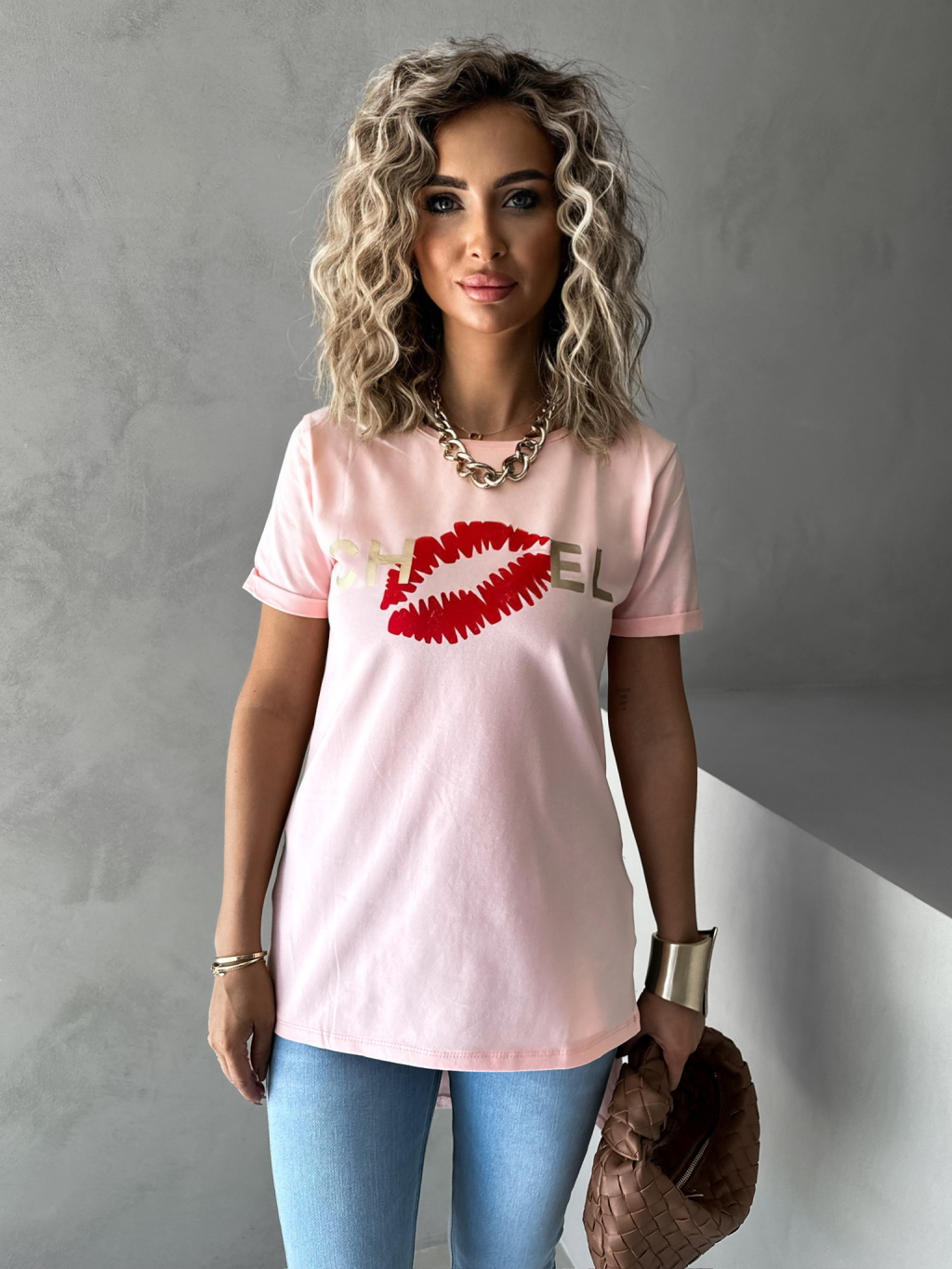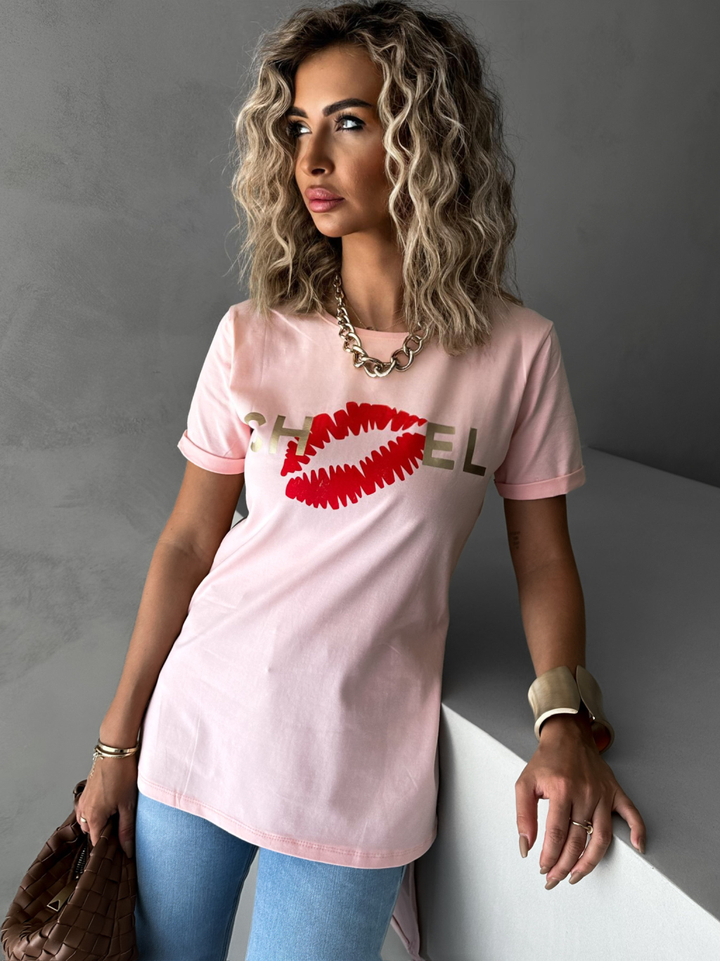 Světle růžové triko CHANELLO s potiskem