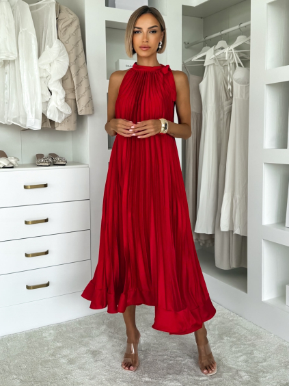 Černo-vínové kárované plisované krátké šaty CEVRIN
