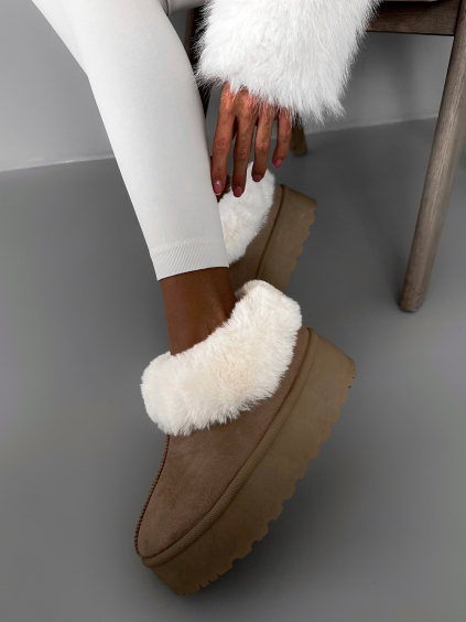 Na Erika Fashion najdeš i pantofle s kožíškem na vyšší platformě, které se naopak hodí na podzim nebo zimu. Milujeme je v kombinaci s rovnými džínami a vlněnými ponožkami k tomu přidej basic tričko a pletený svetr. Cozy outfit, ve kterém budeš chtít být zachumlaná.