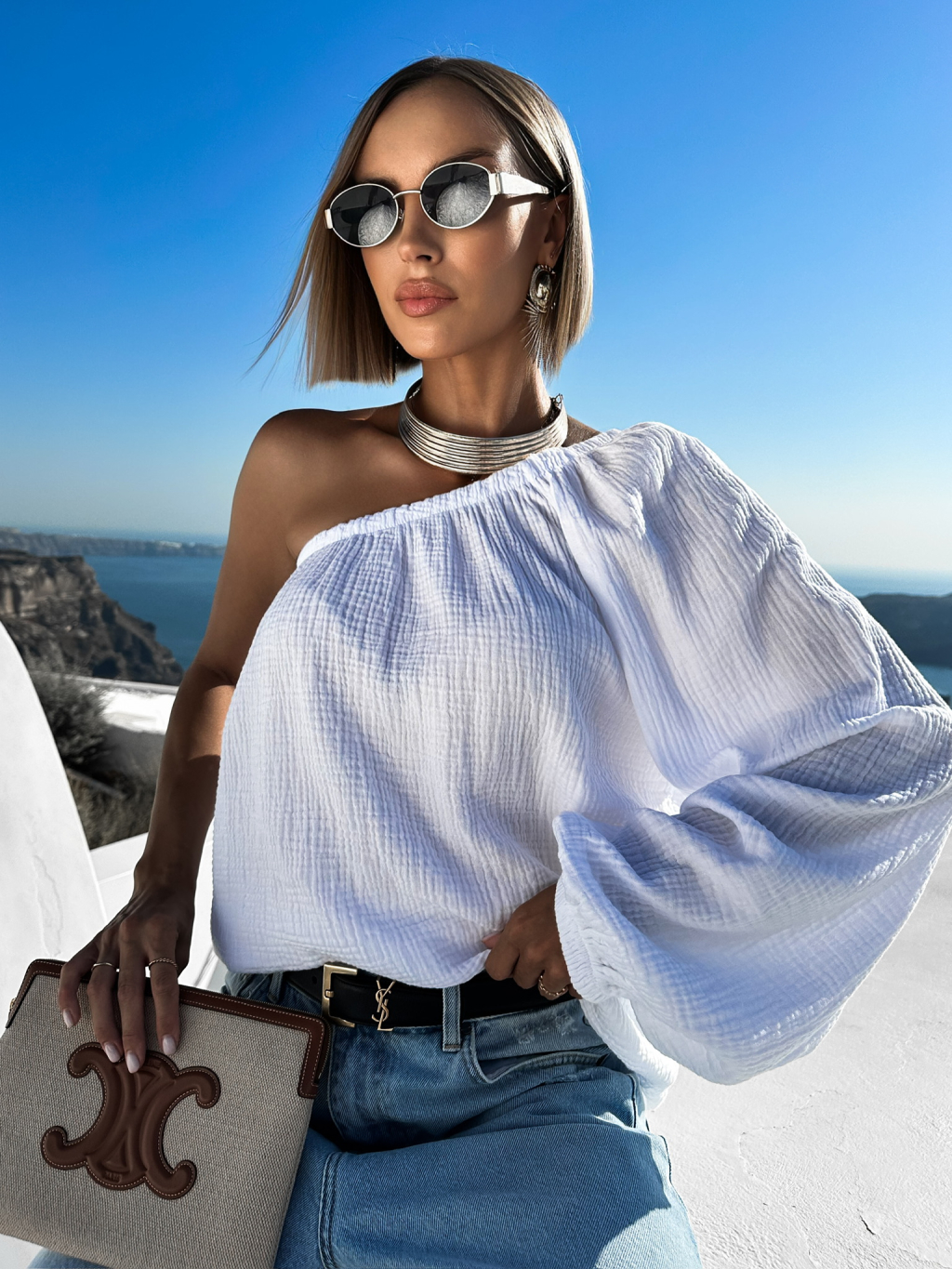 Bílá mušelínová halenka TOMILASI na jedno rameno