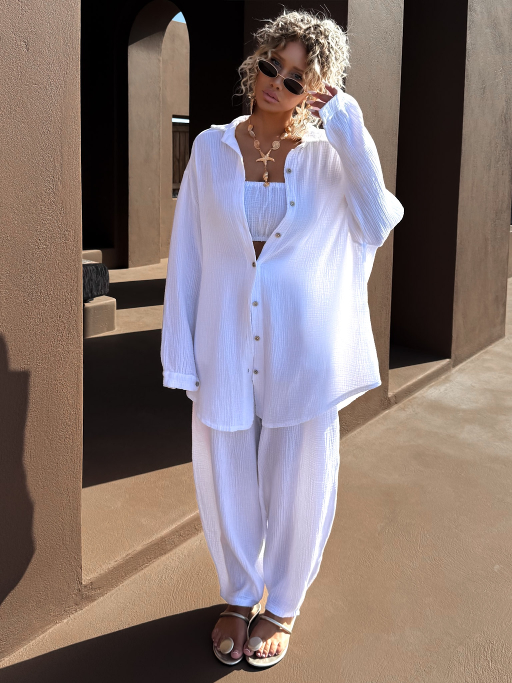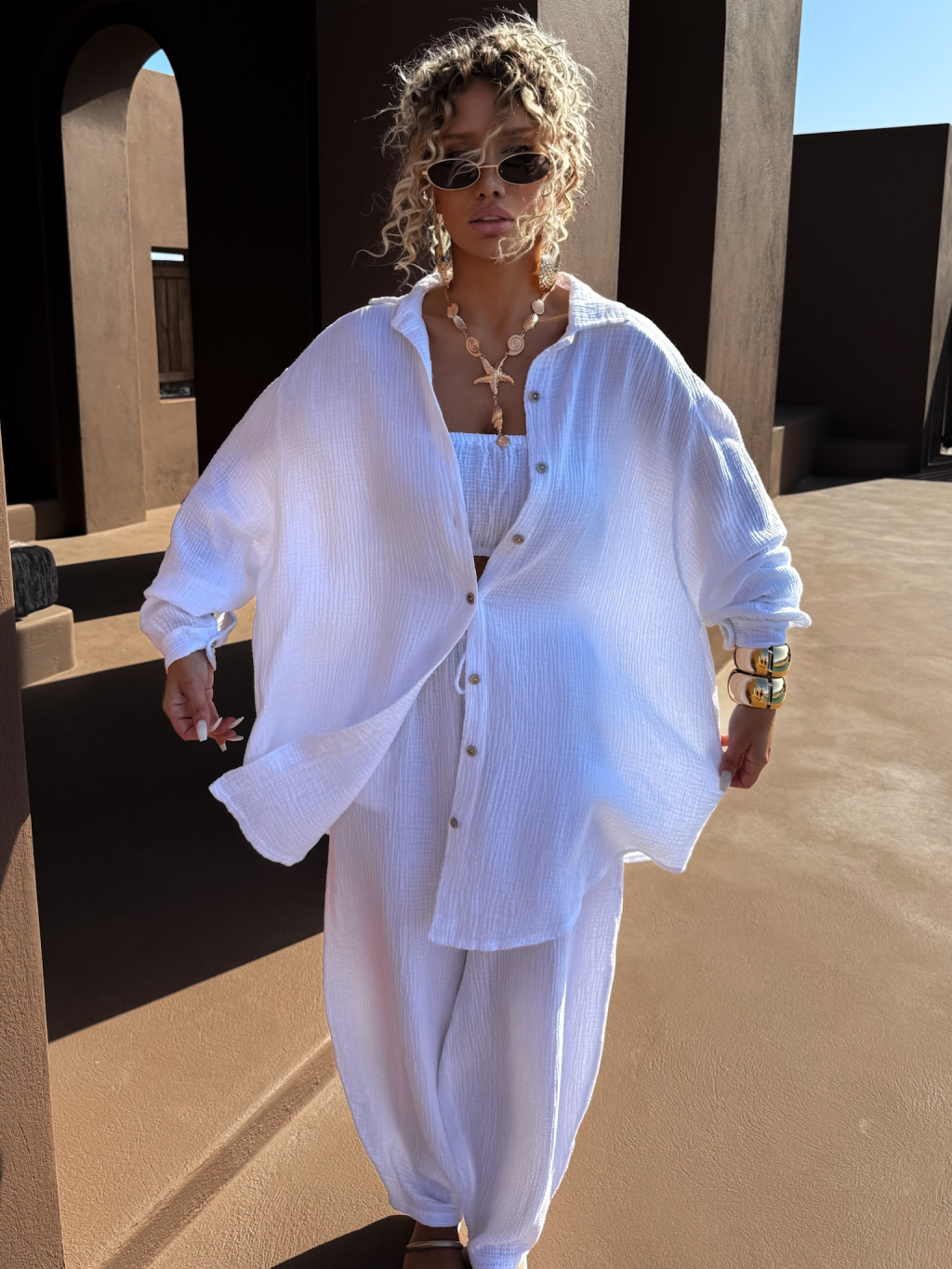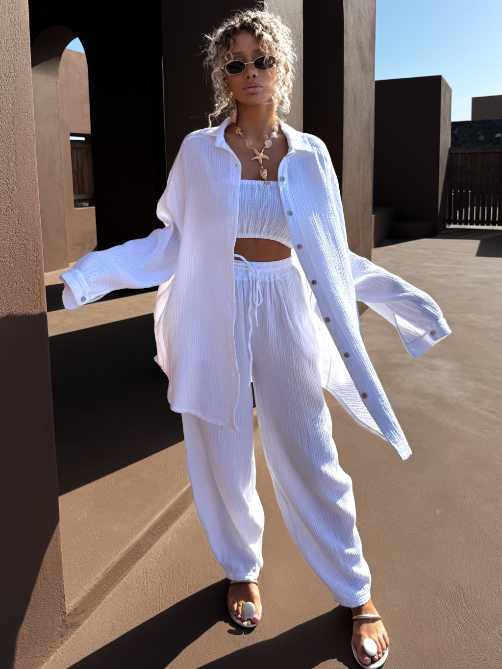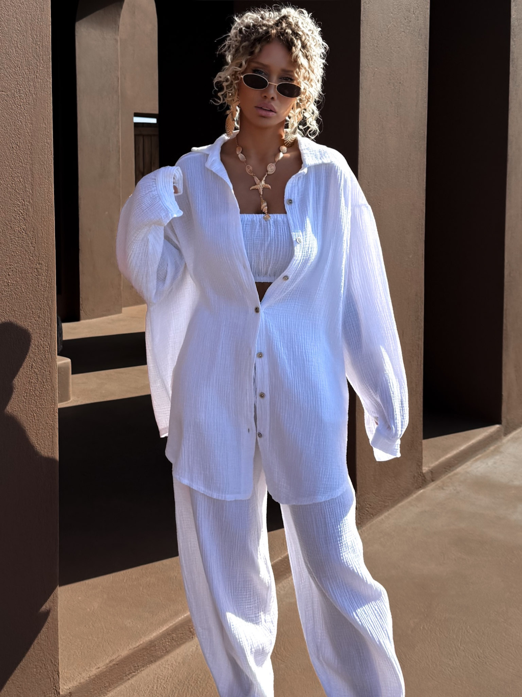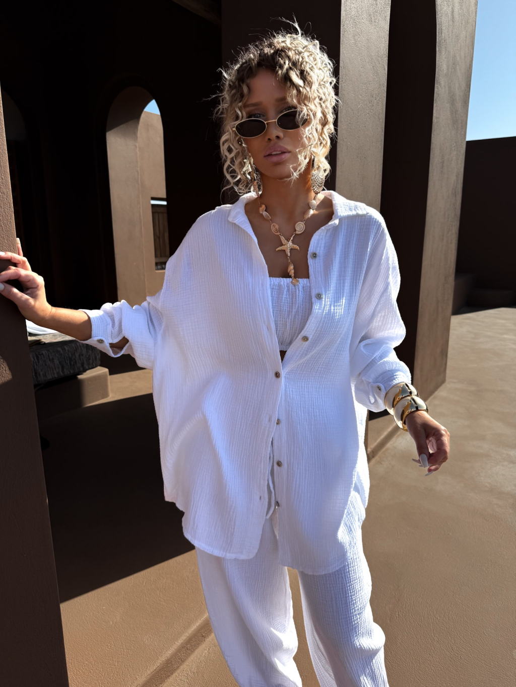 Bílá mušelínová letní oversize košile MEKATHY
