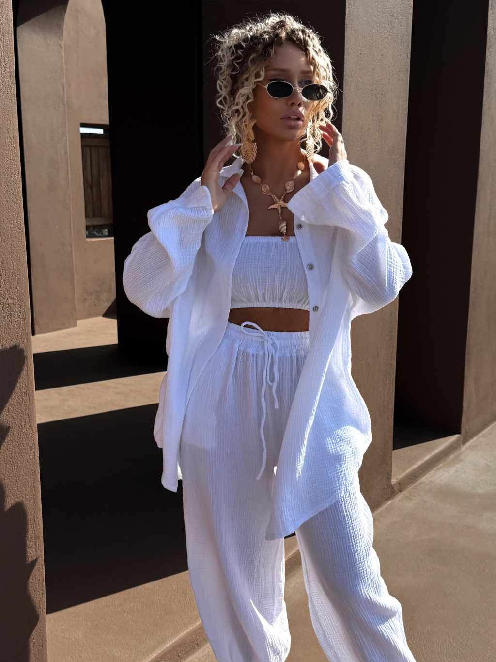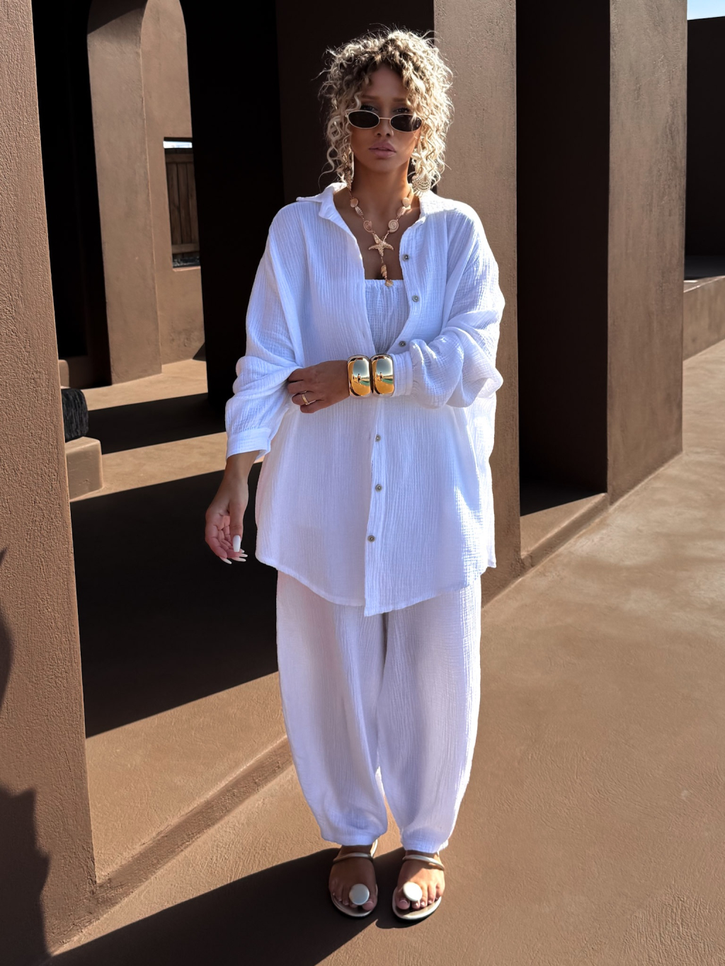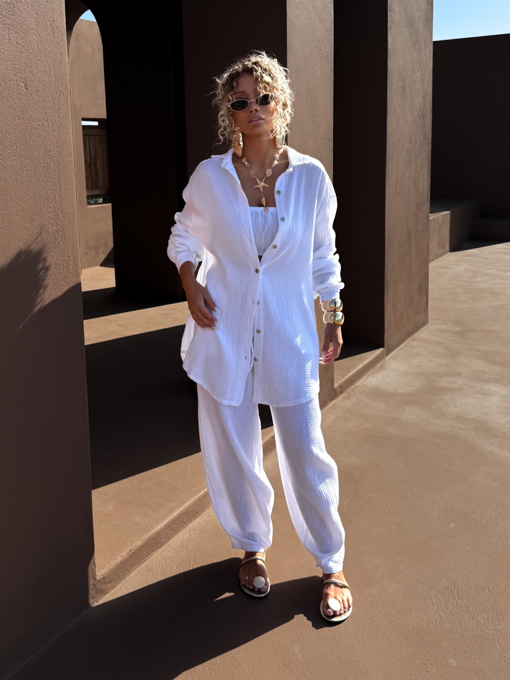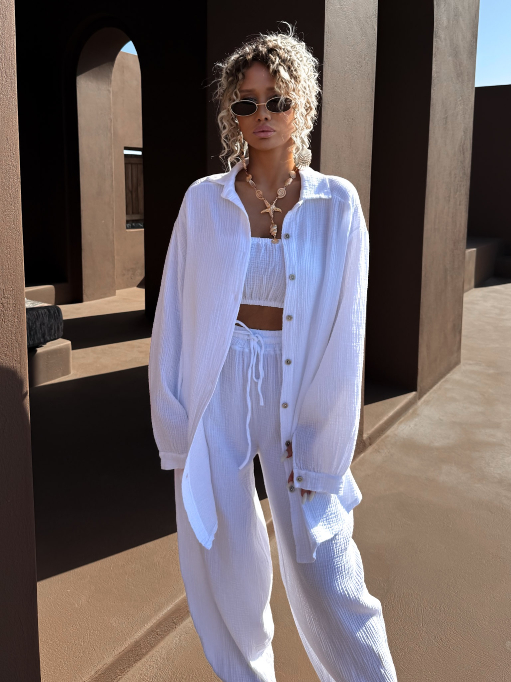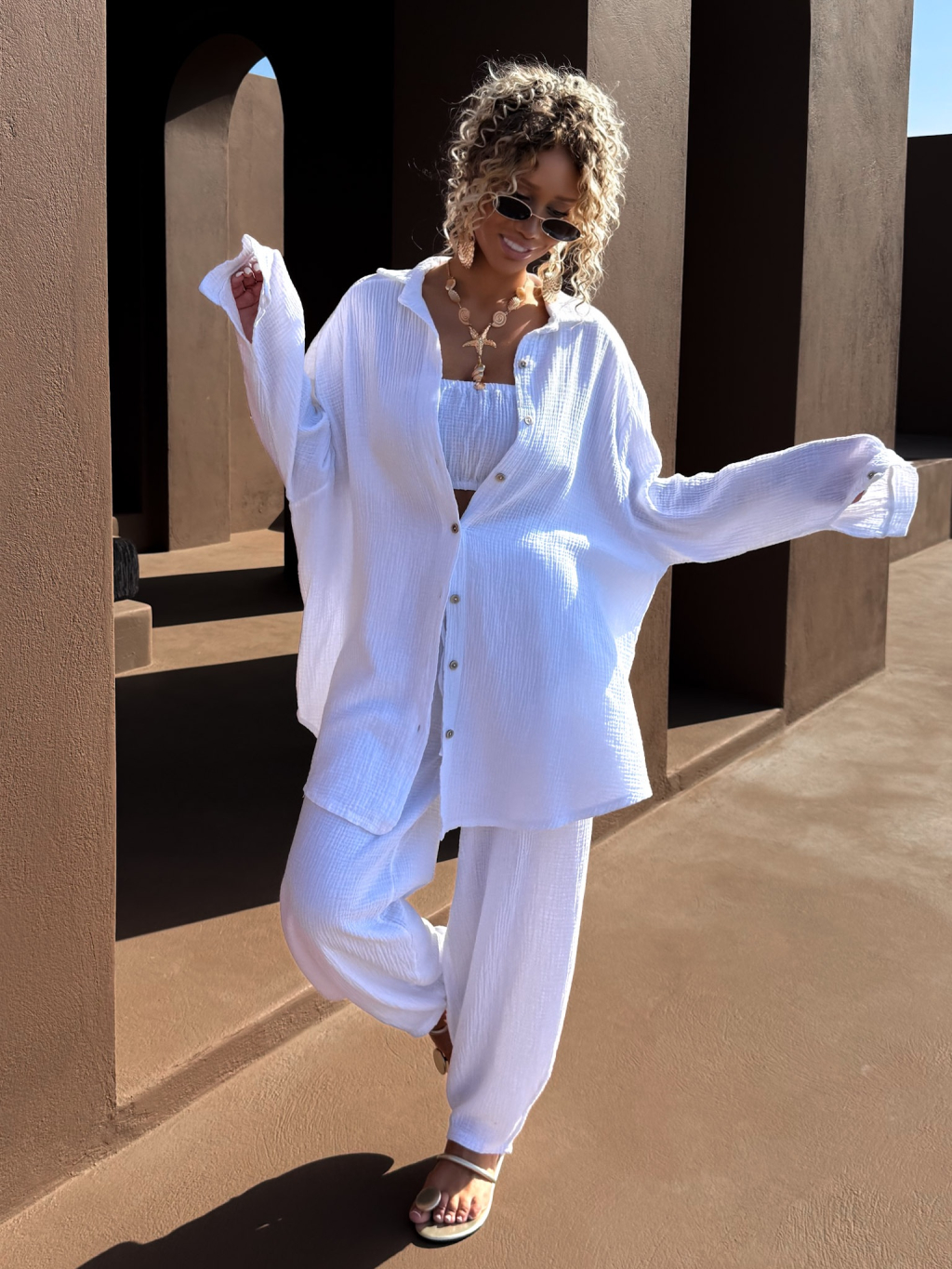 Bílá mušelínová letní oversize košile MEKATHY