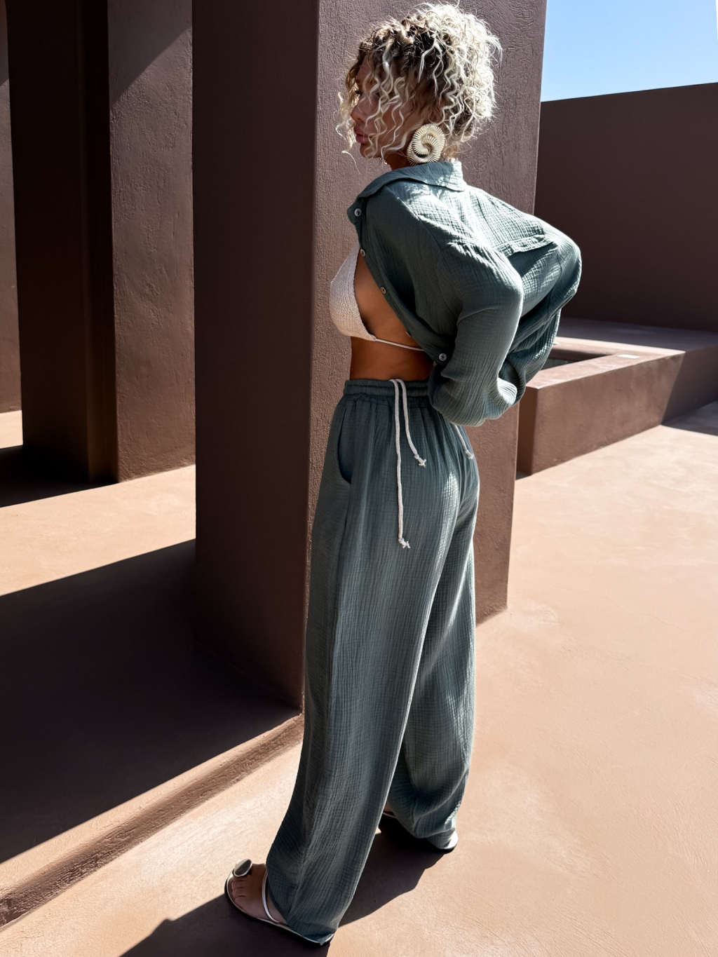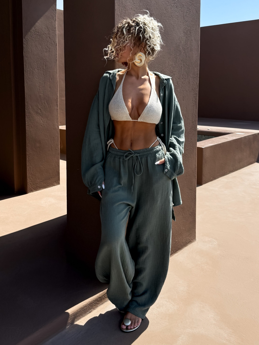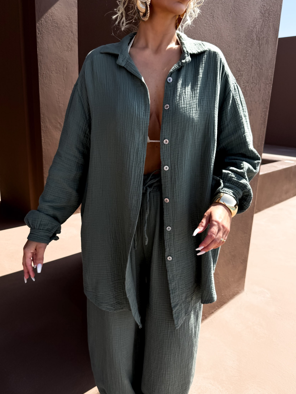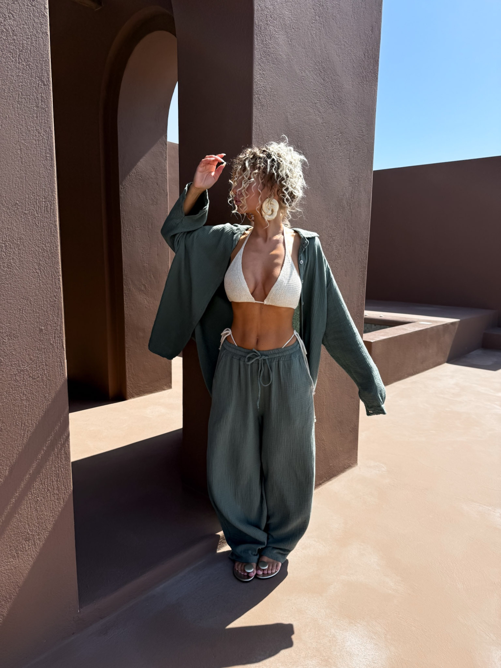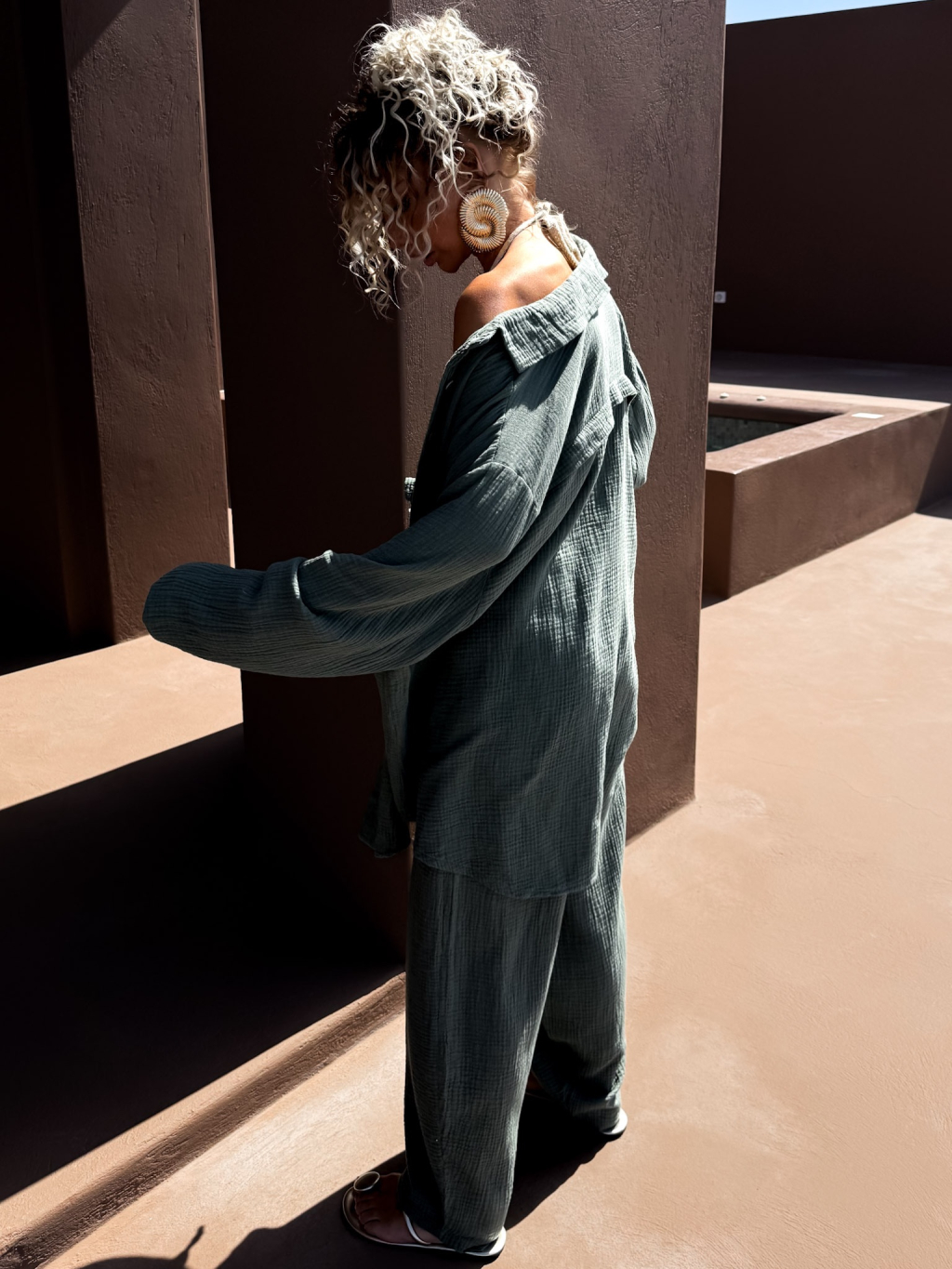 Khaki mušelínová oversize dlouhá košile MEKATHY