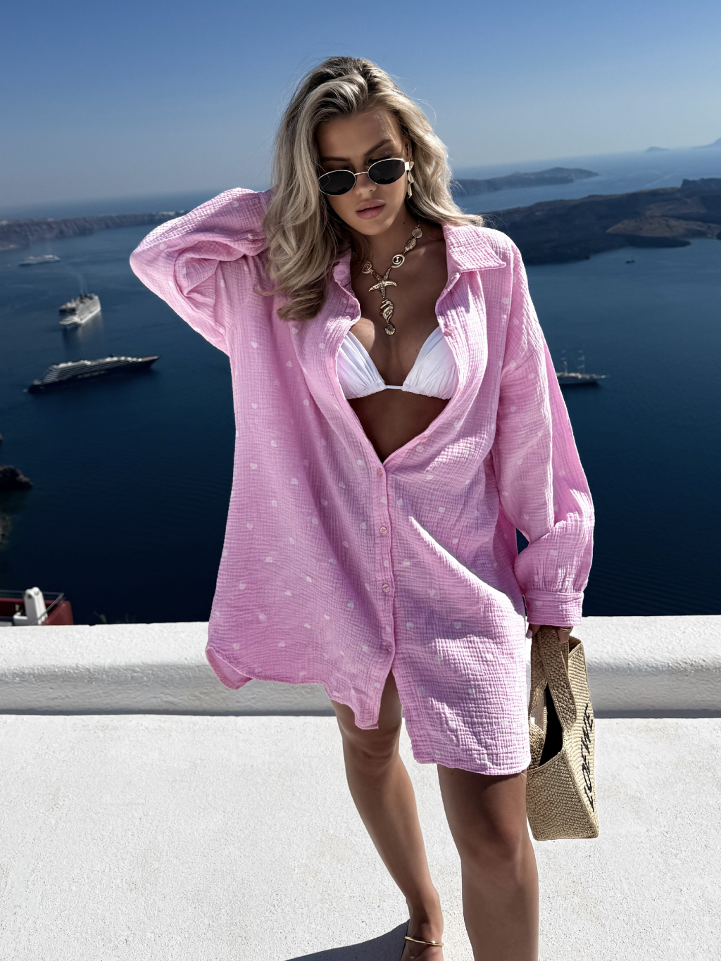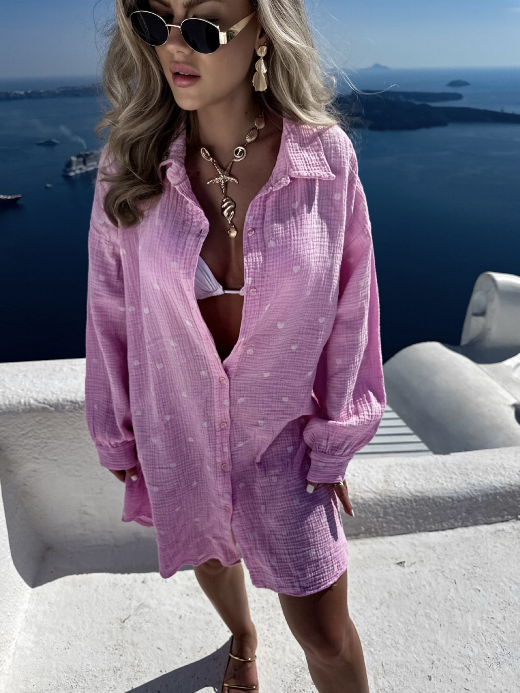 Růžová mušelínová dlouhá oversize košile VELINA