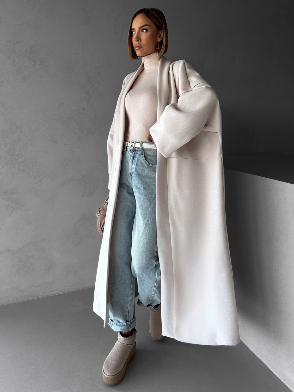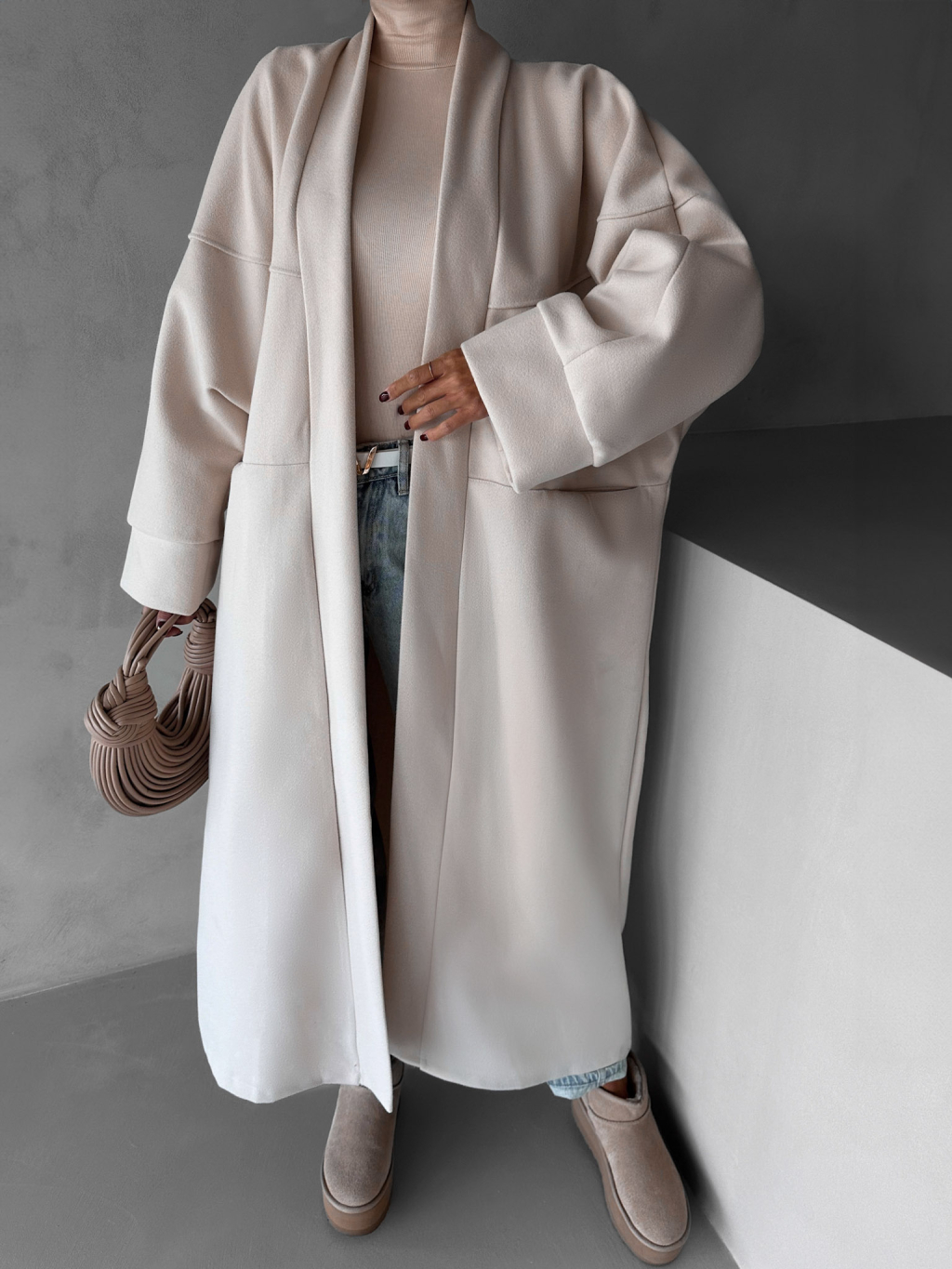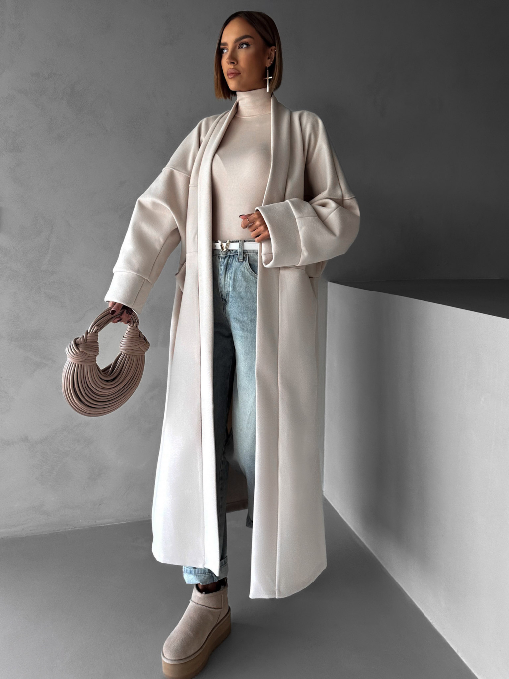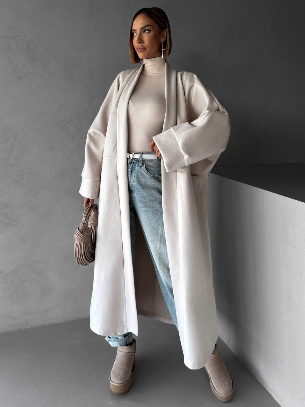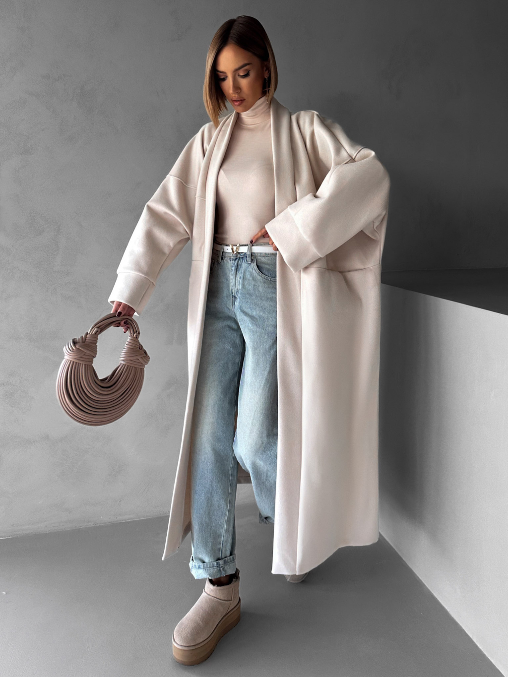 Krémový dlouhý oversize cardigan THADY bez zapínání