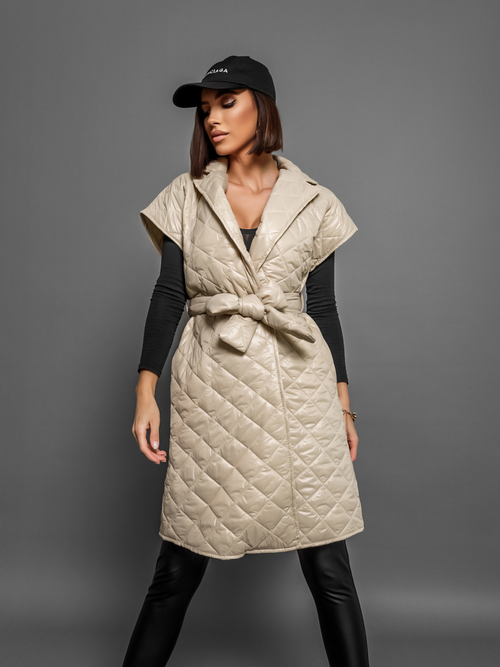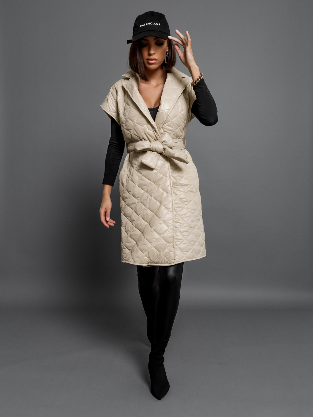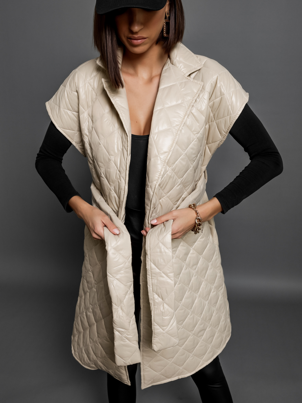 Béžová delší prošívaná vesta CROLLY na zavazování v pase