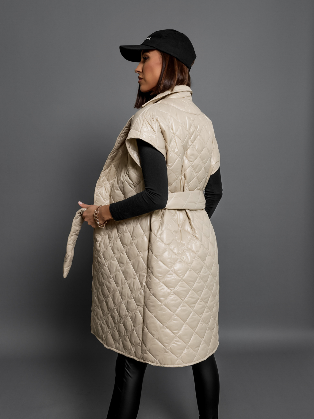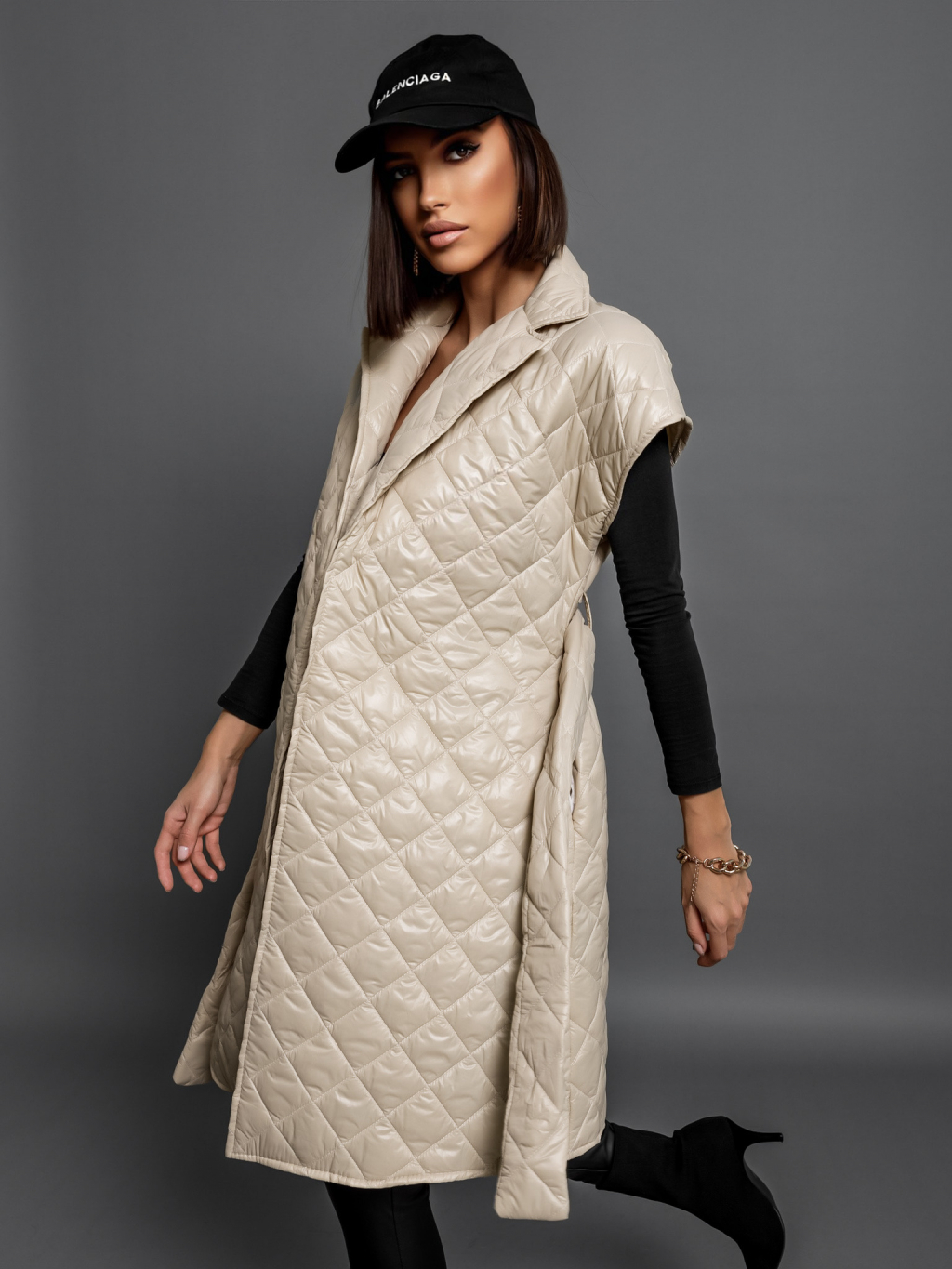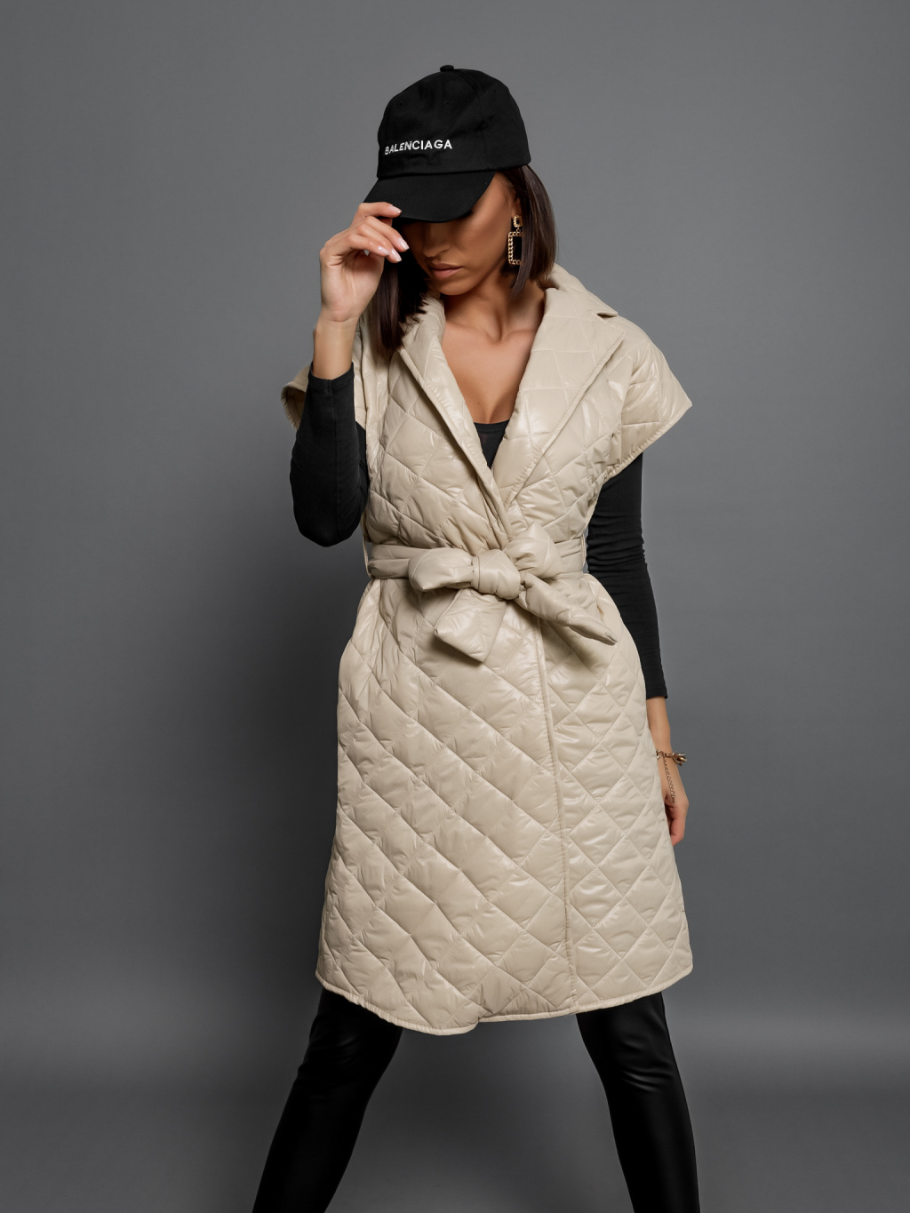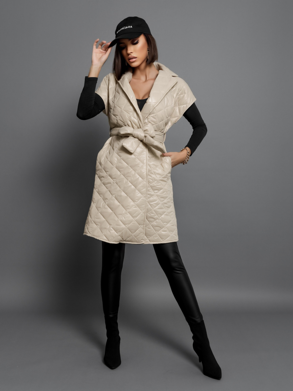 Béžová delší prošívaná vesta CROLLY na zavazování v pase