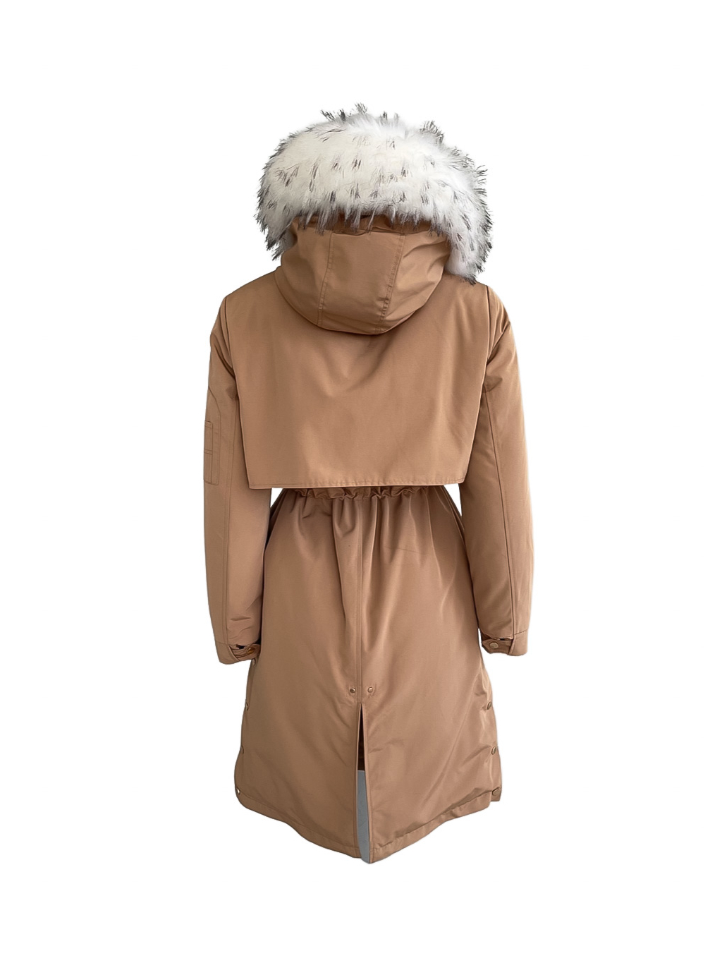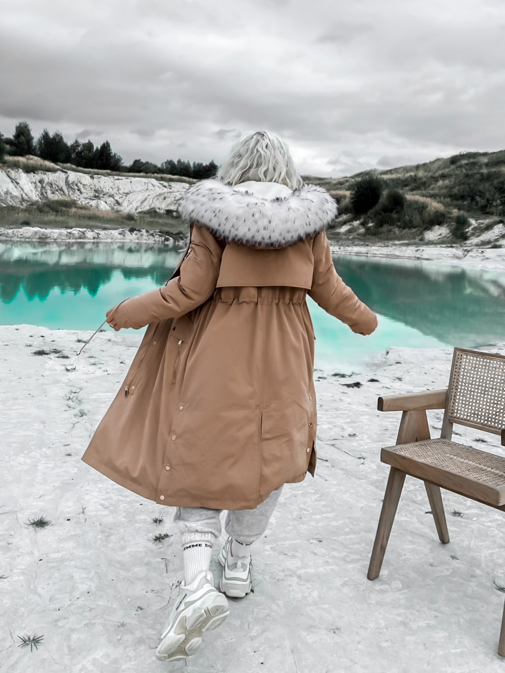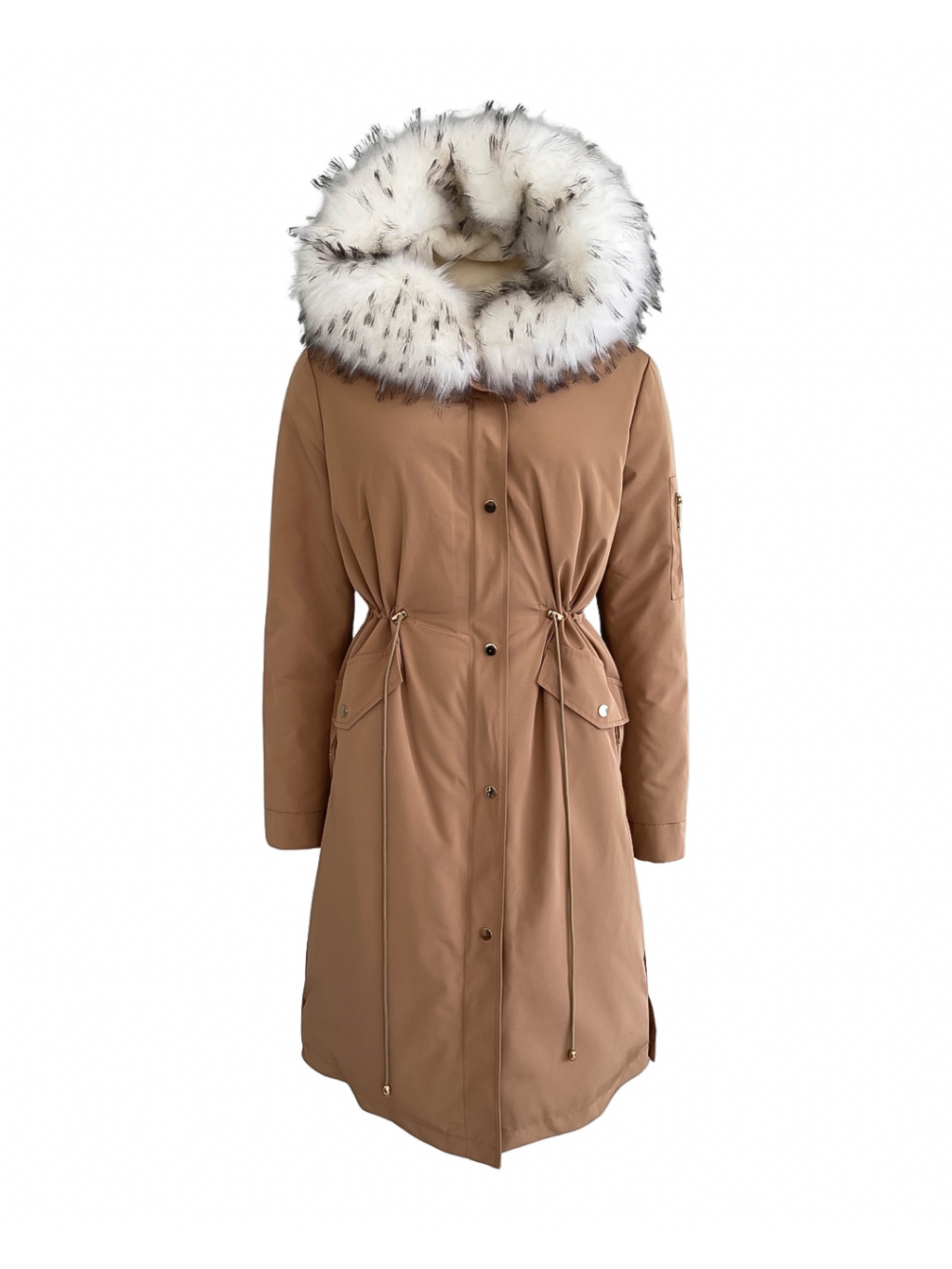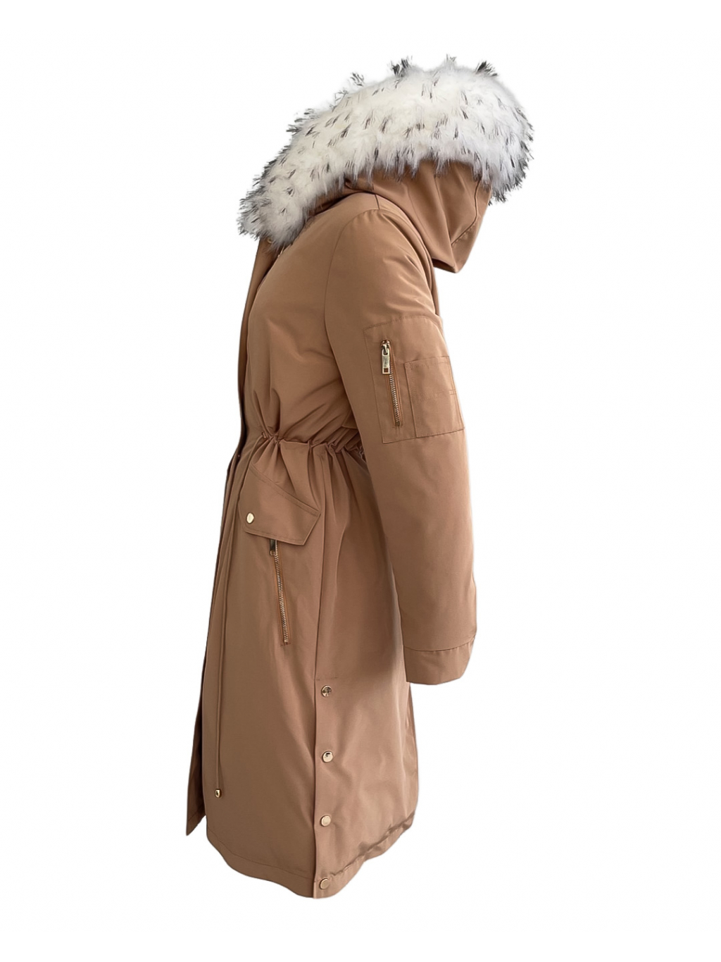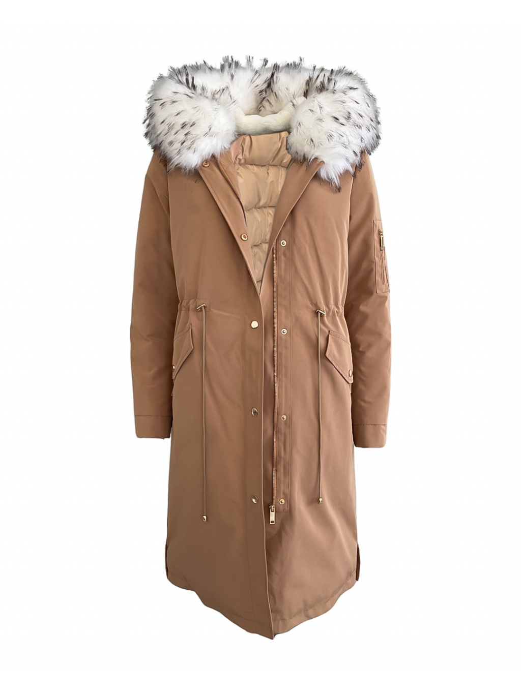 Tahle neskutečná béžová parka s propracovanými zlatými detaily tě bude opravdu bavit.