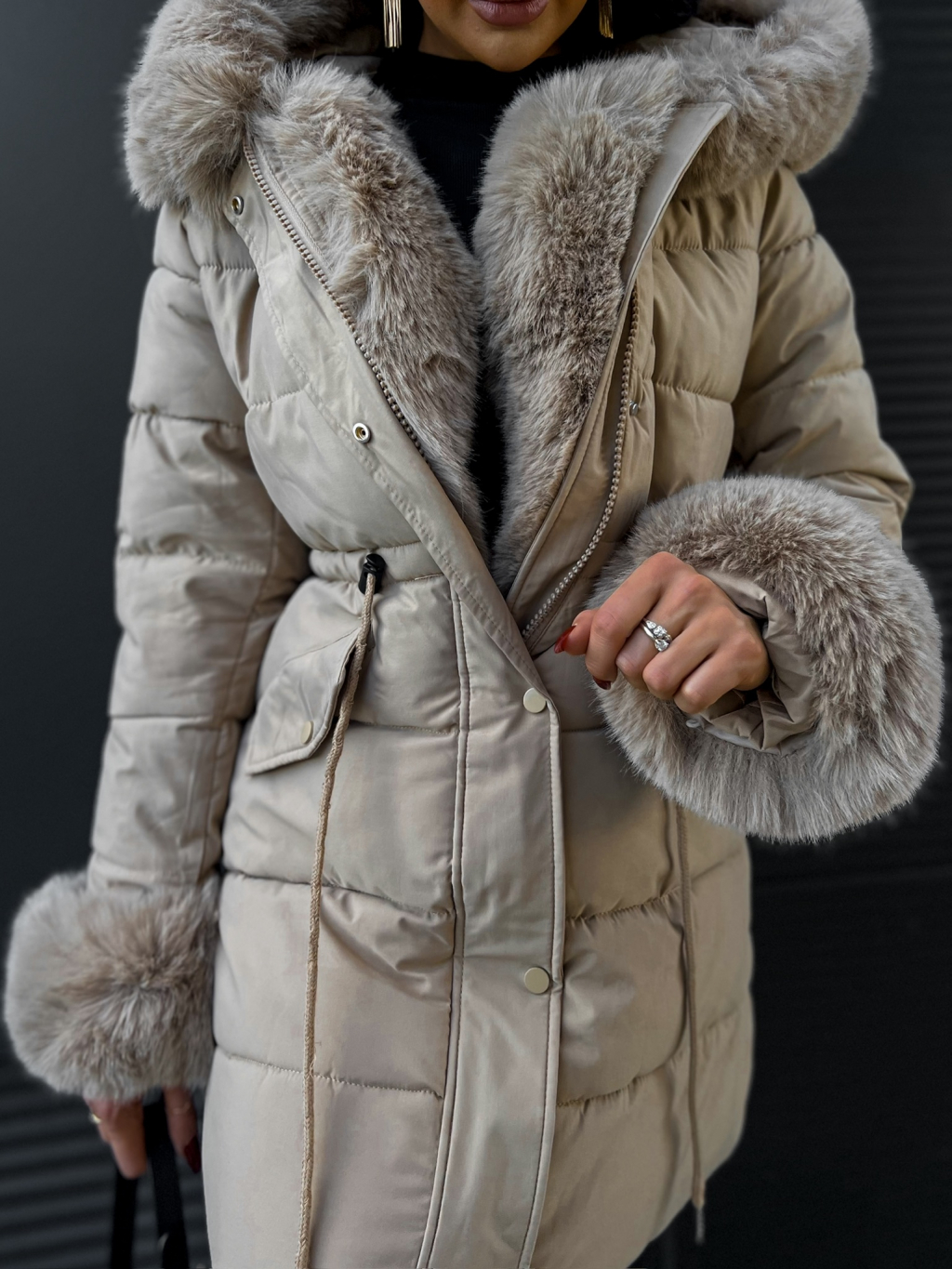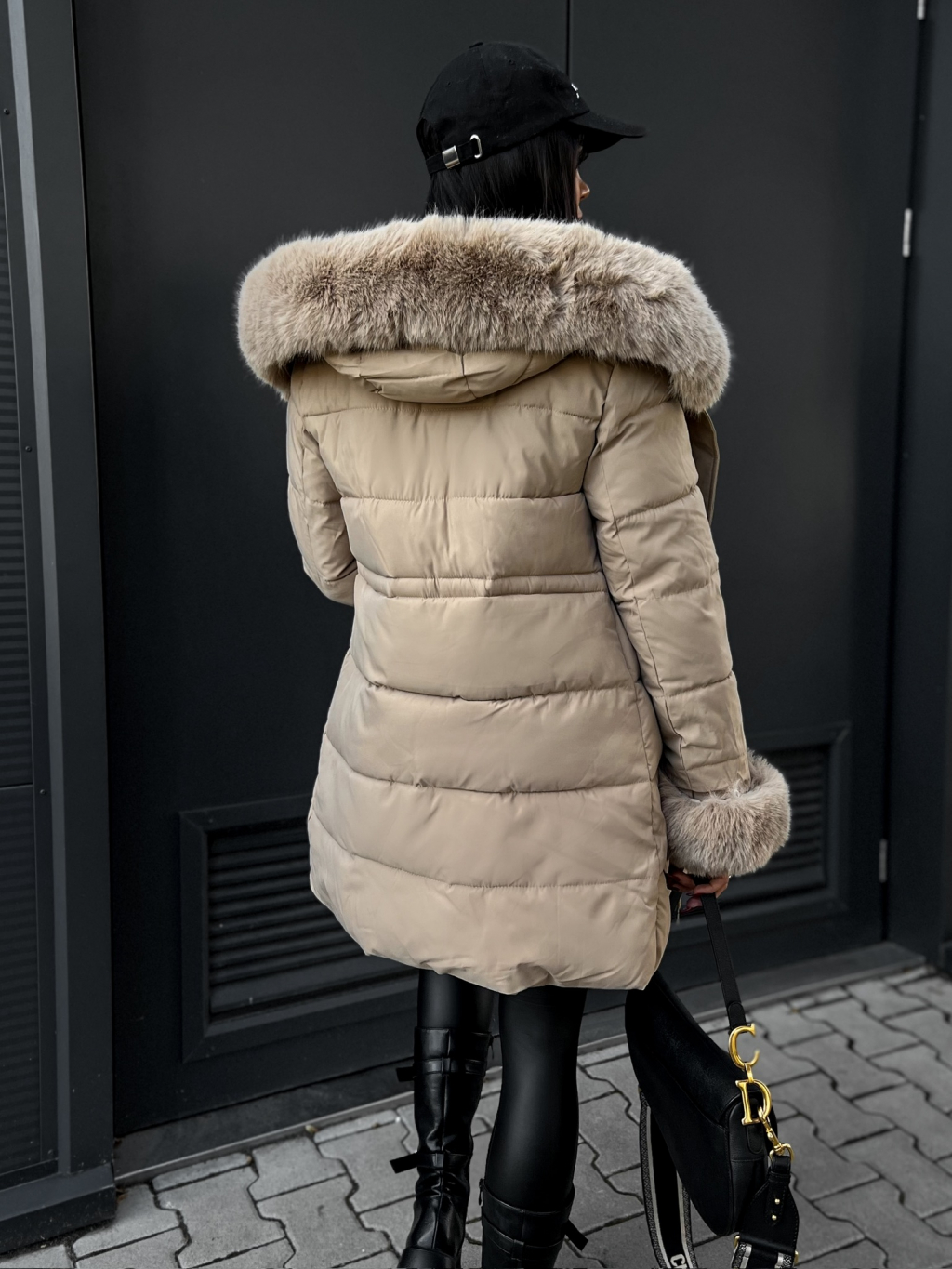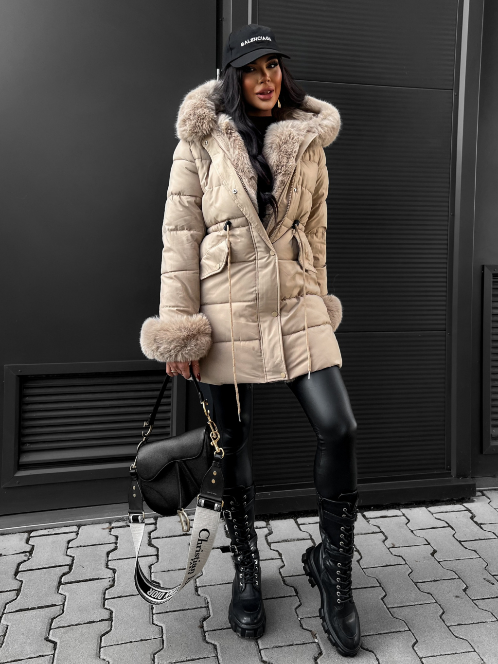 Béžová prošívaná bunda NEVELIN s kožíškem
