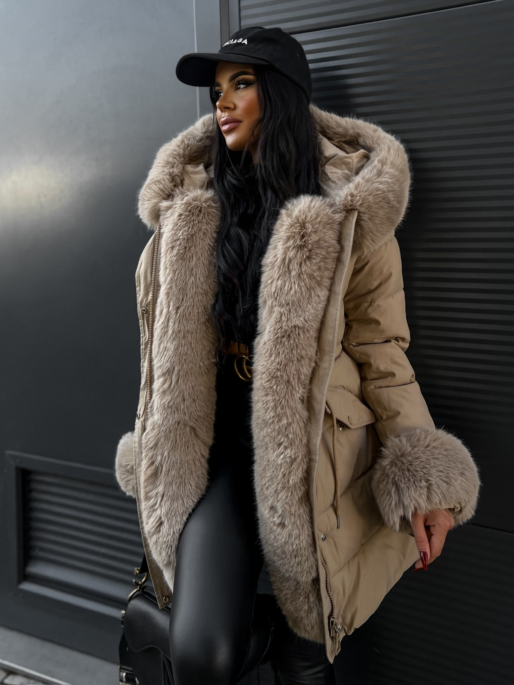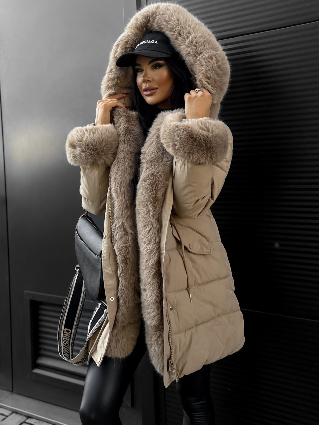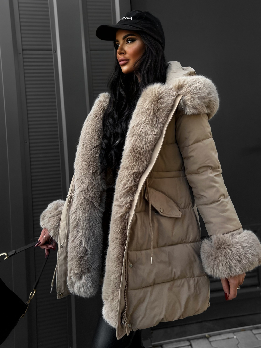 Béžová prošívaná bunda NEVELIN s kožíškem