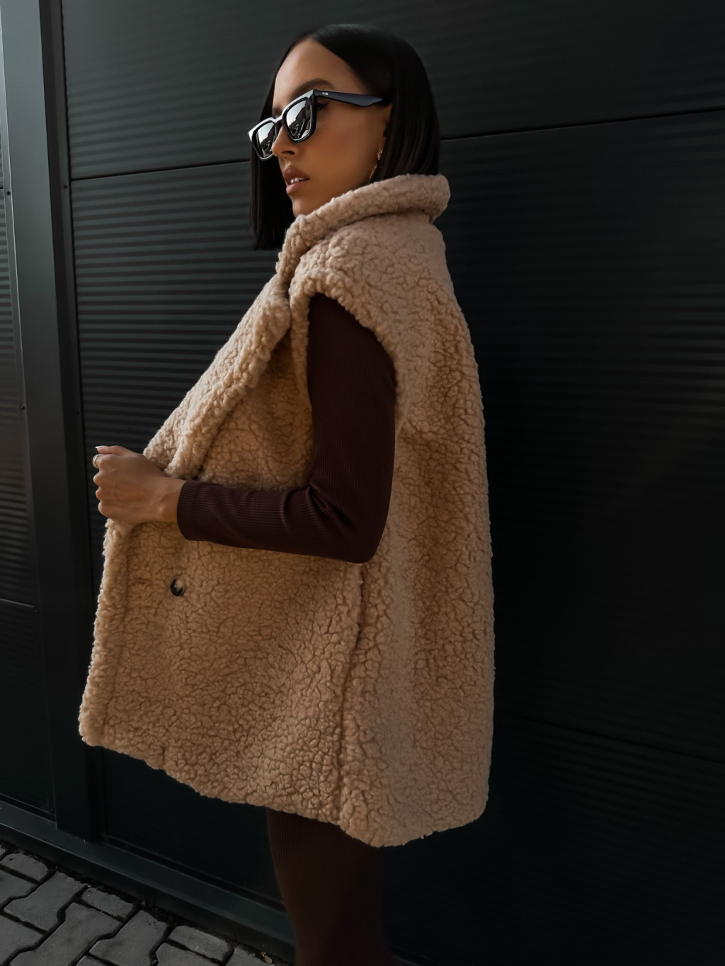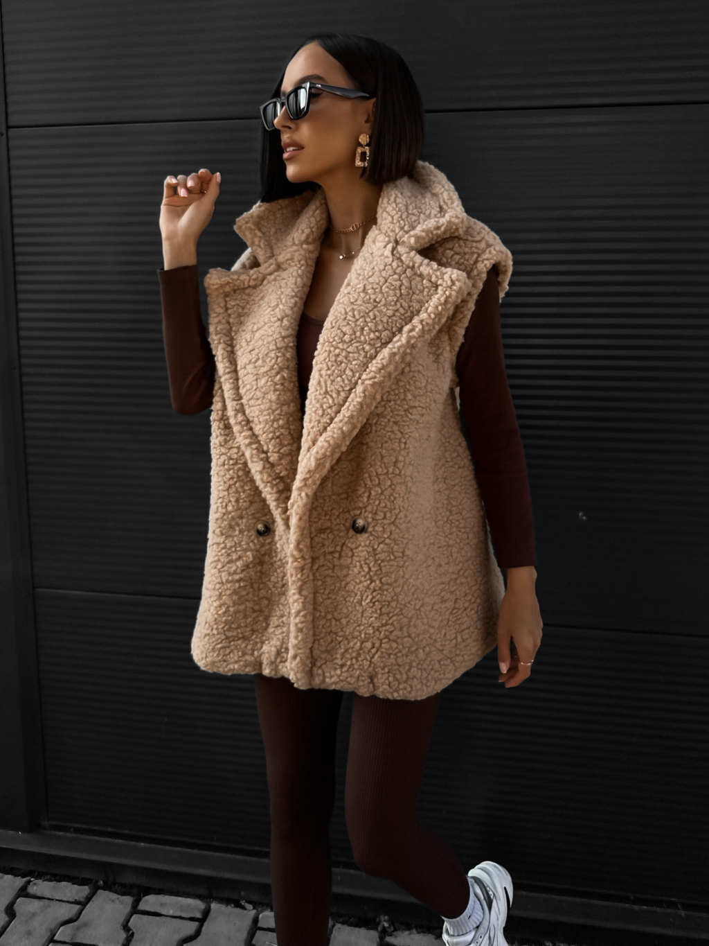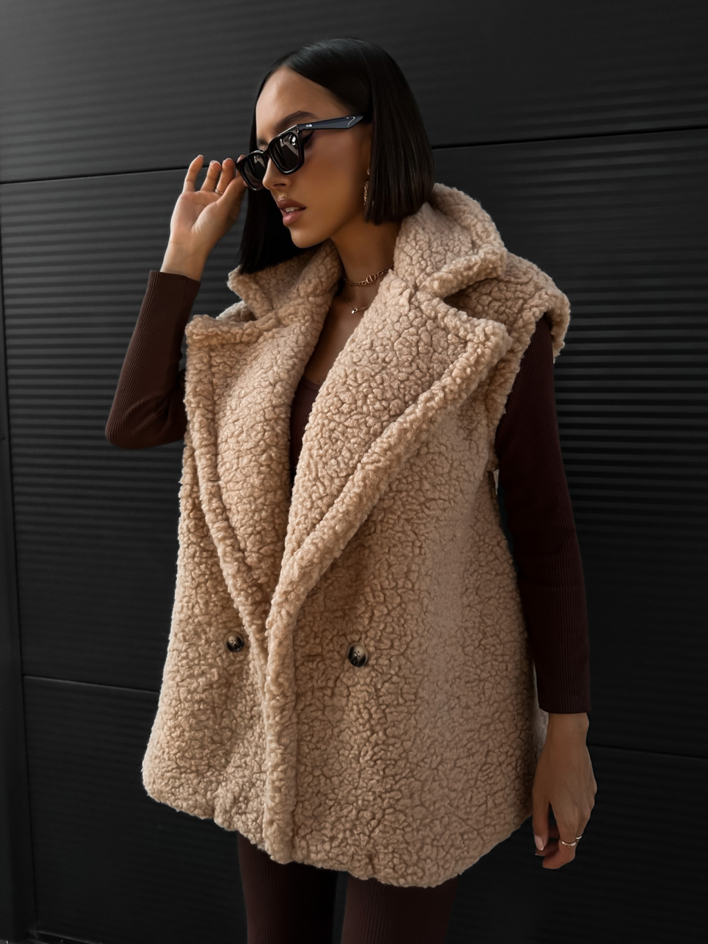 Béžová teddy vesta CORIE s knoflíky