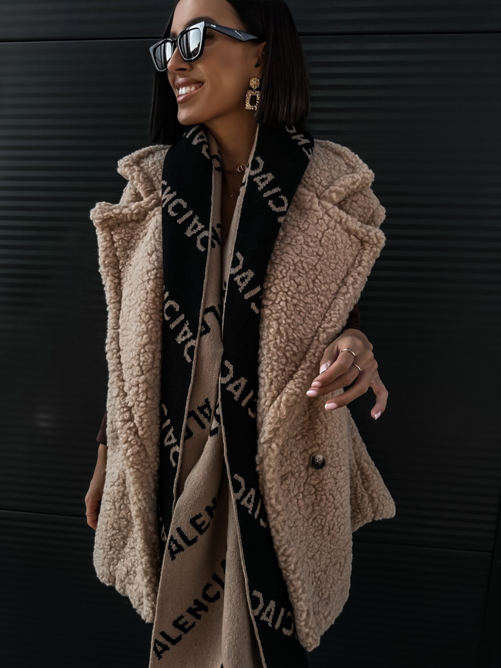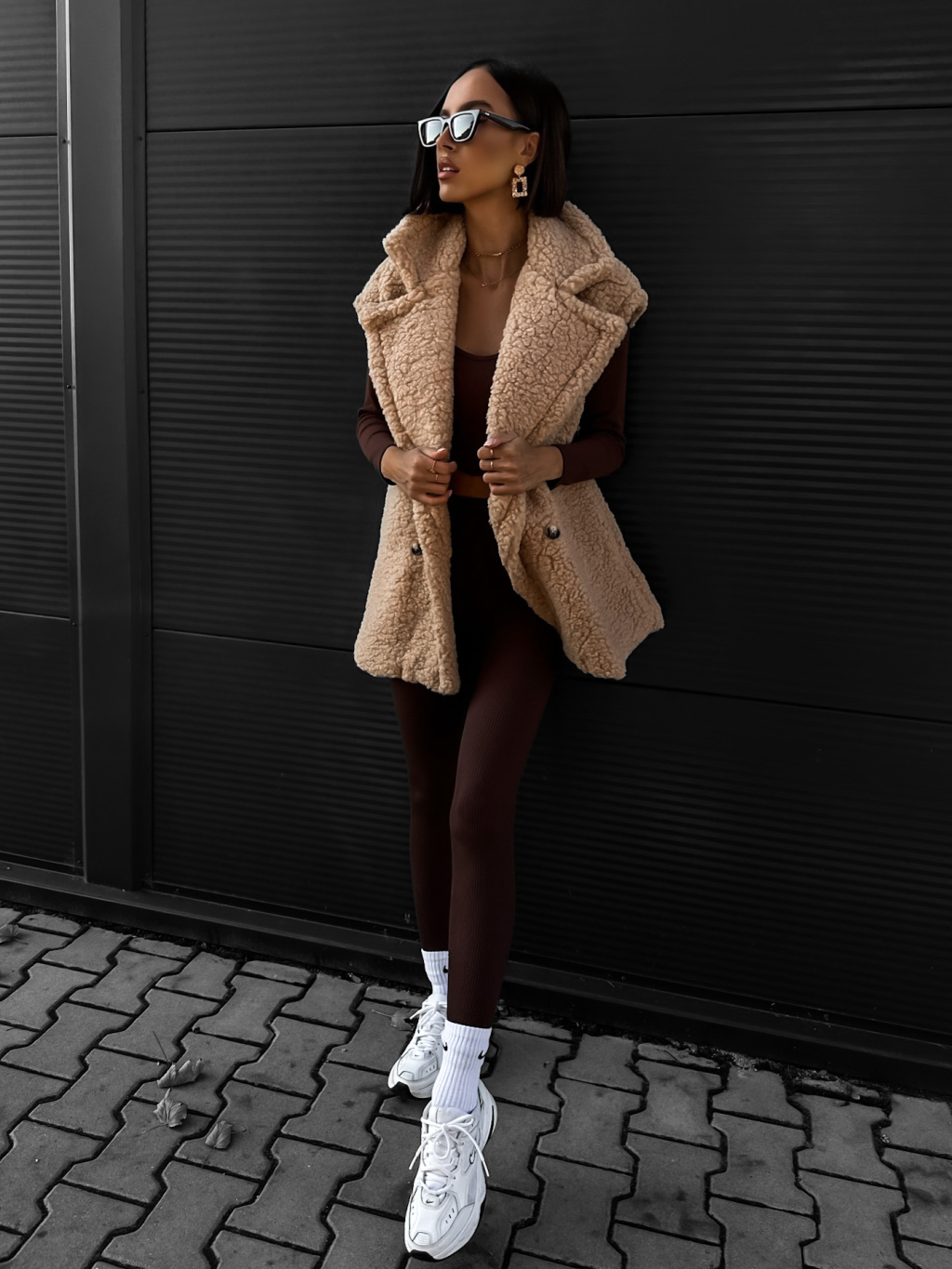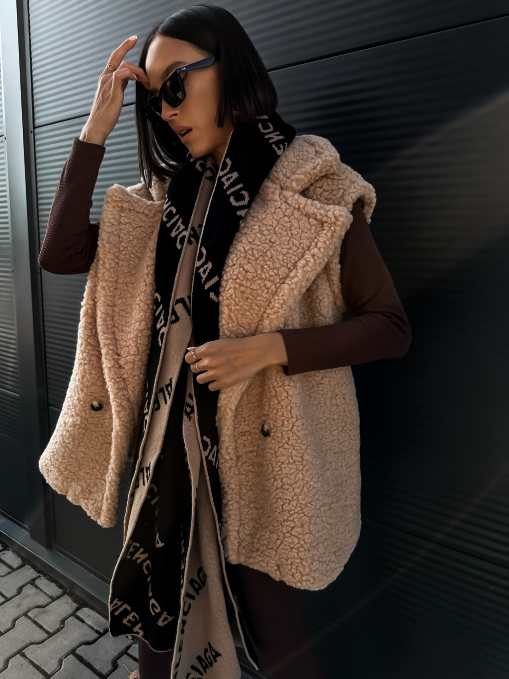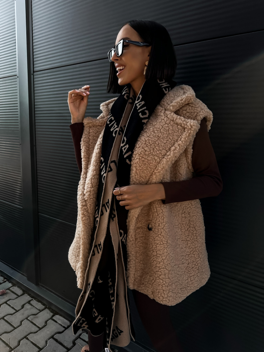 Béžová teddy vesta CORIE s knoflíky