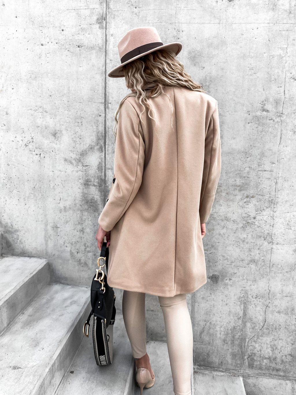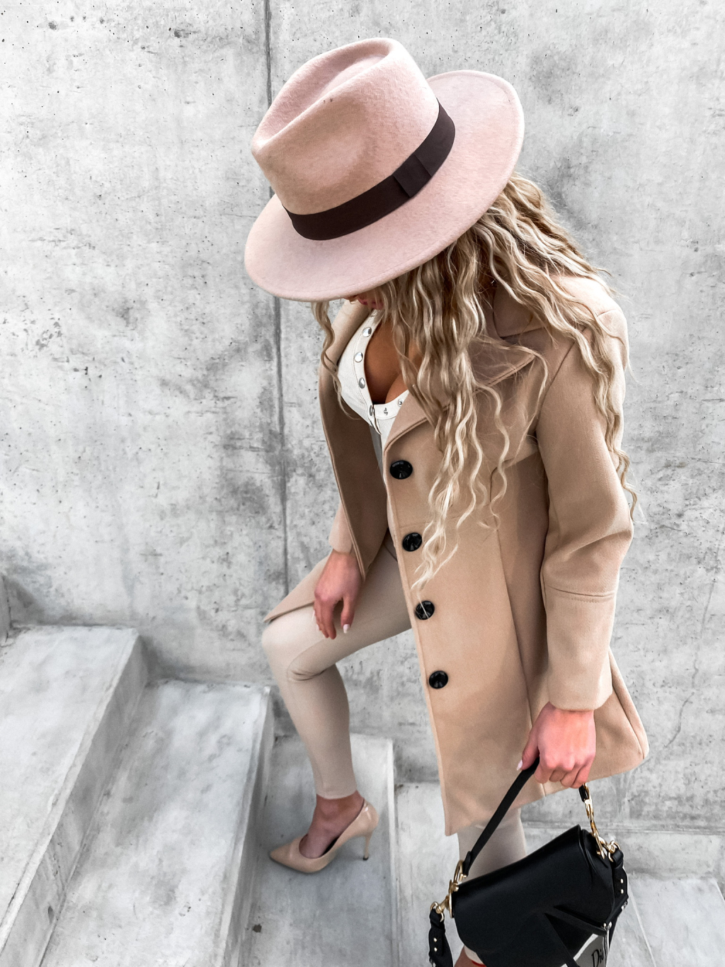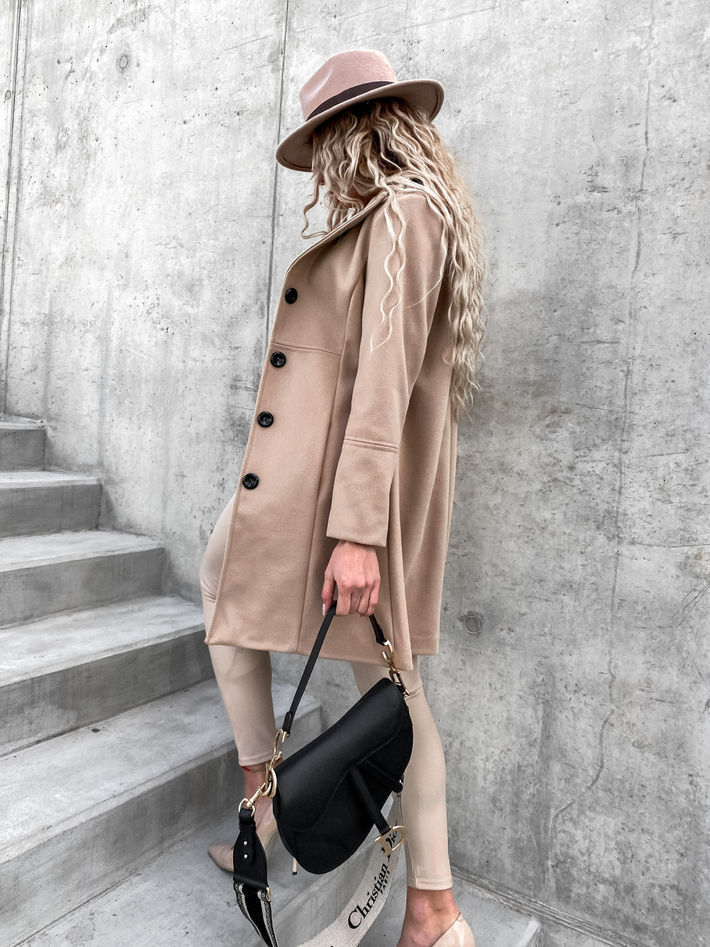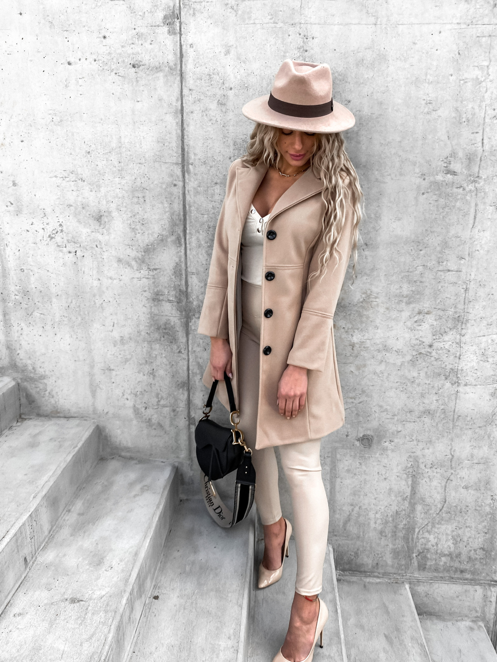 Béžový elegantní kabát NEUTRAL s černými knoflíky