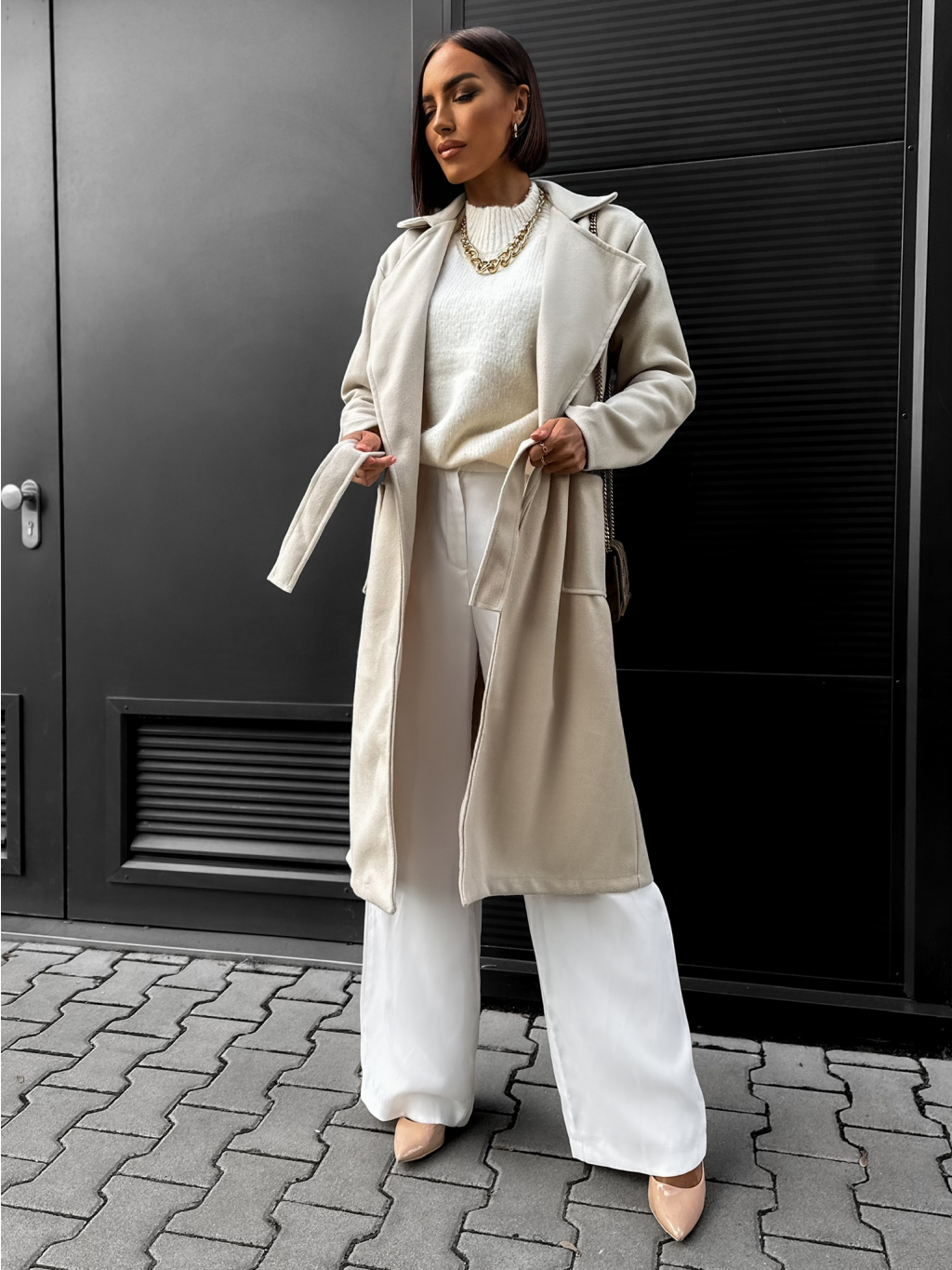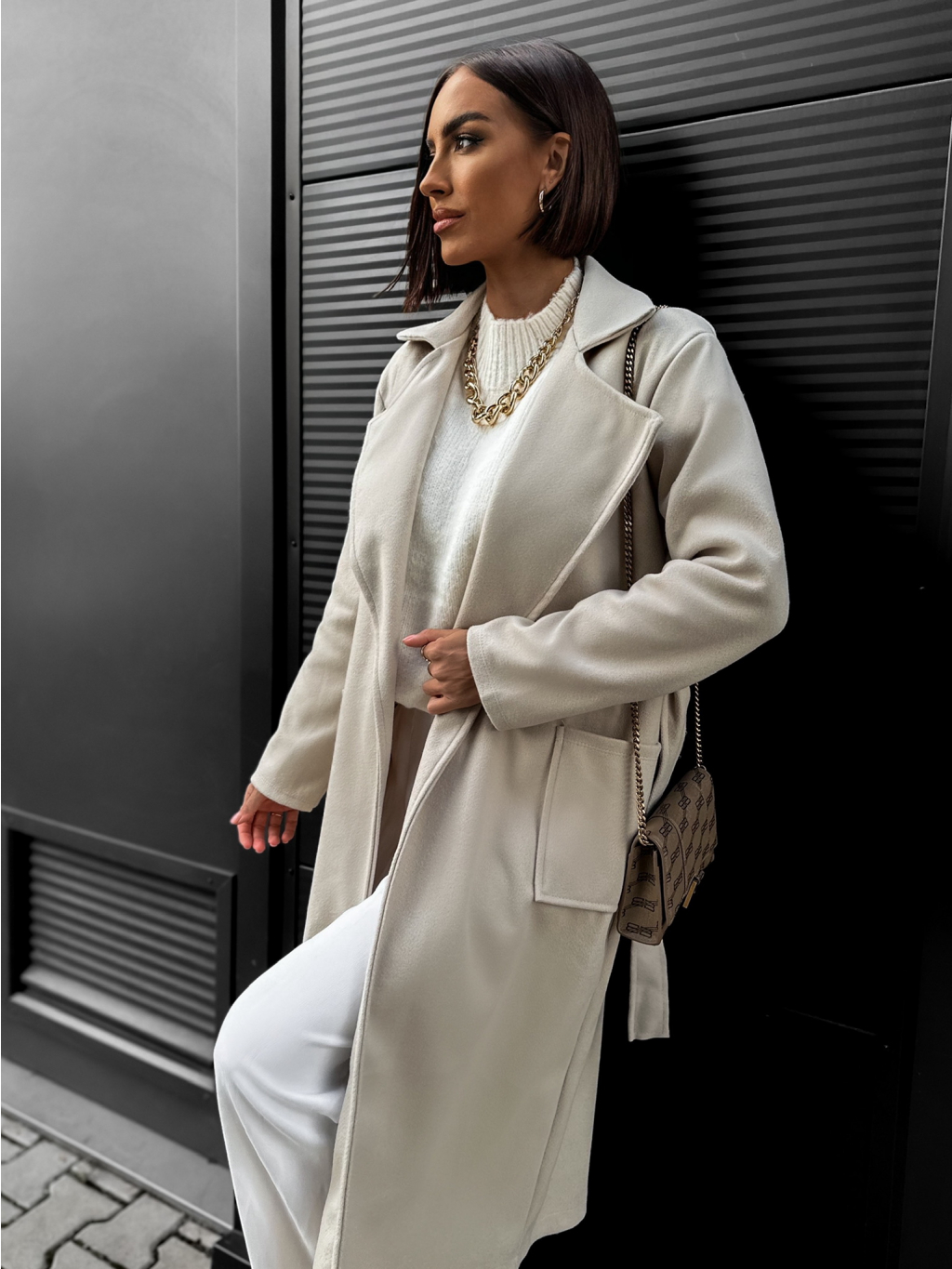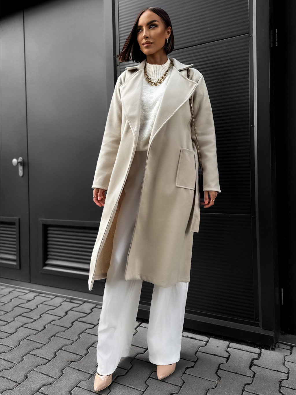 Béžový jednoduchý kabát CITON