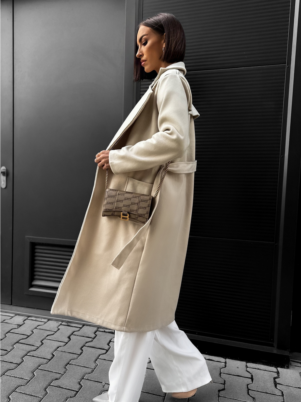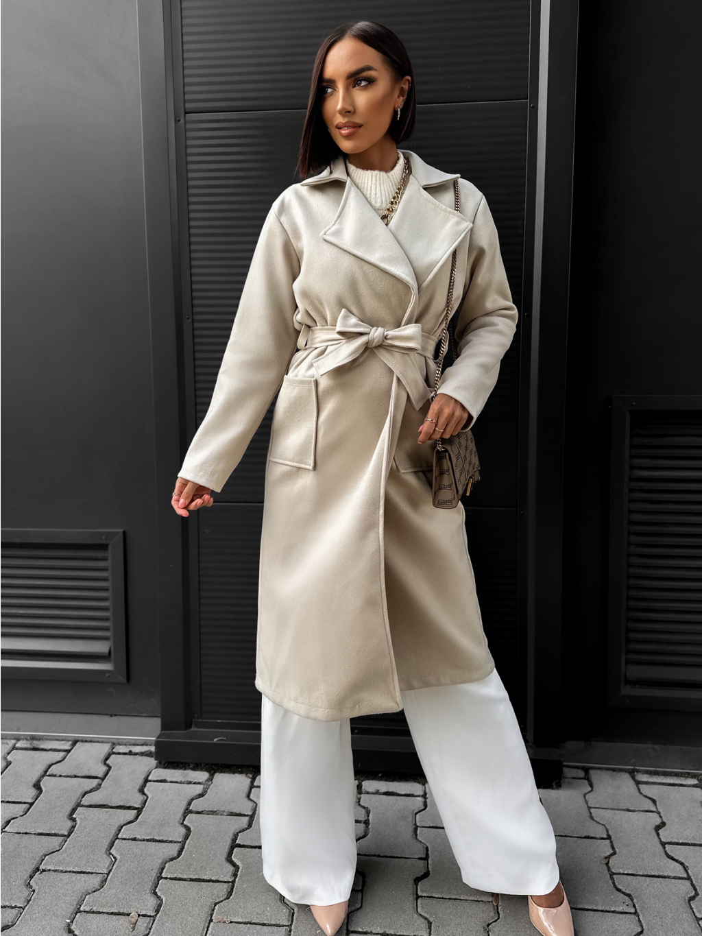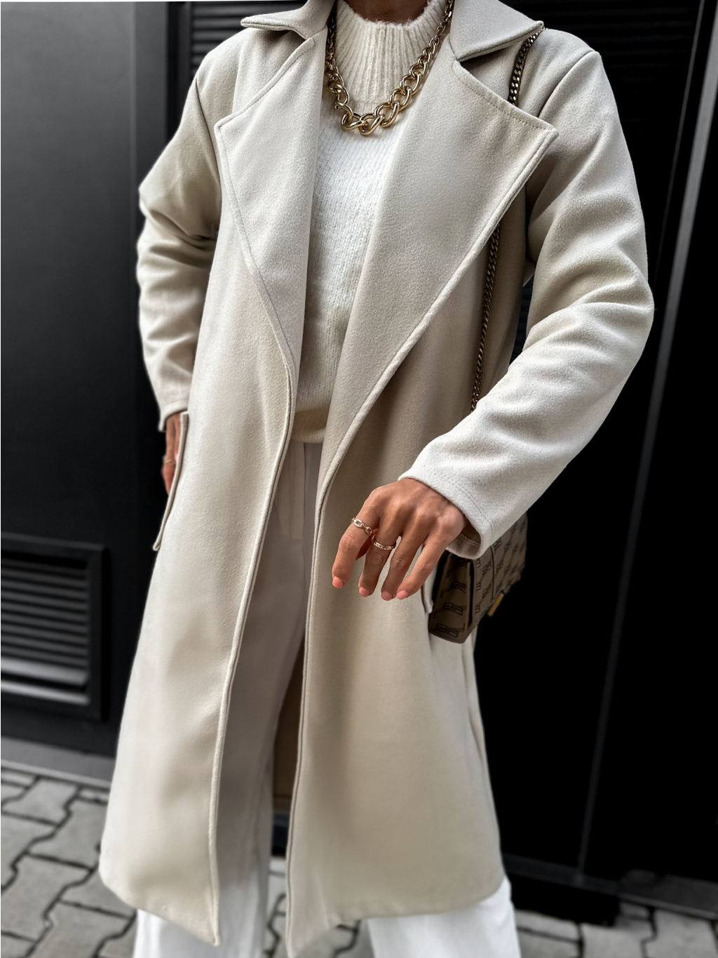Béžový jednoduchý kabát CITON