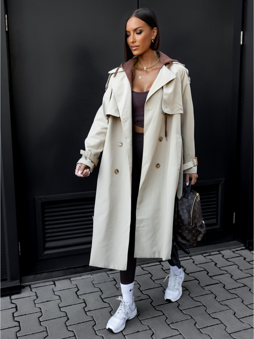 Béžový kabát PAPAVER s kapucí