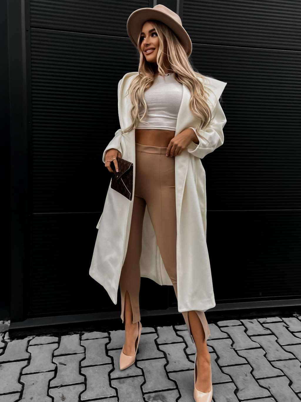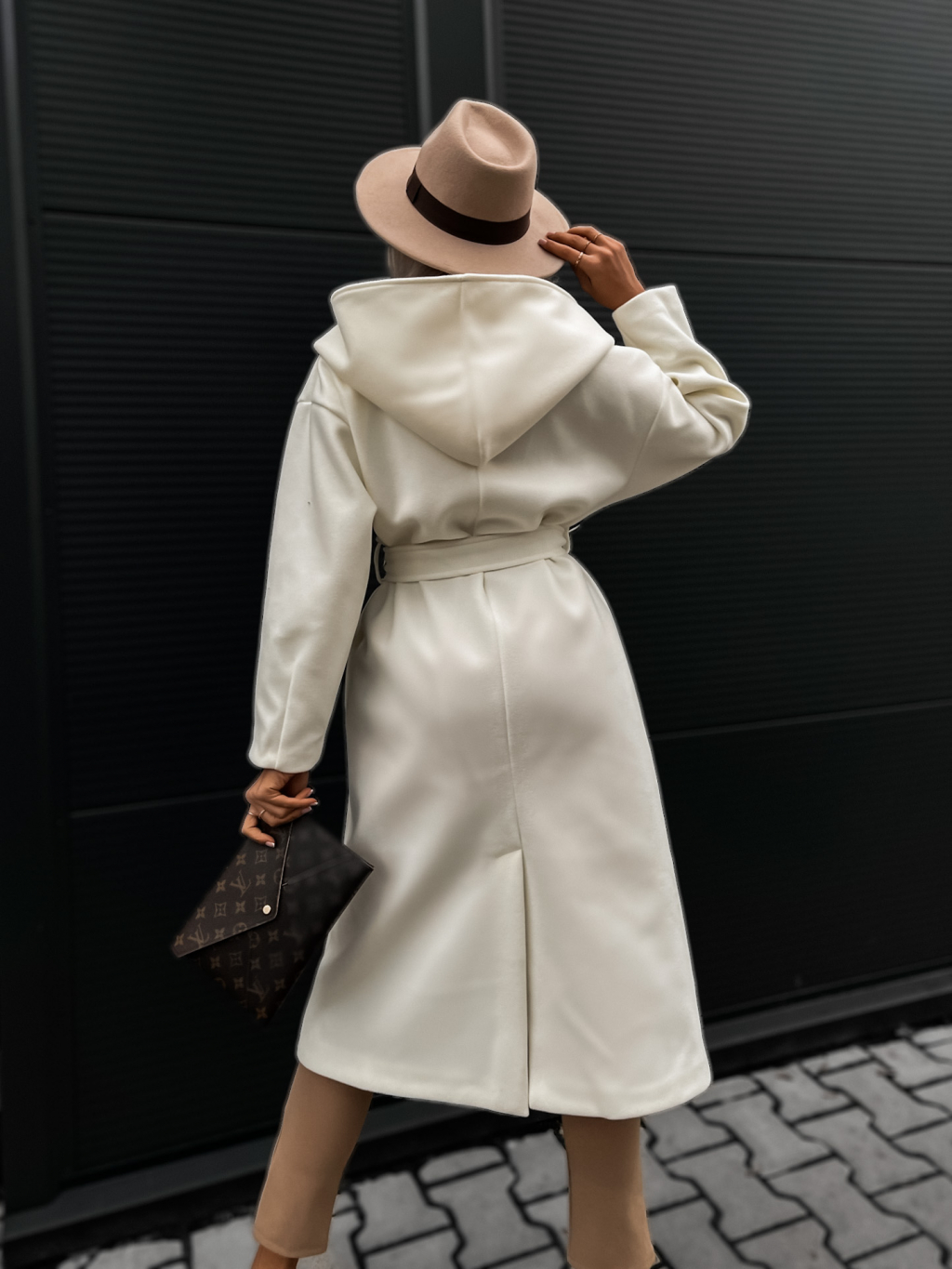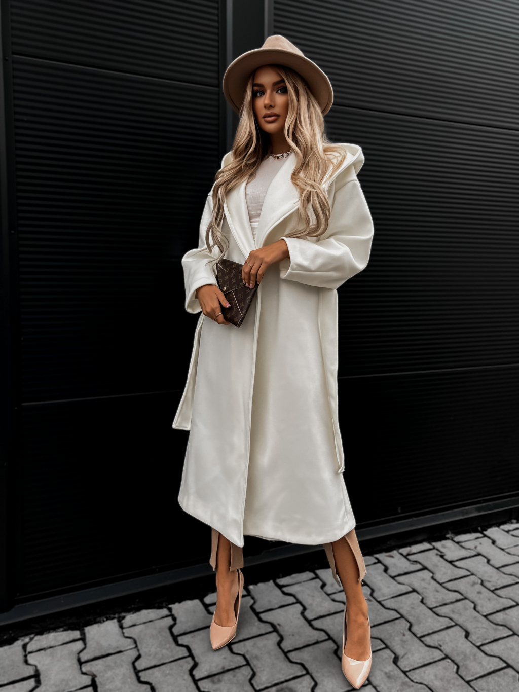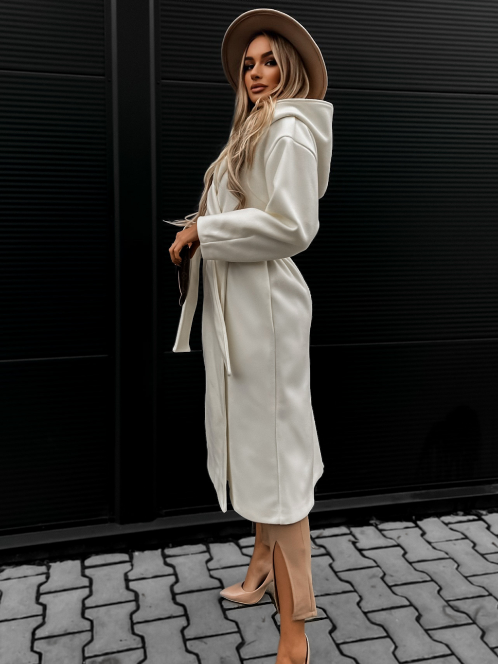 Bílý elegantní kabát WALLES s kapucí