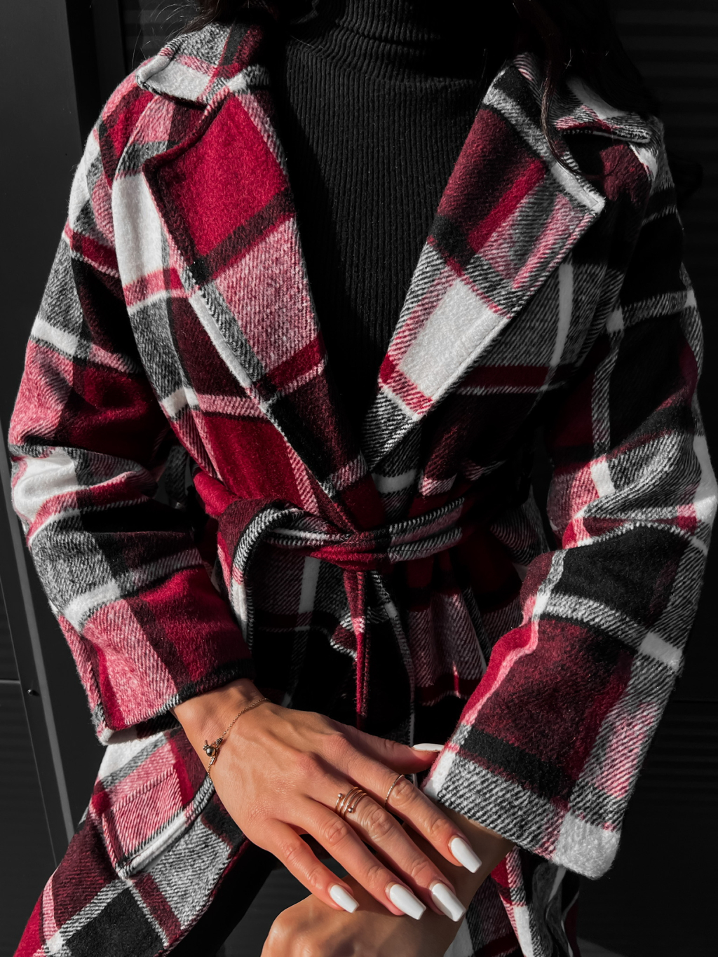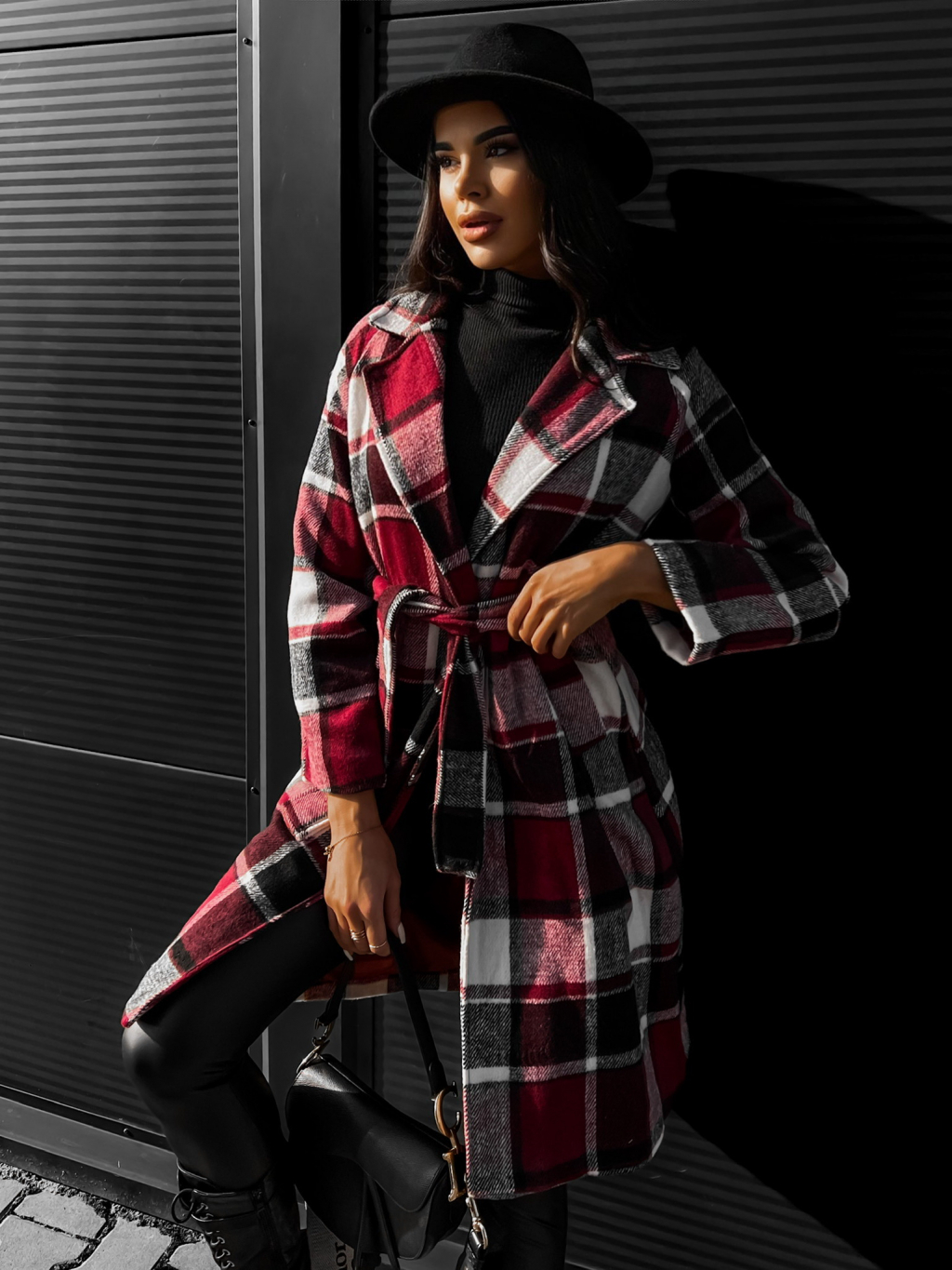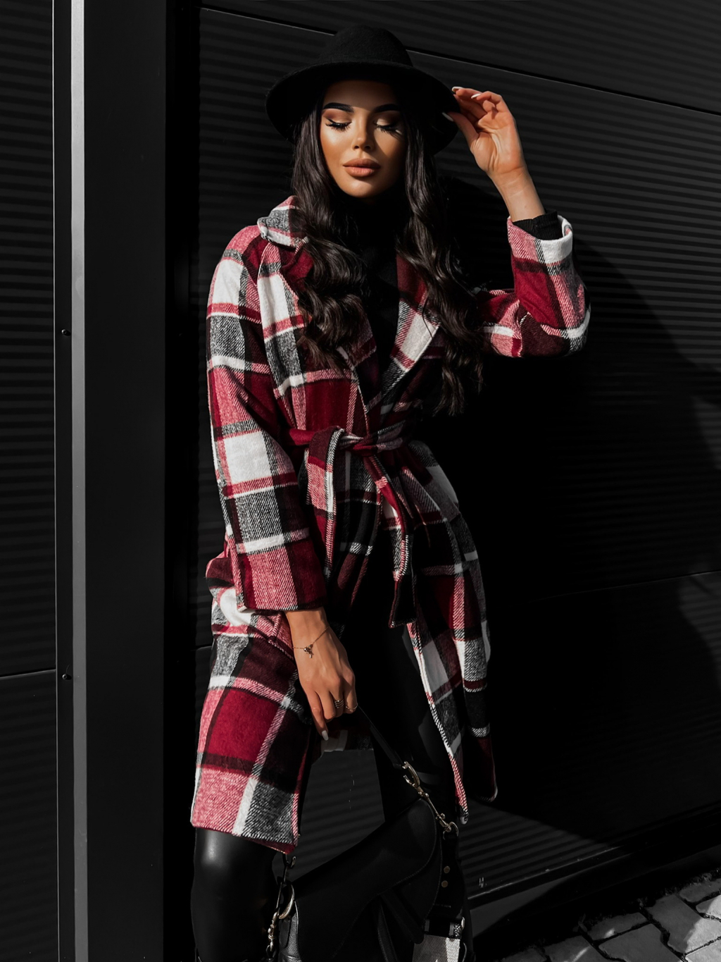 Bordó károvaný kabát STRATON na zavazování