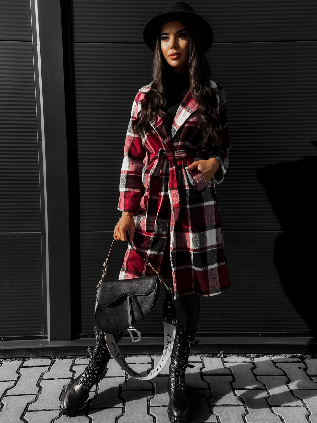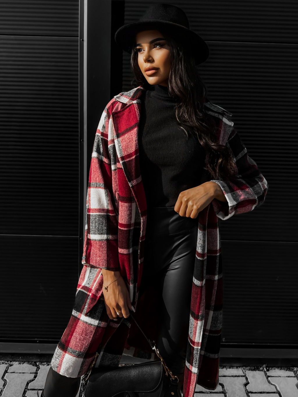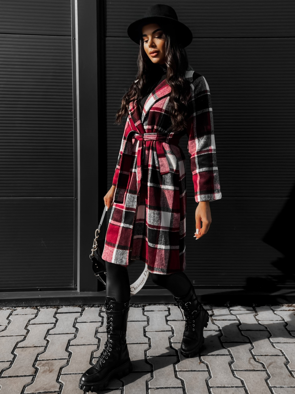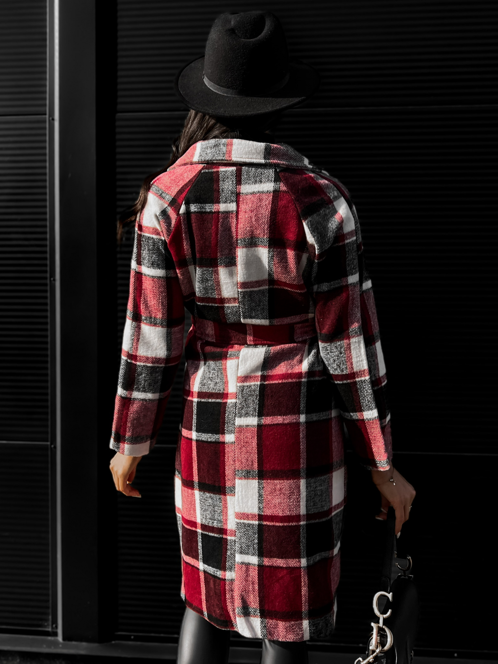 Bordó károvaný kabát STRATON na zavazování