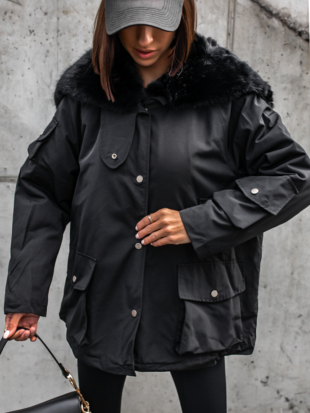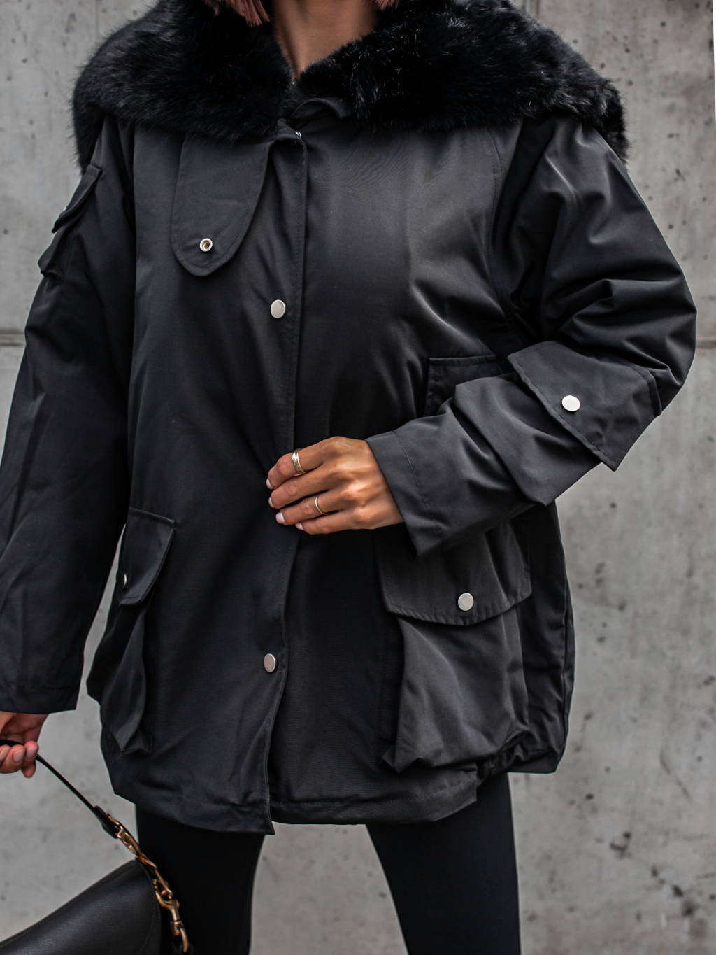 Bohužel mě bunda velmi zklamala… není vůbec teplá, kožíšek není v rukávech. Rukávy jsou krátké, na fotkách působí, že bunda má kapucu ale bohužel, zapínání na cvočky, které jsou mega nepraktické.