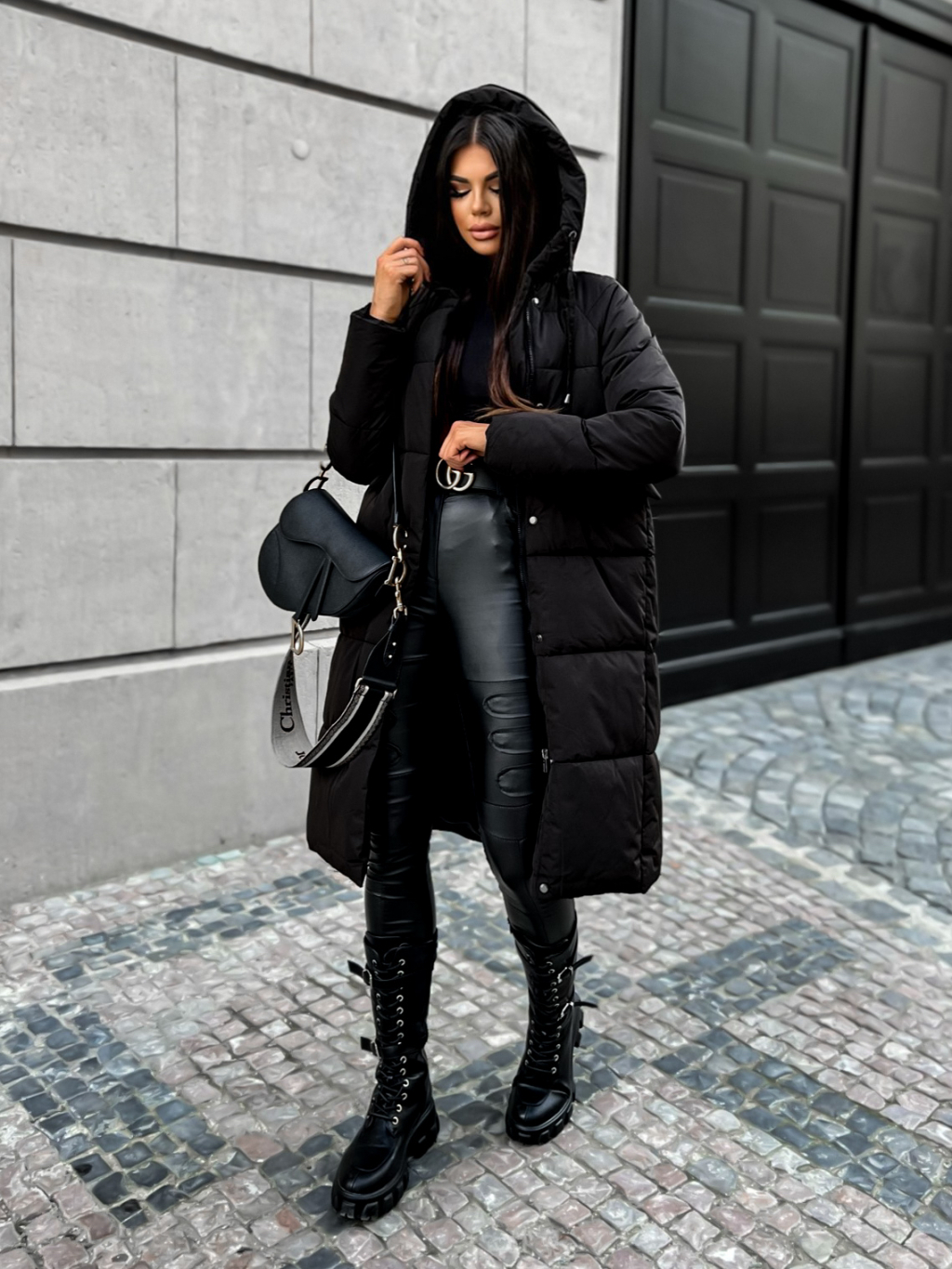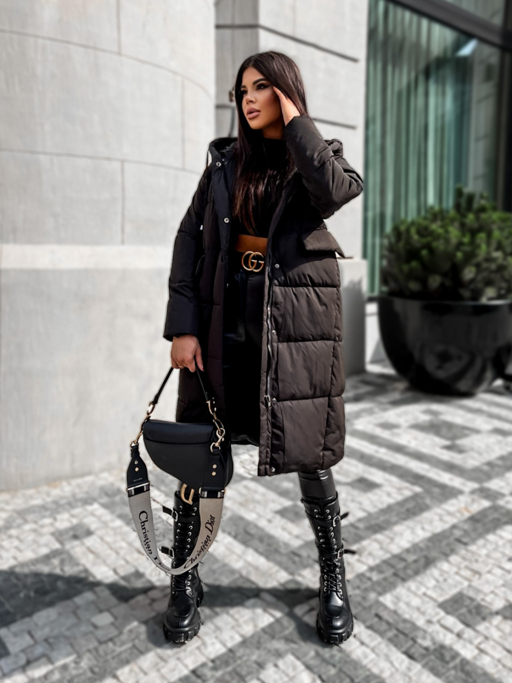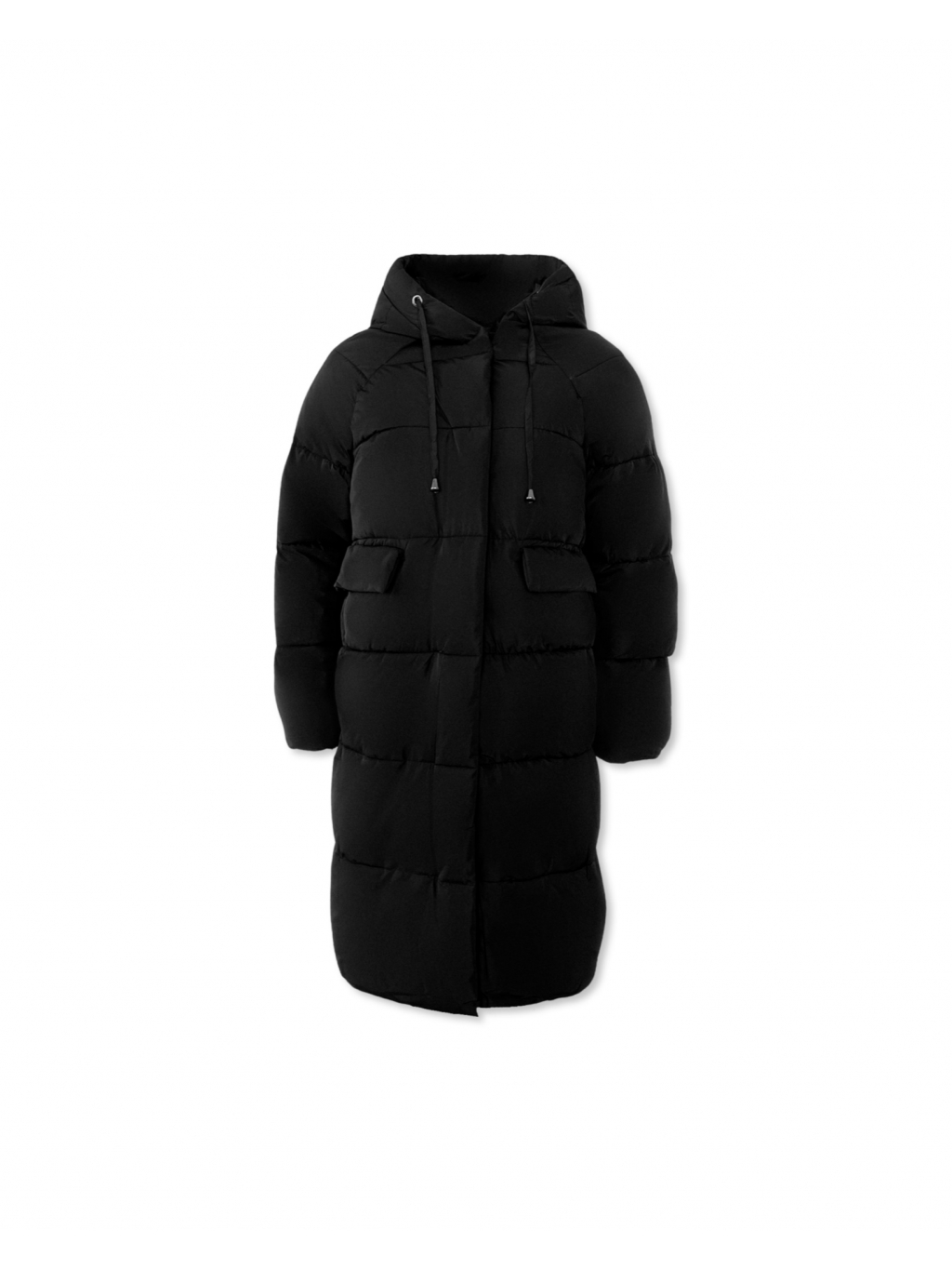 Černá dlouhá bunda SAPIN s kapucí a kapsami