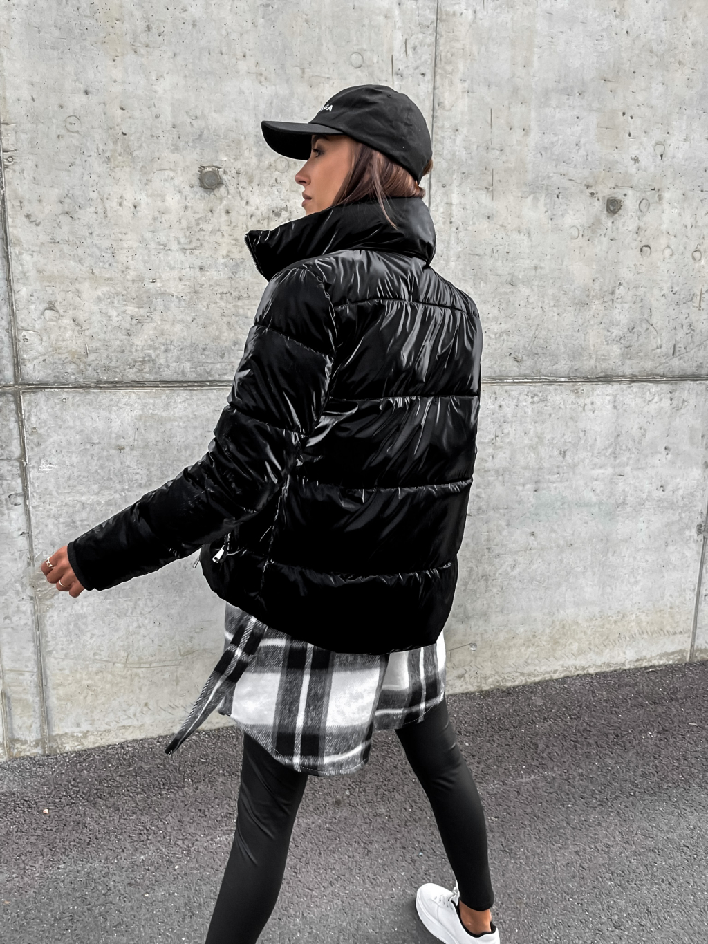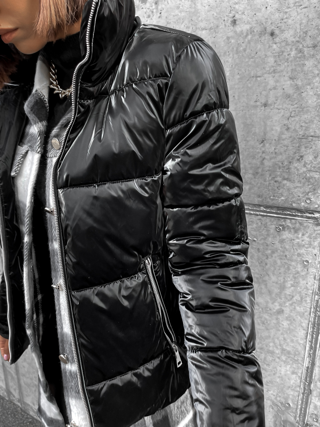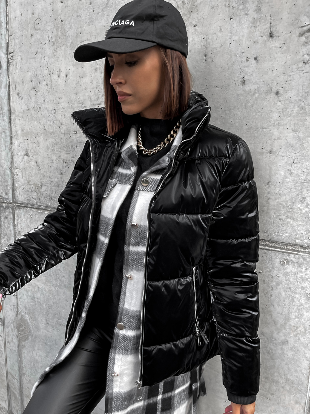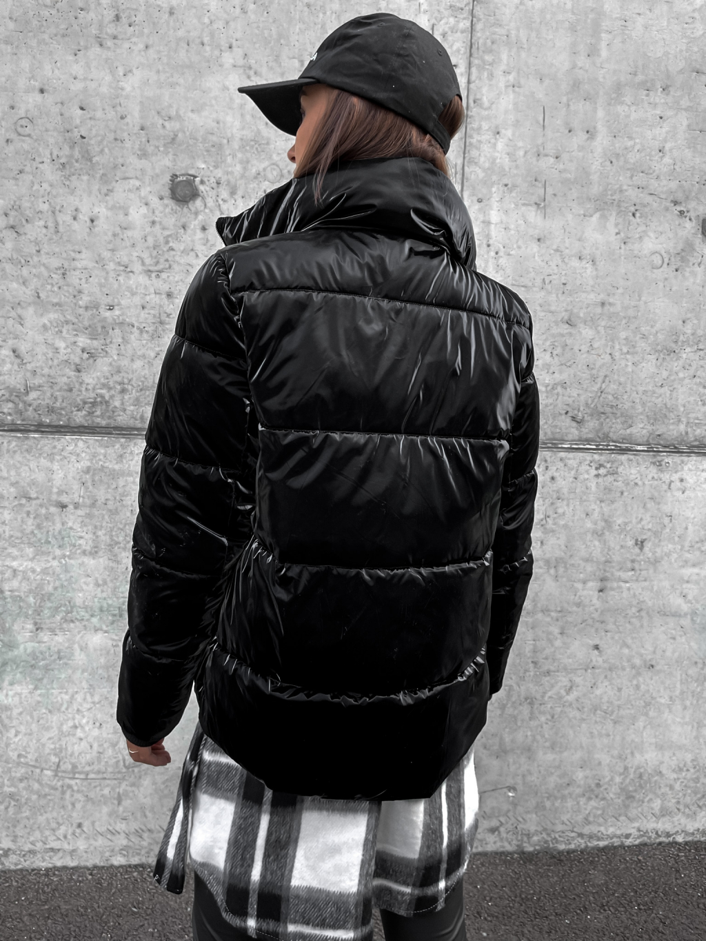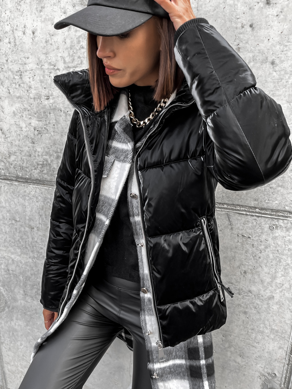 Černá lesklá prošívaná bunda HISS