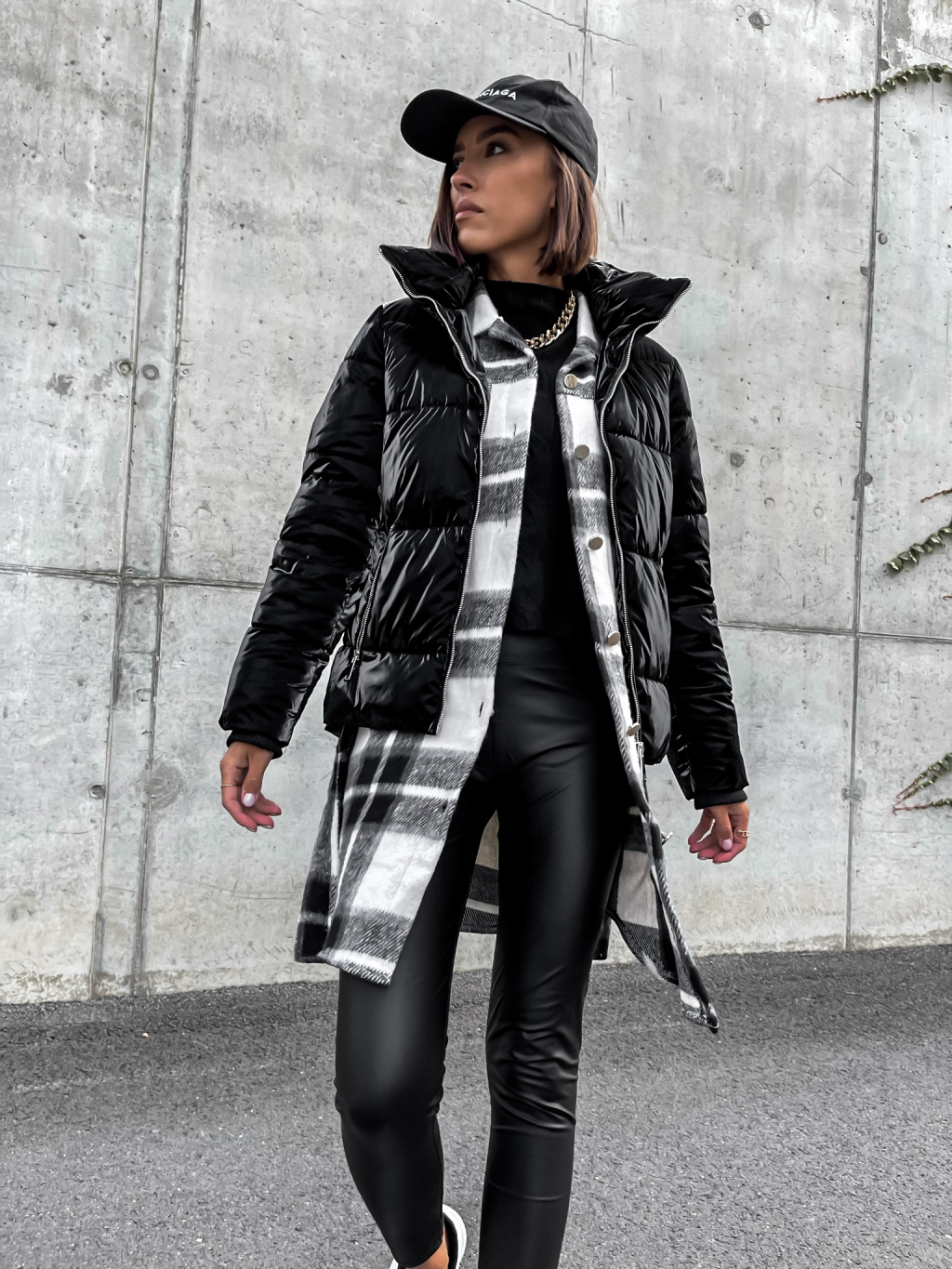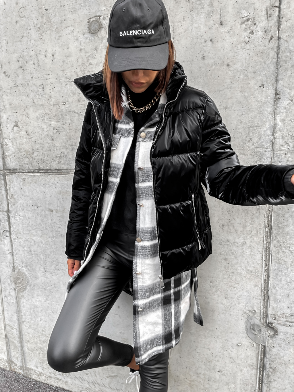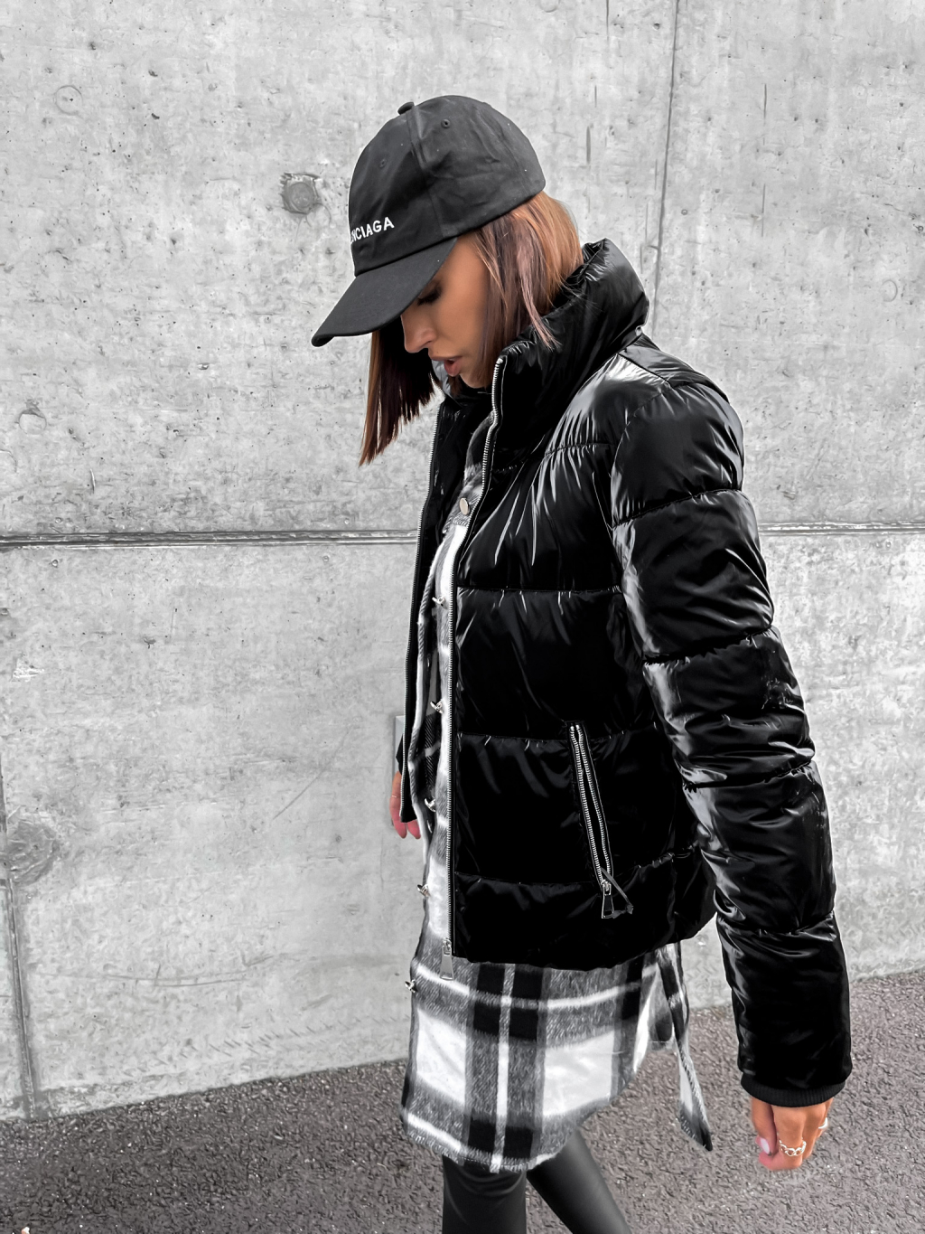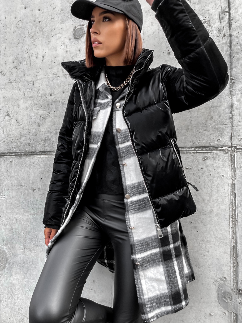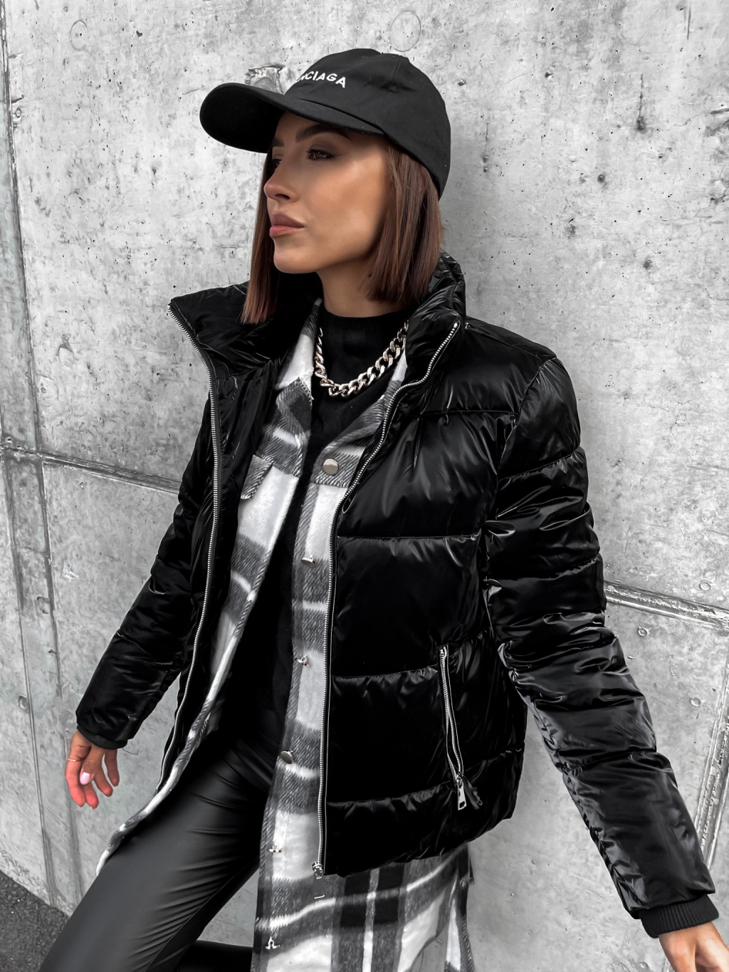 Černá lesklá prošívaná bunda HISS