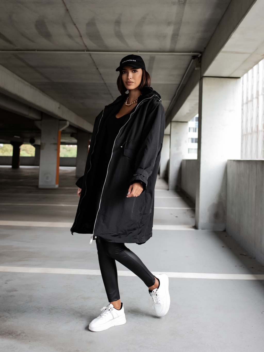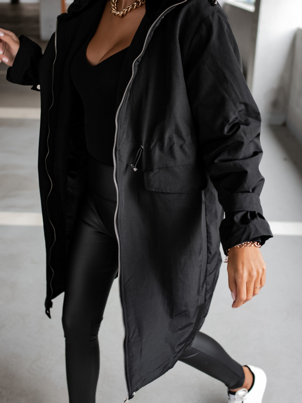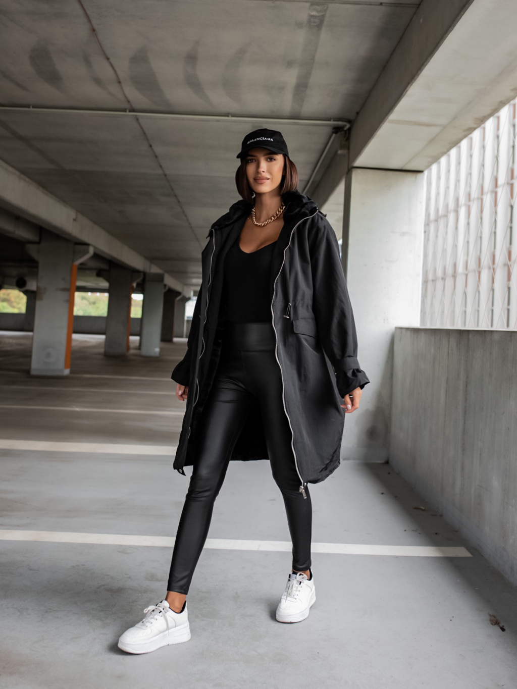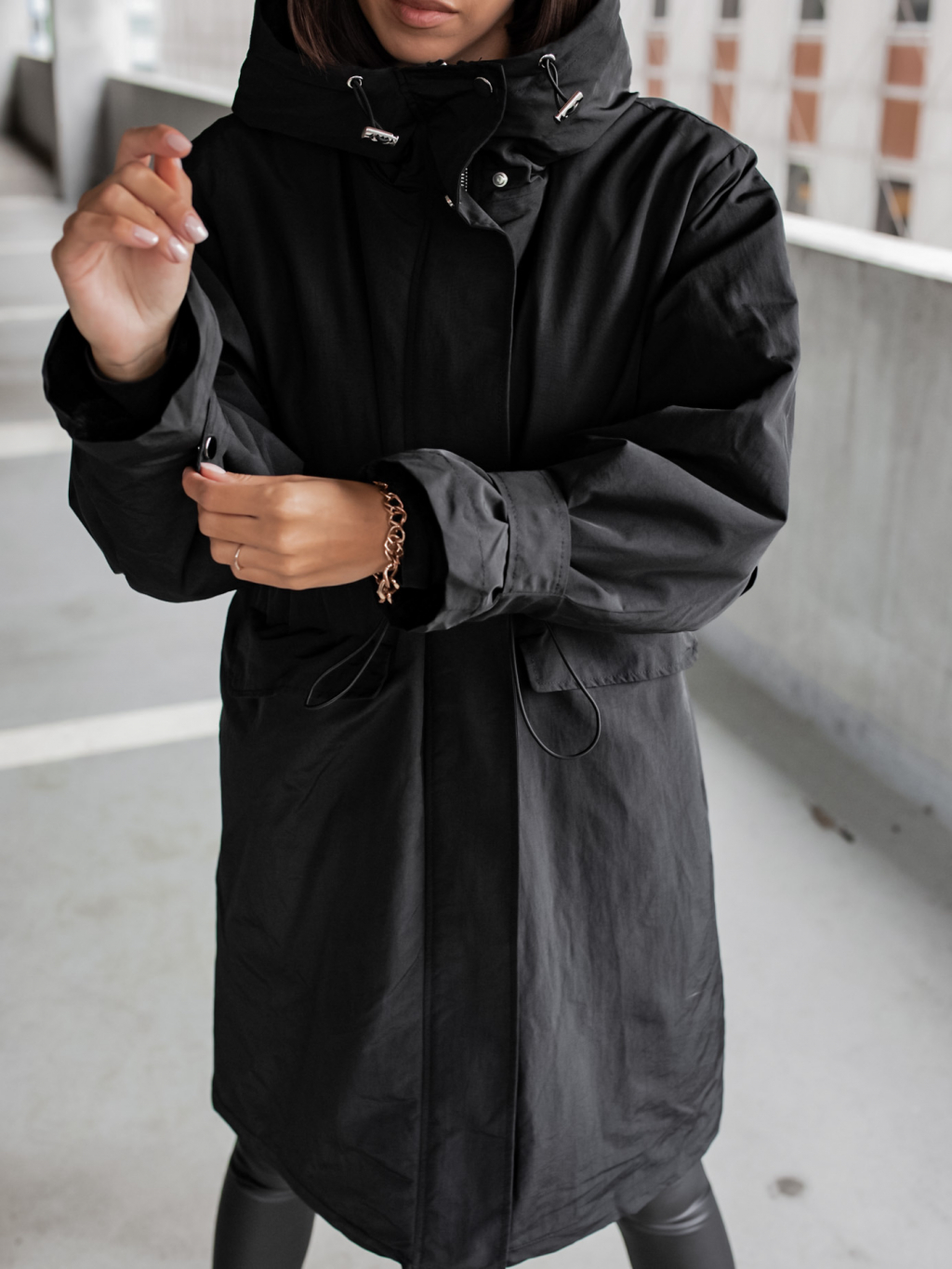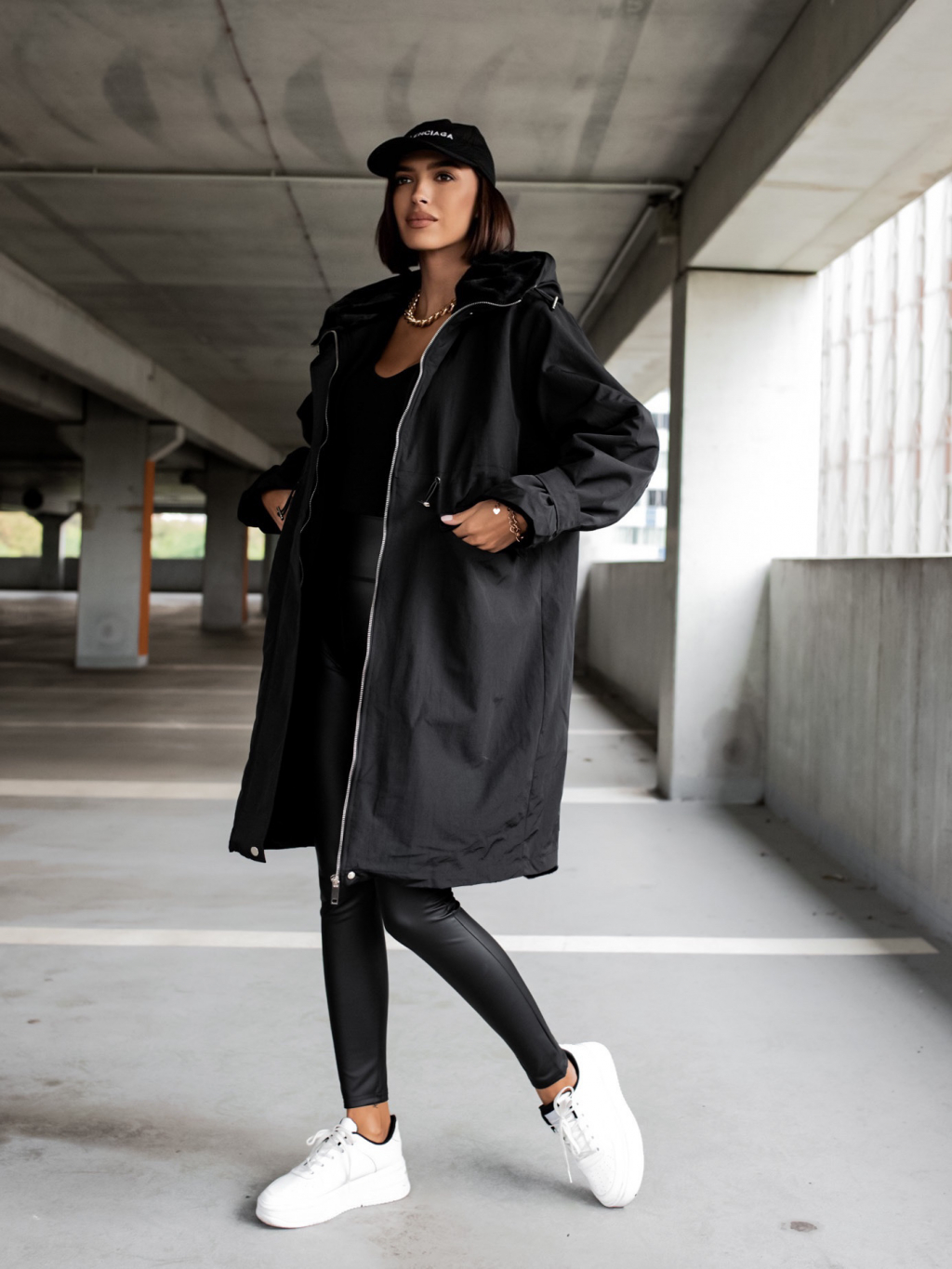Uvnitř bundy je plyš (vhodnější je kombinovat s tmavším outfitem kvůli chloupkům z plyše). Nesporná výhoda je, že plyš krásně hřeje.