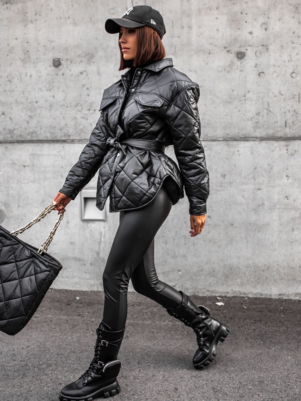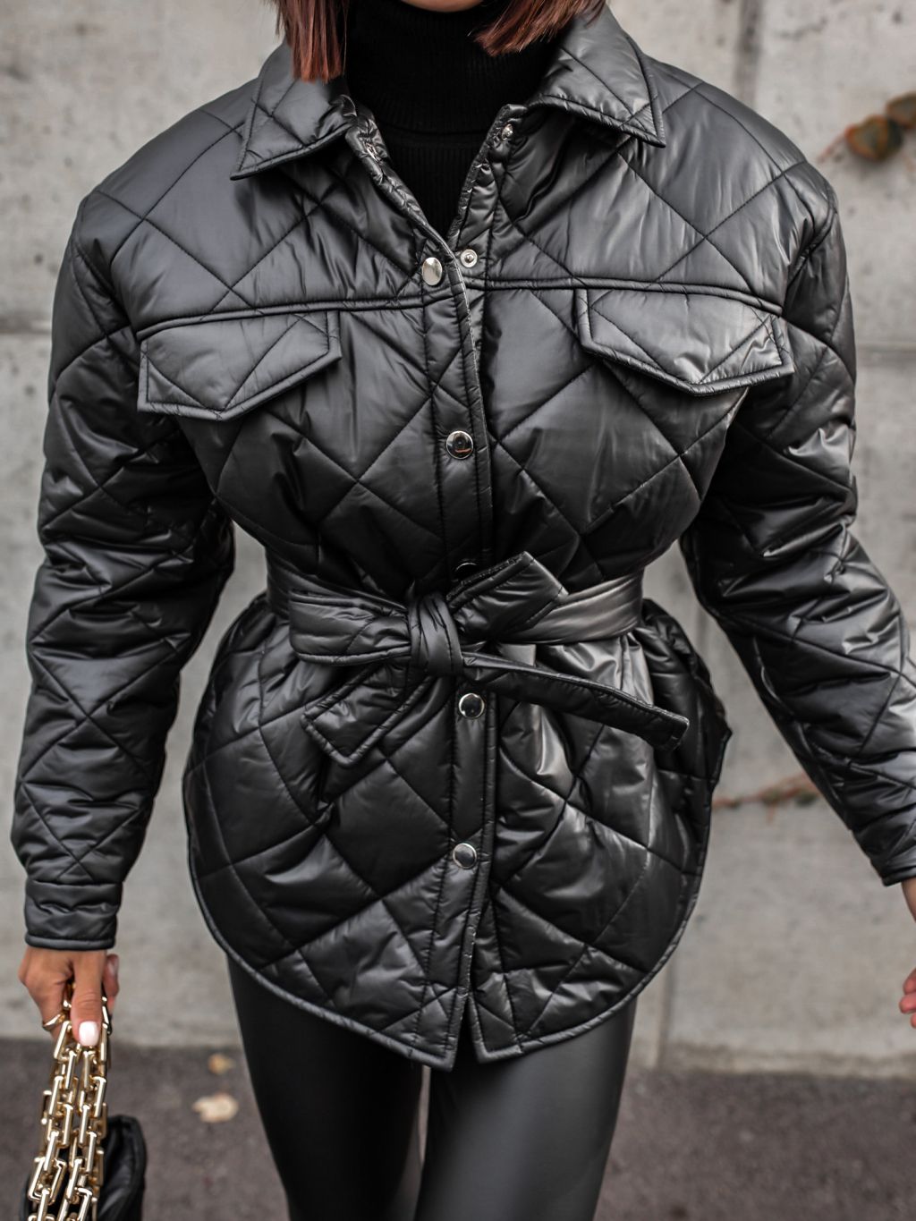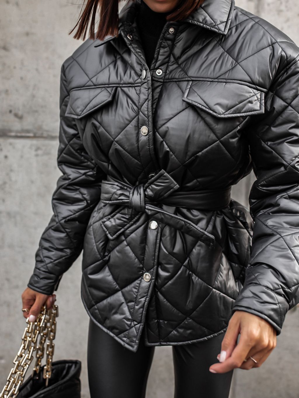 Součástí bundičky je i stylová prošívaná kabelka přes rameno.