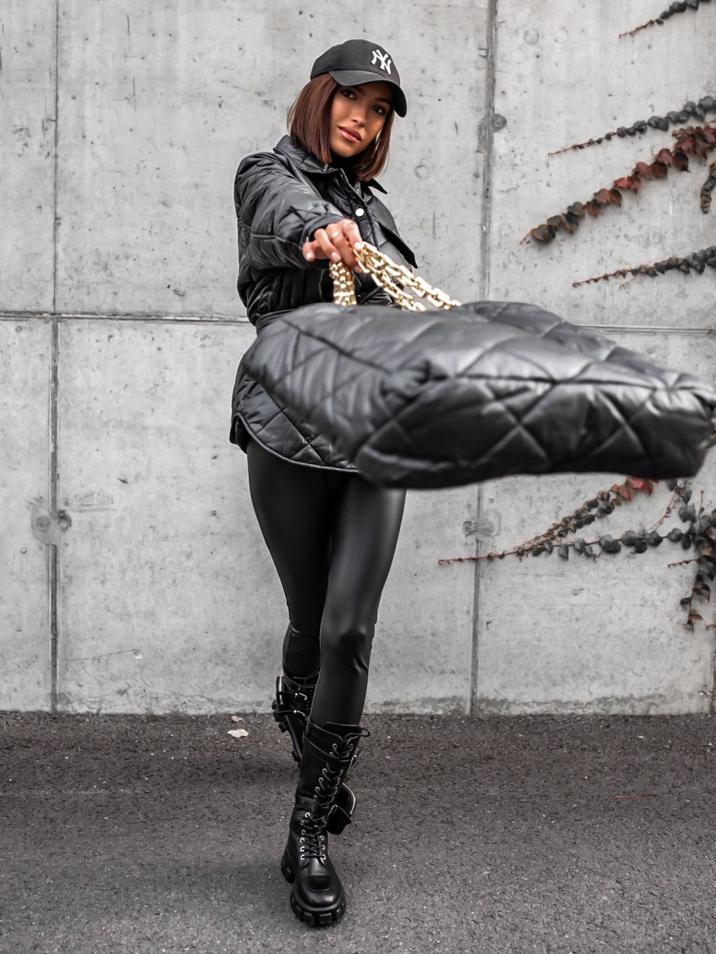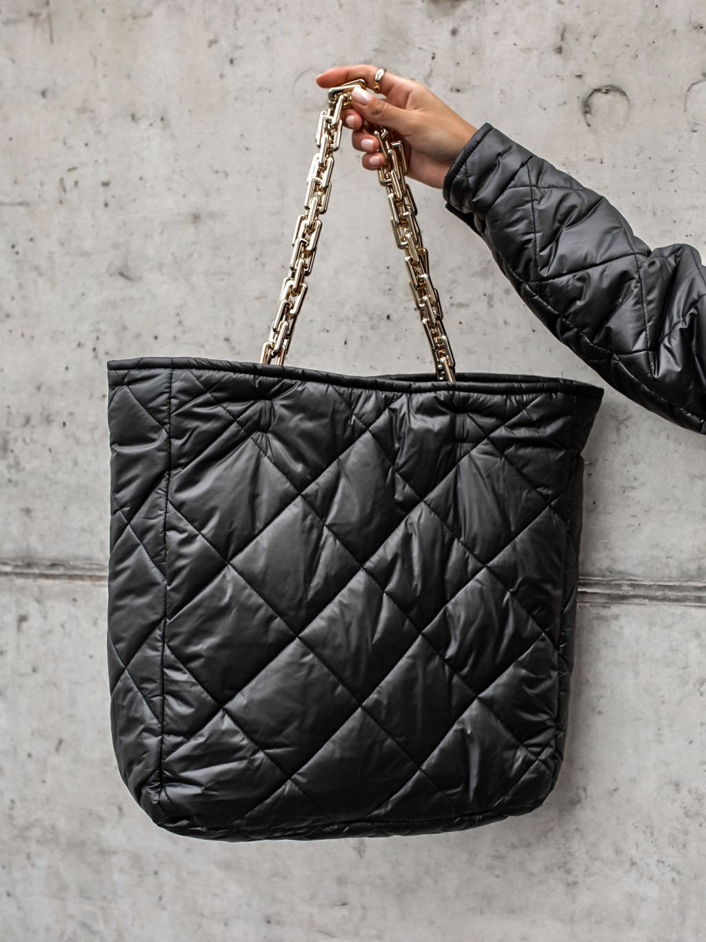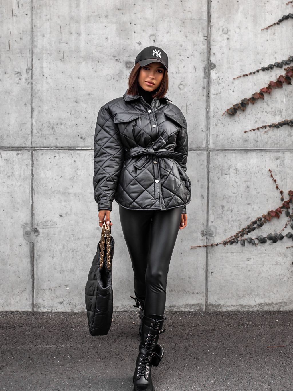 Součástí bundičky je i stylová prošívaná kabelka přes rameno.