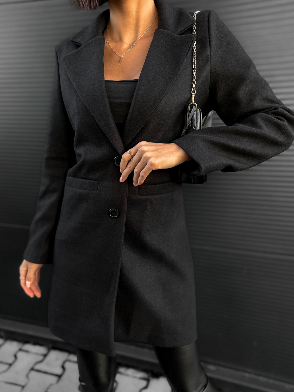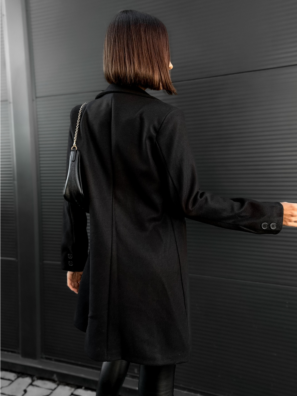 Černý elegantní flaušový kabát NOAM