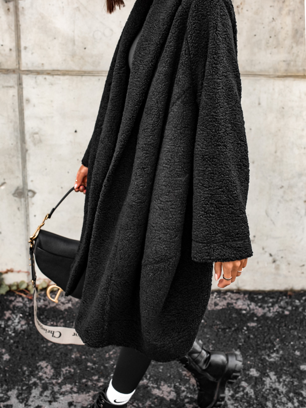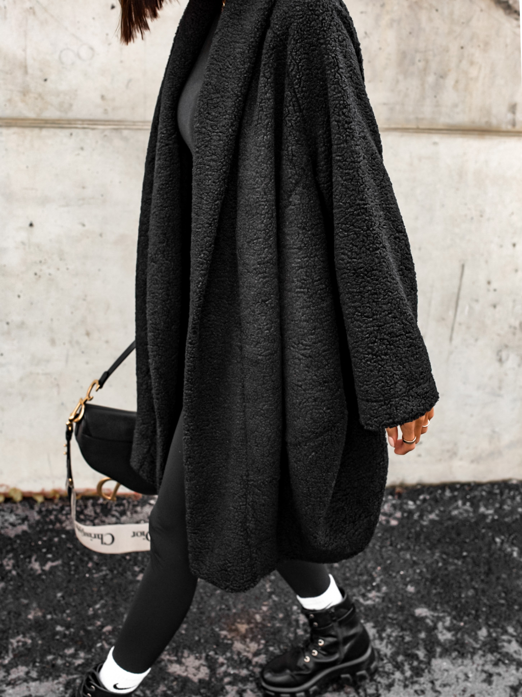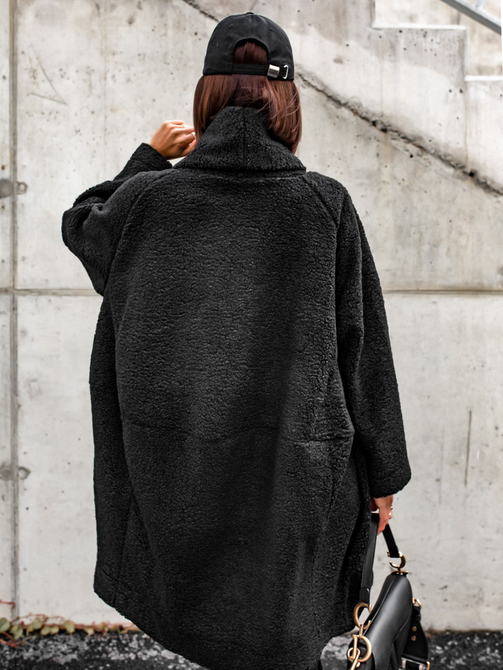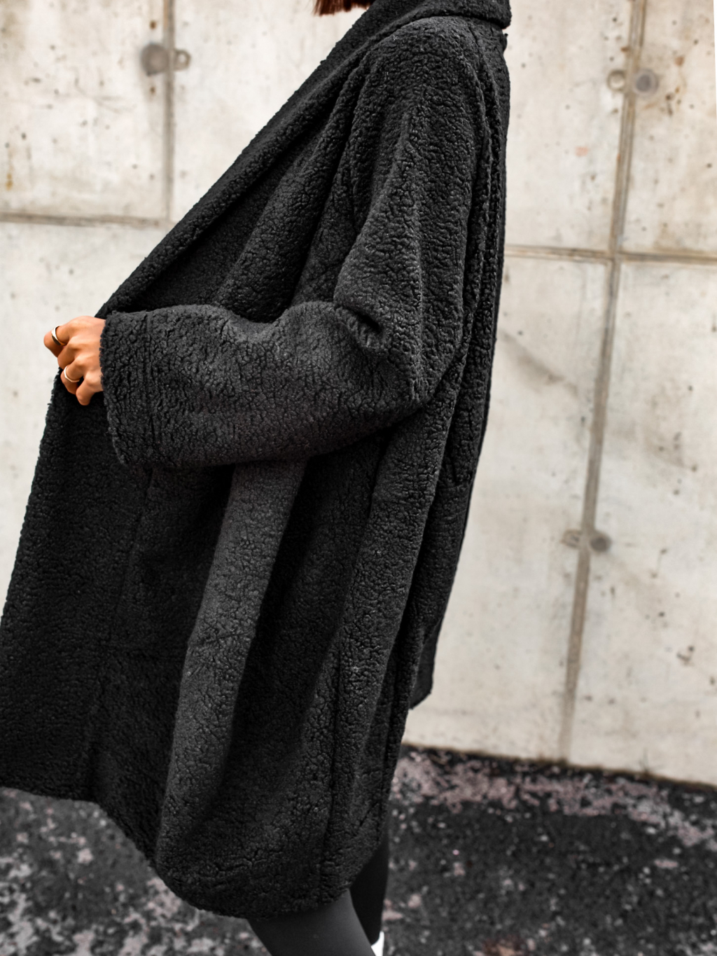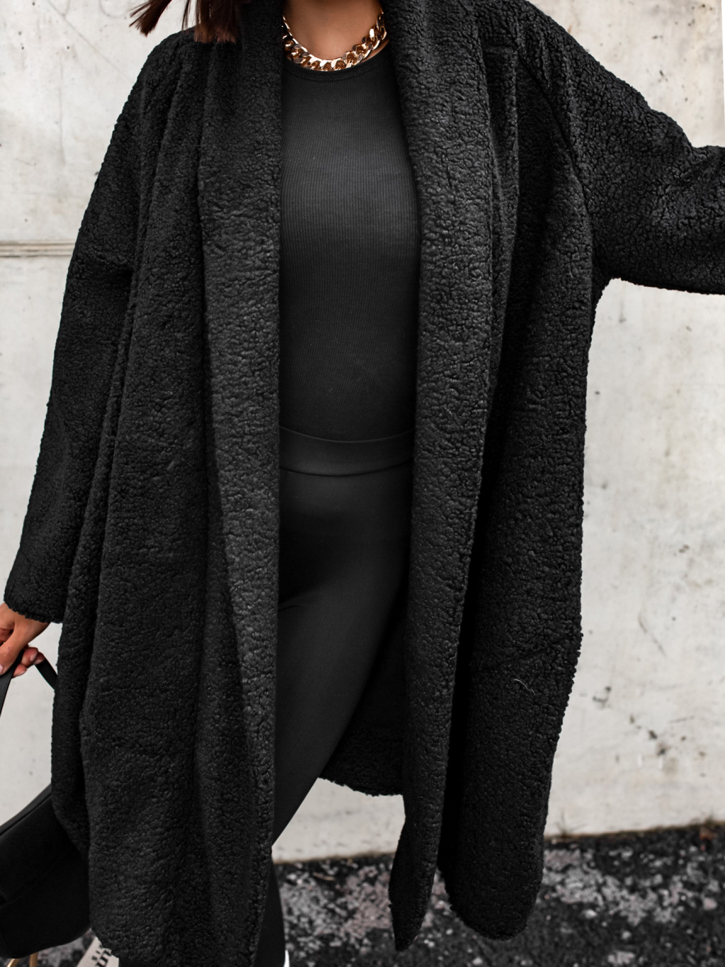 Černý kabát NOMAD otevřeného střihu
