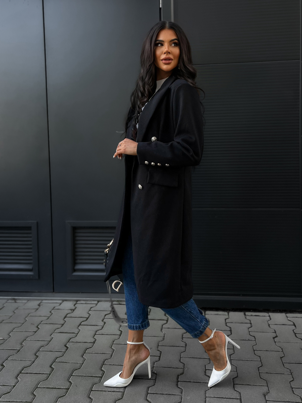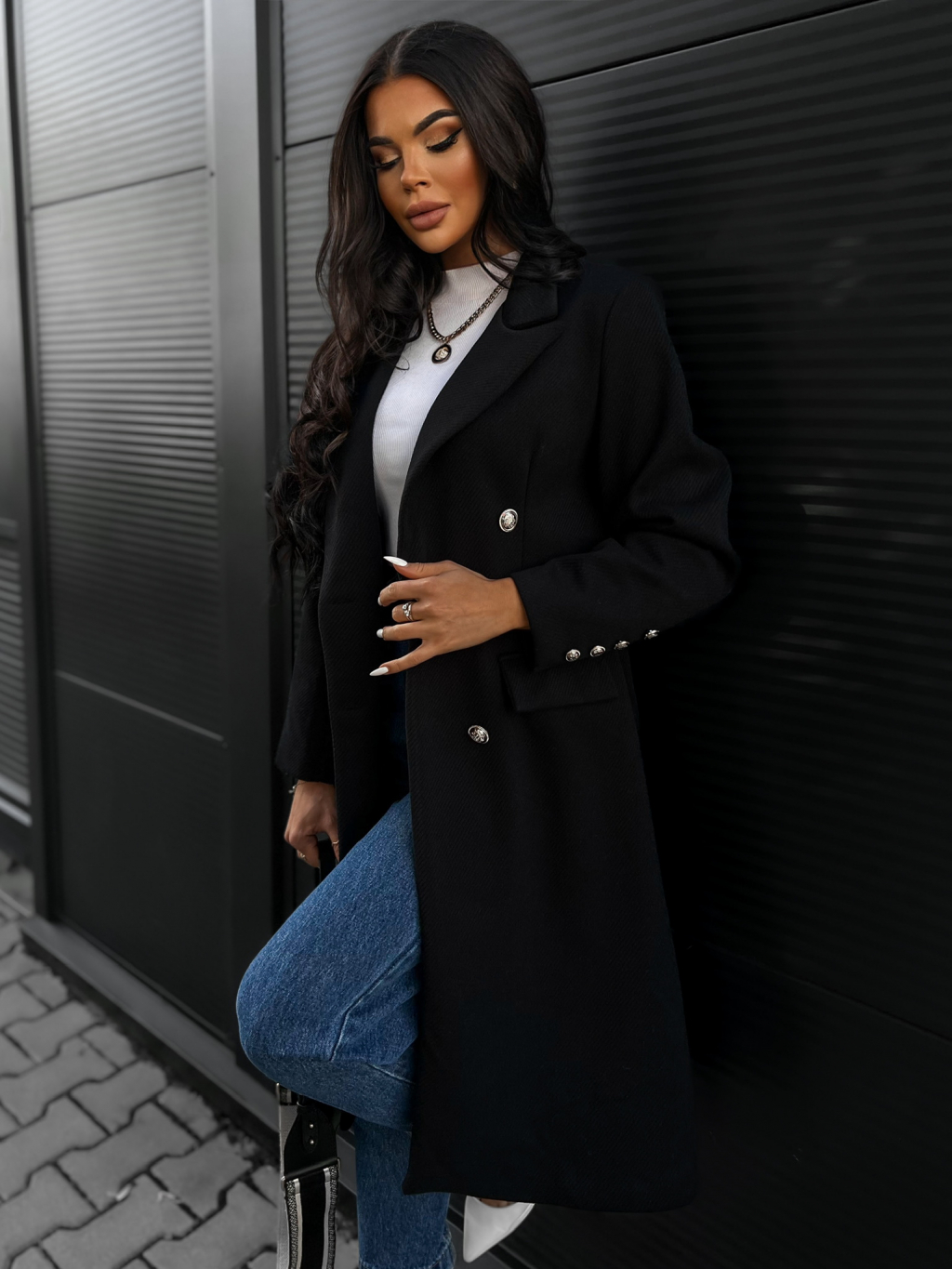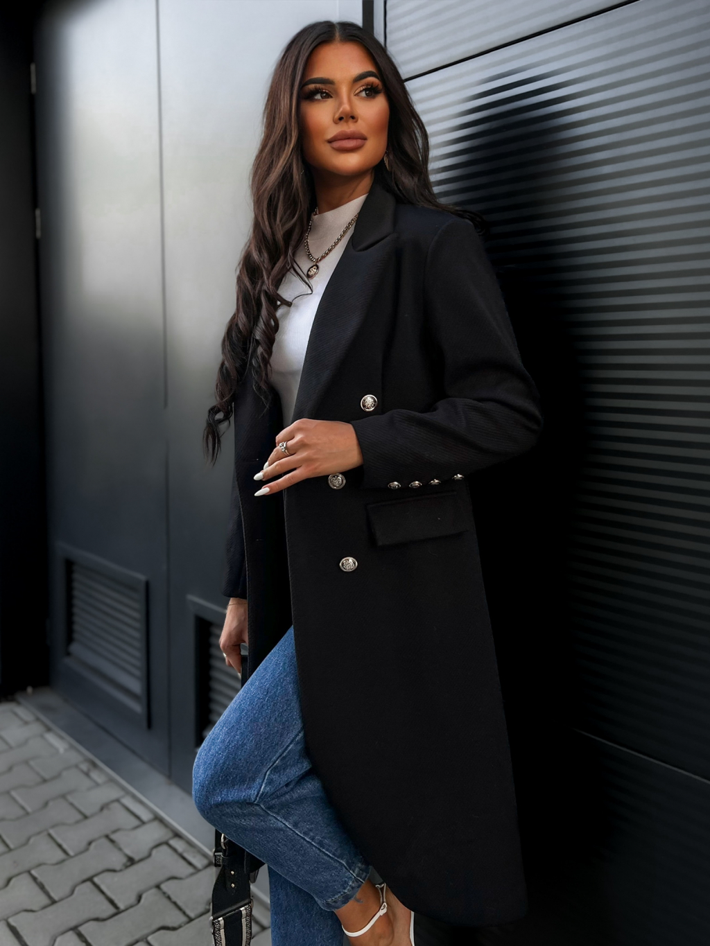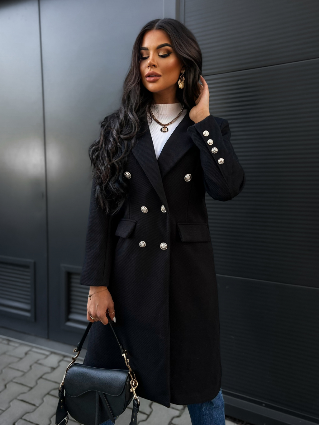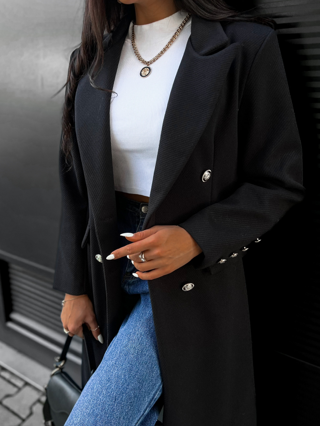 Černý kabát PHILS na knoflíky