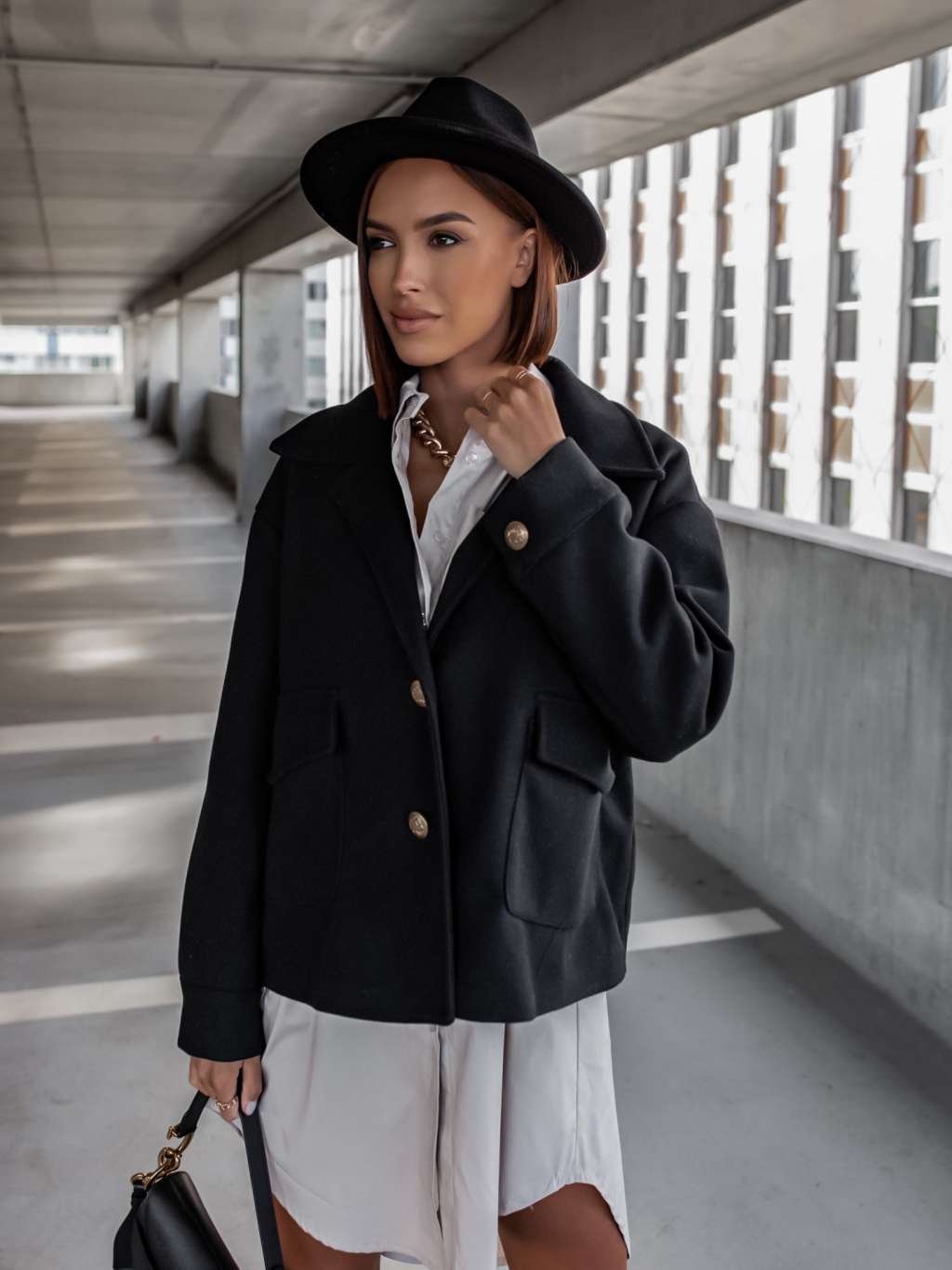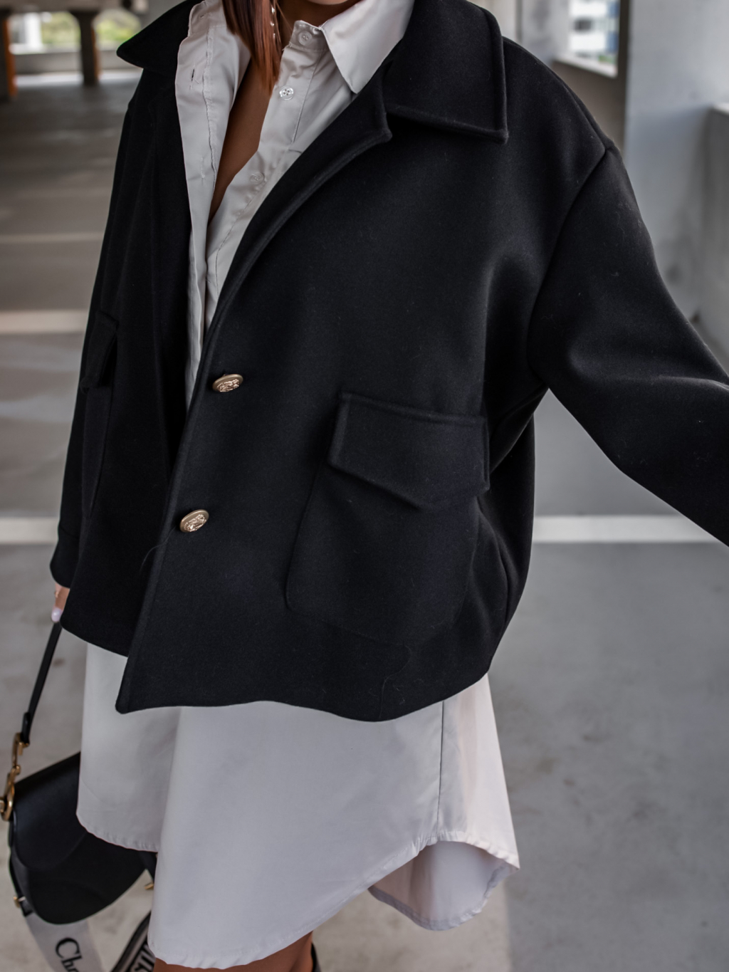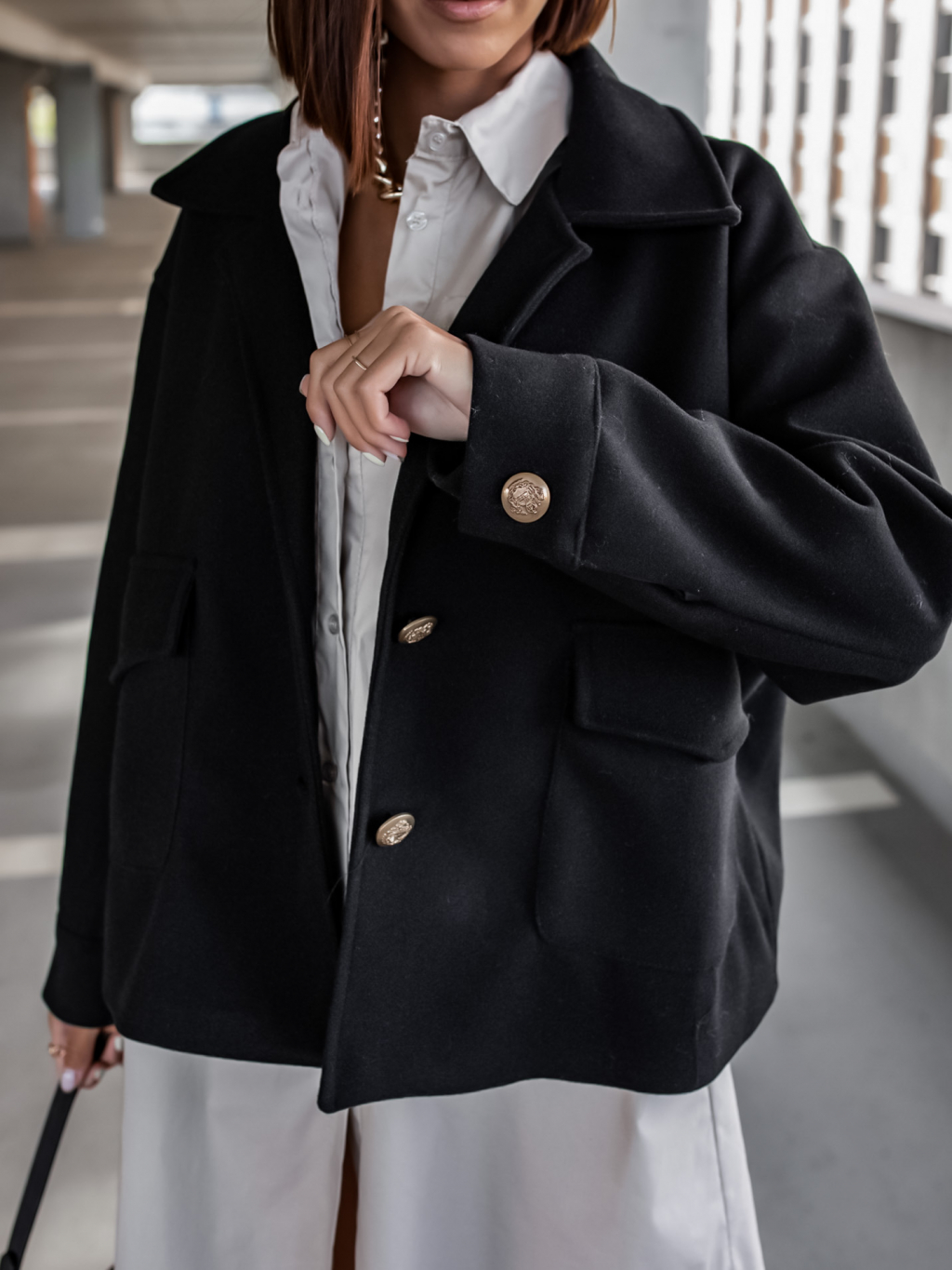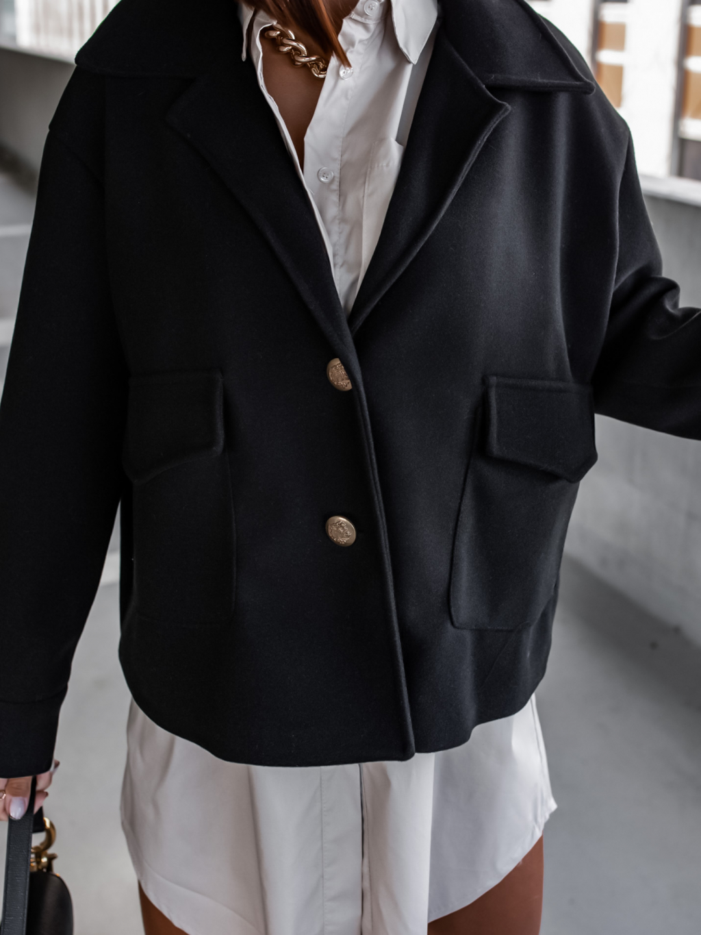Černý kratší kabátek KEPT se zlatými knoflíky