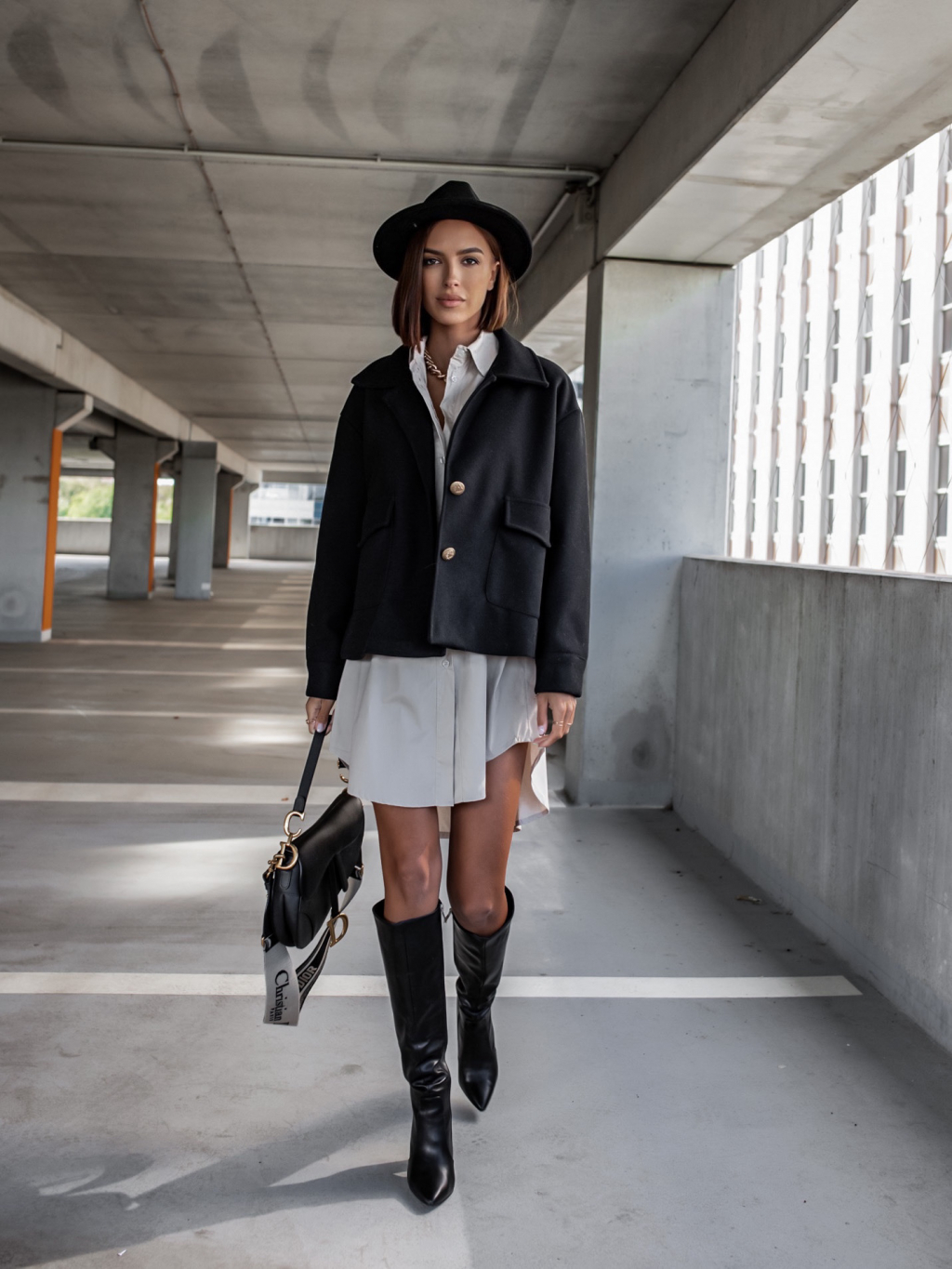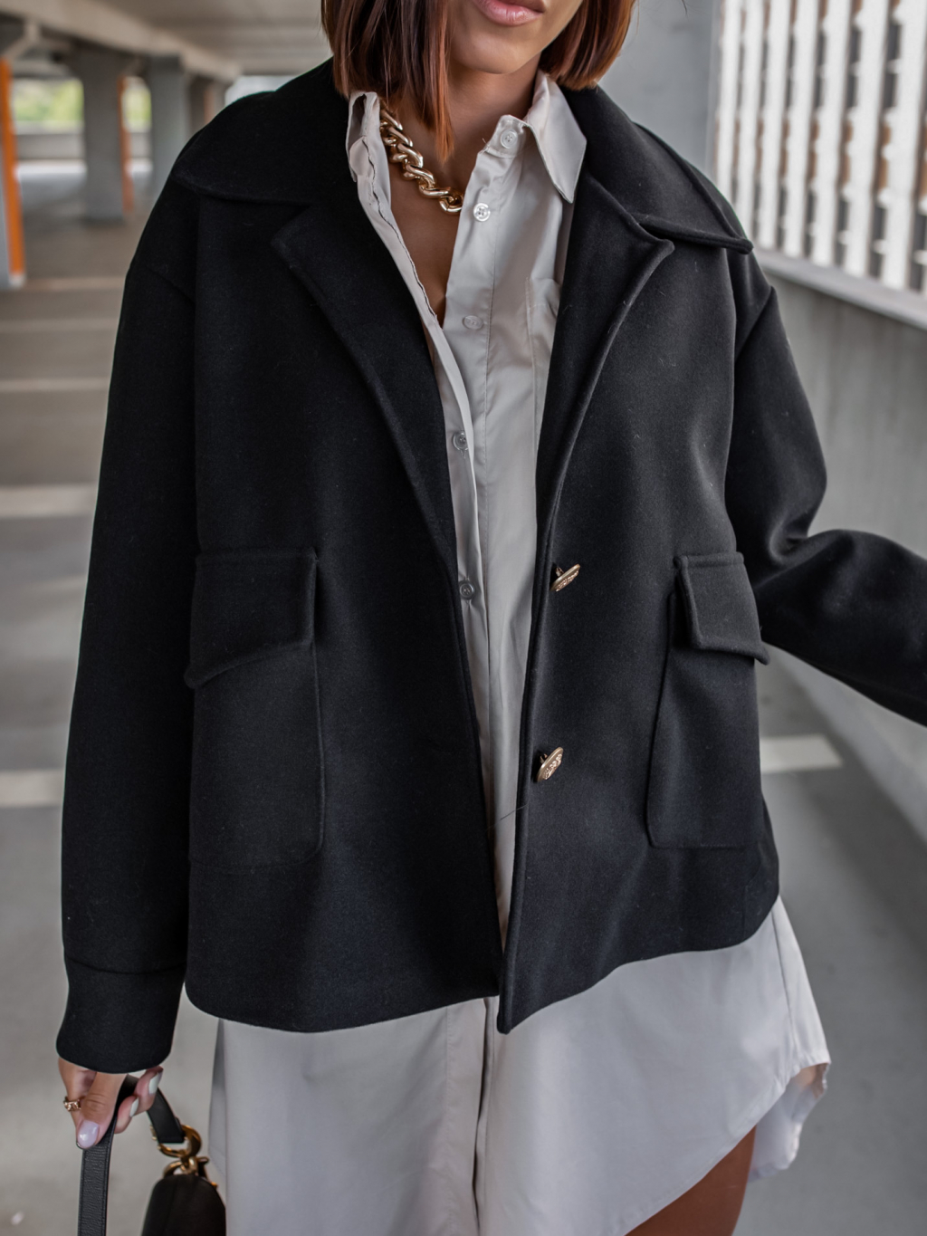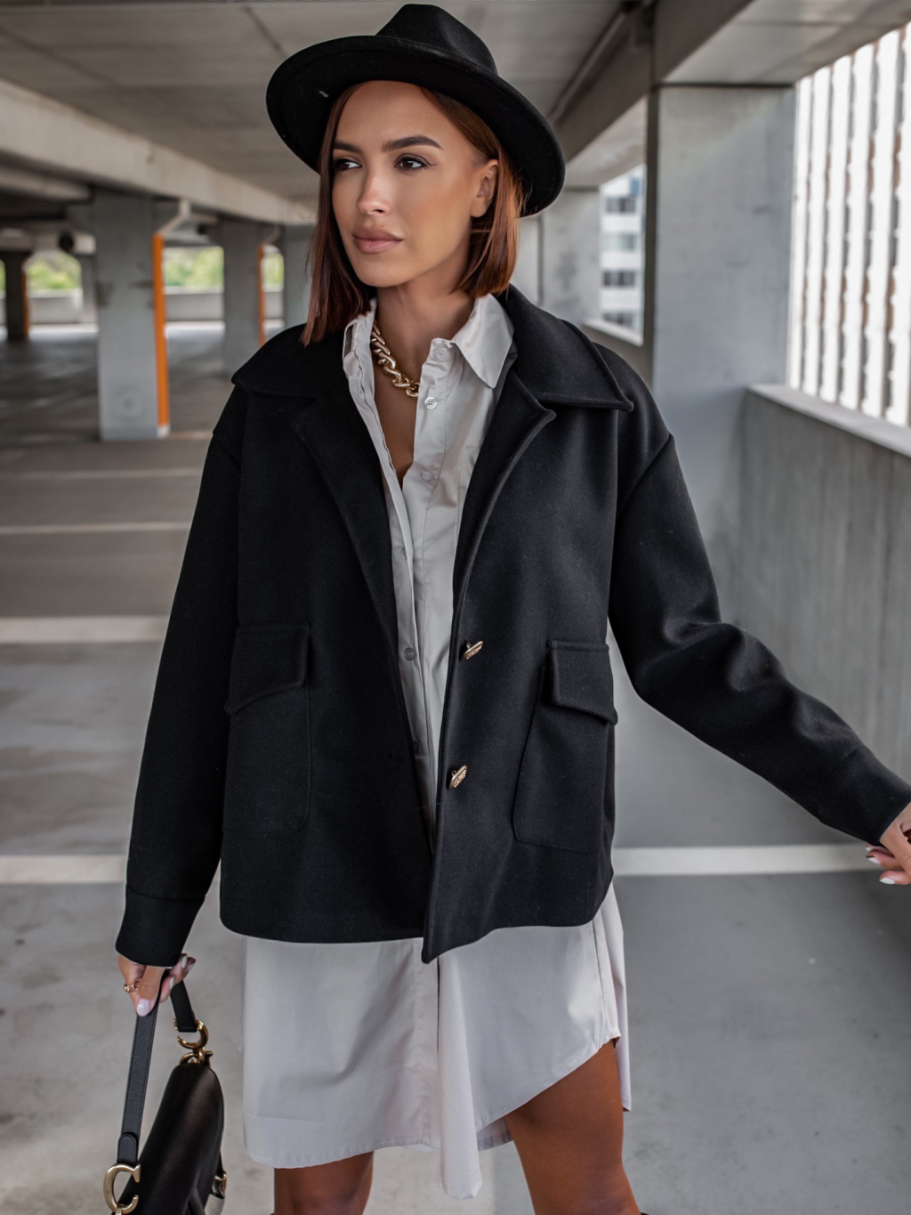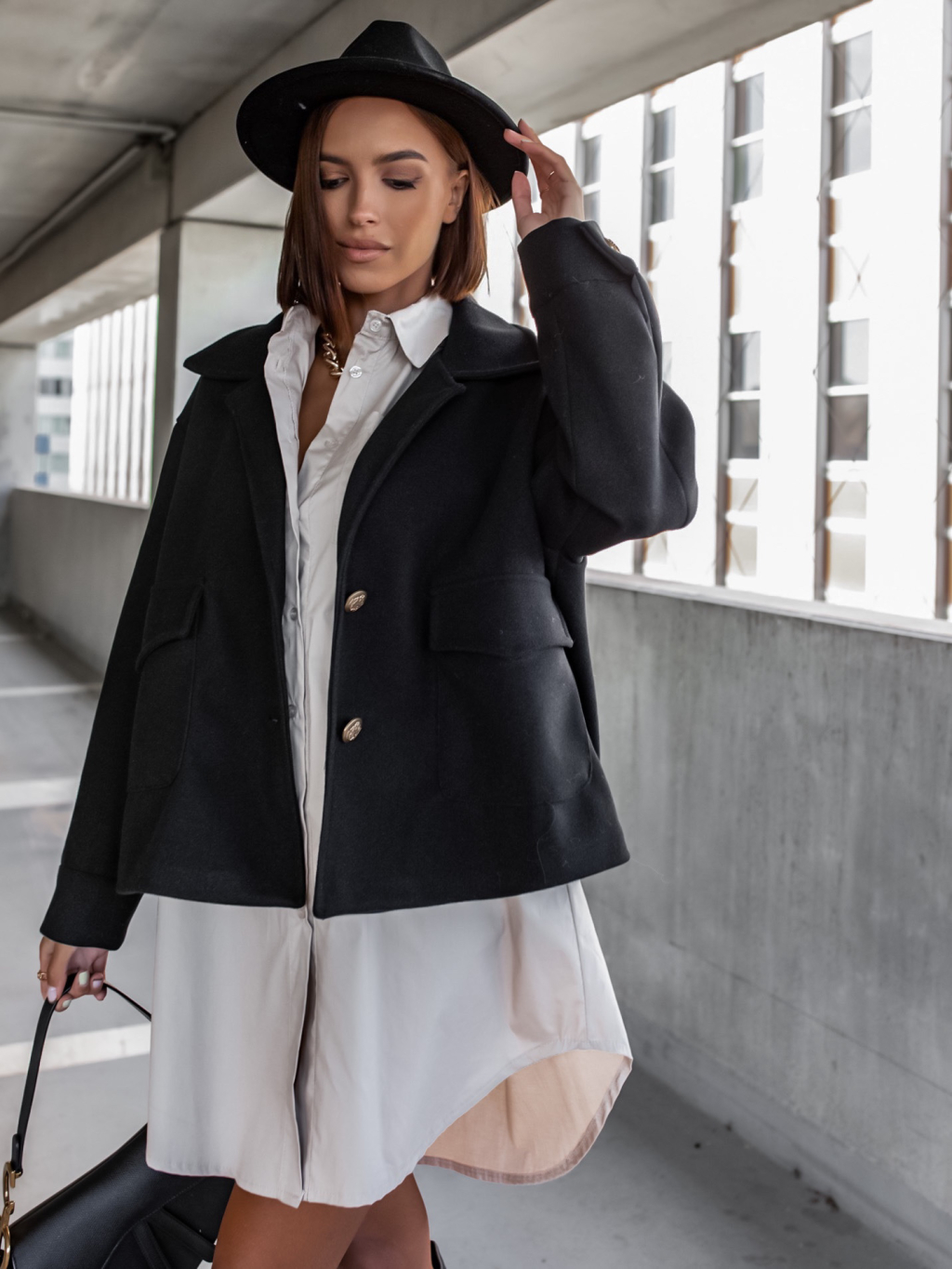 Černý kratší kabátek KEPT se zlatými knoflíky