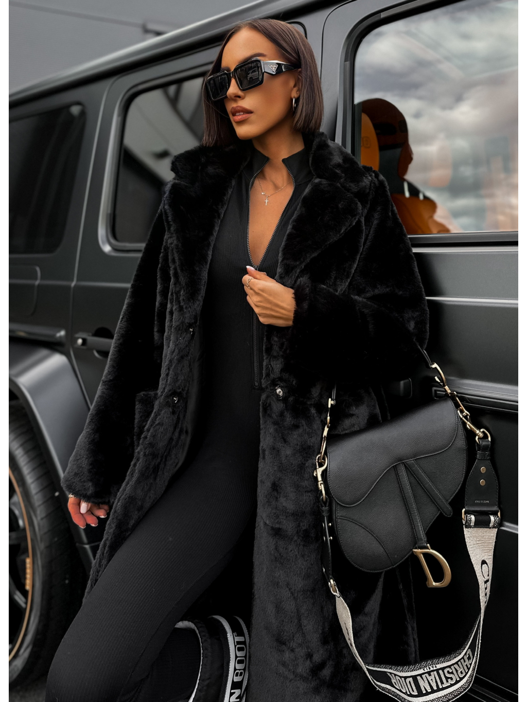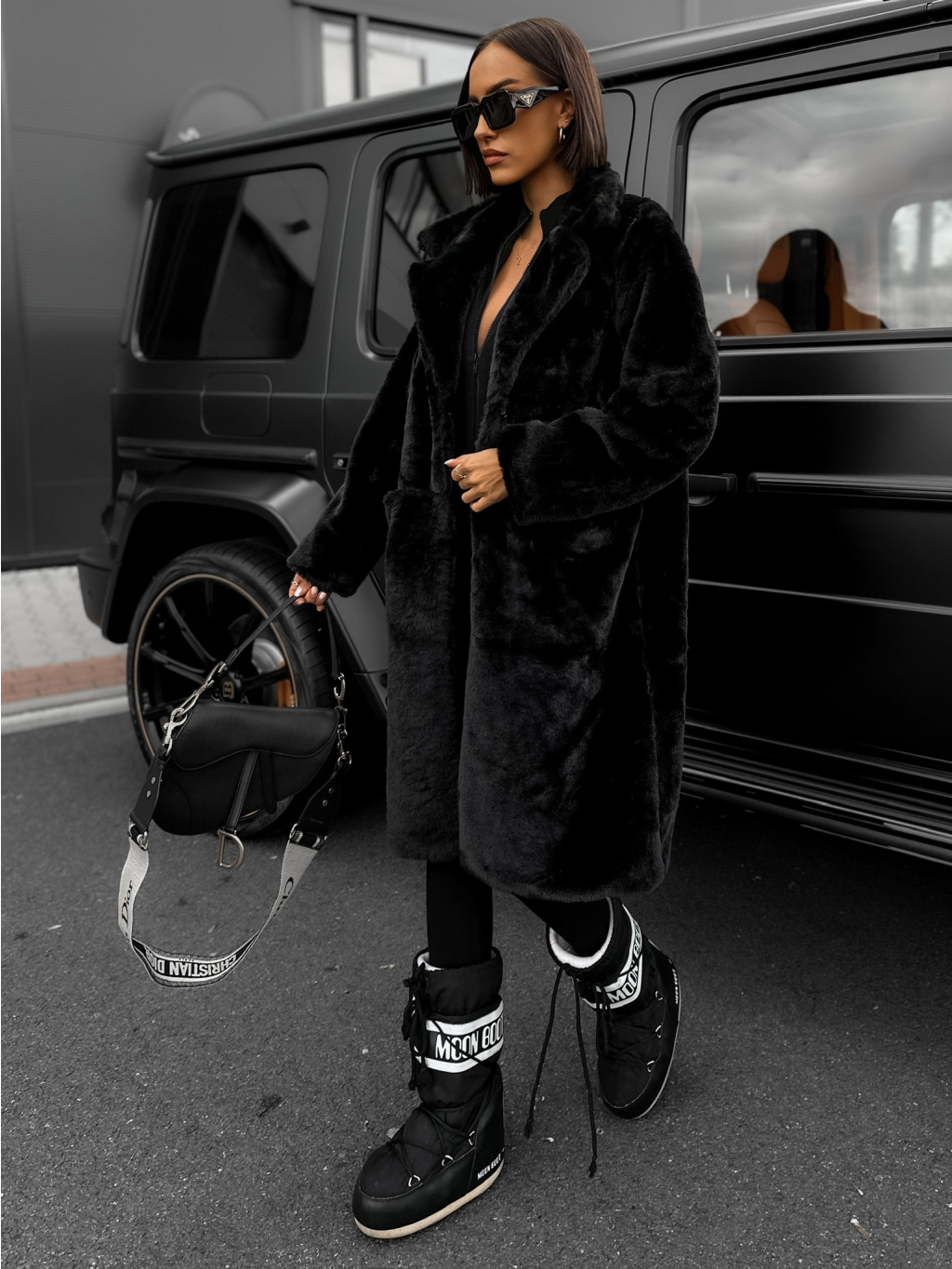 Černý plyšový teddy kabát ASLAN