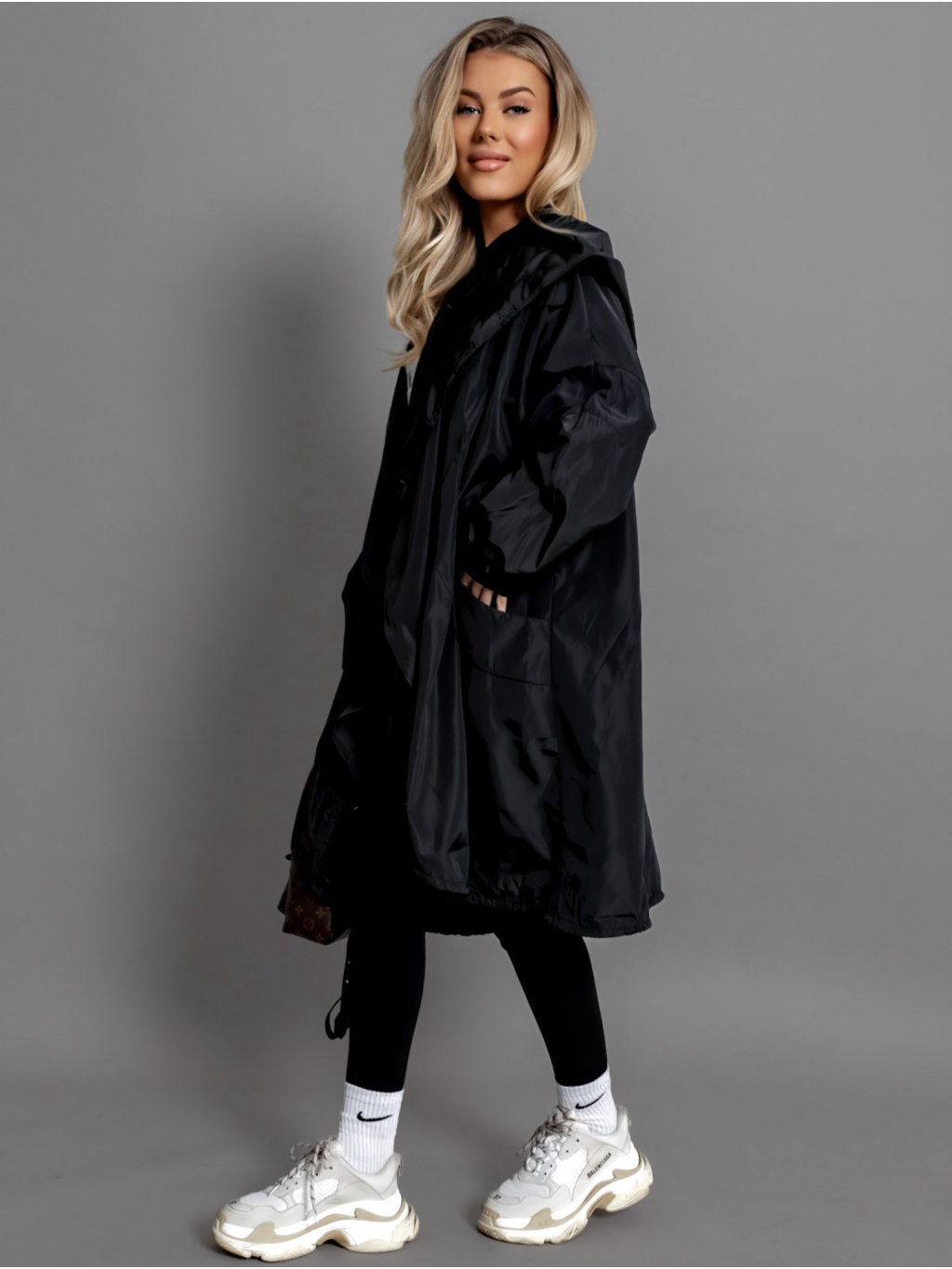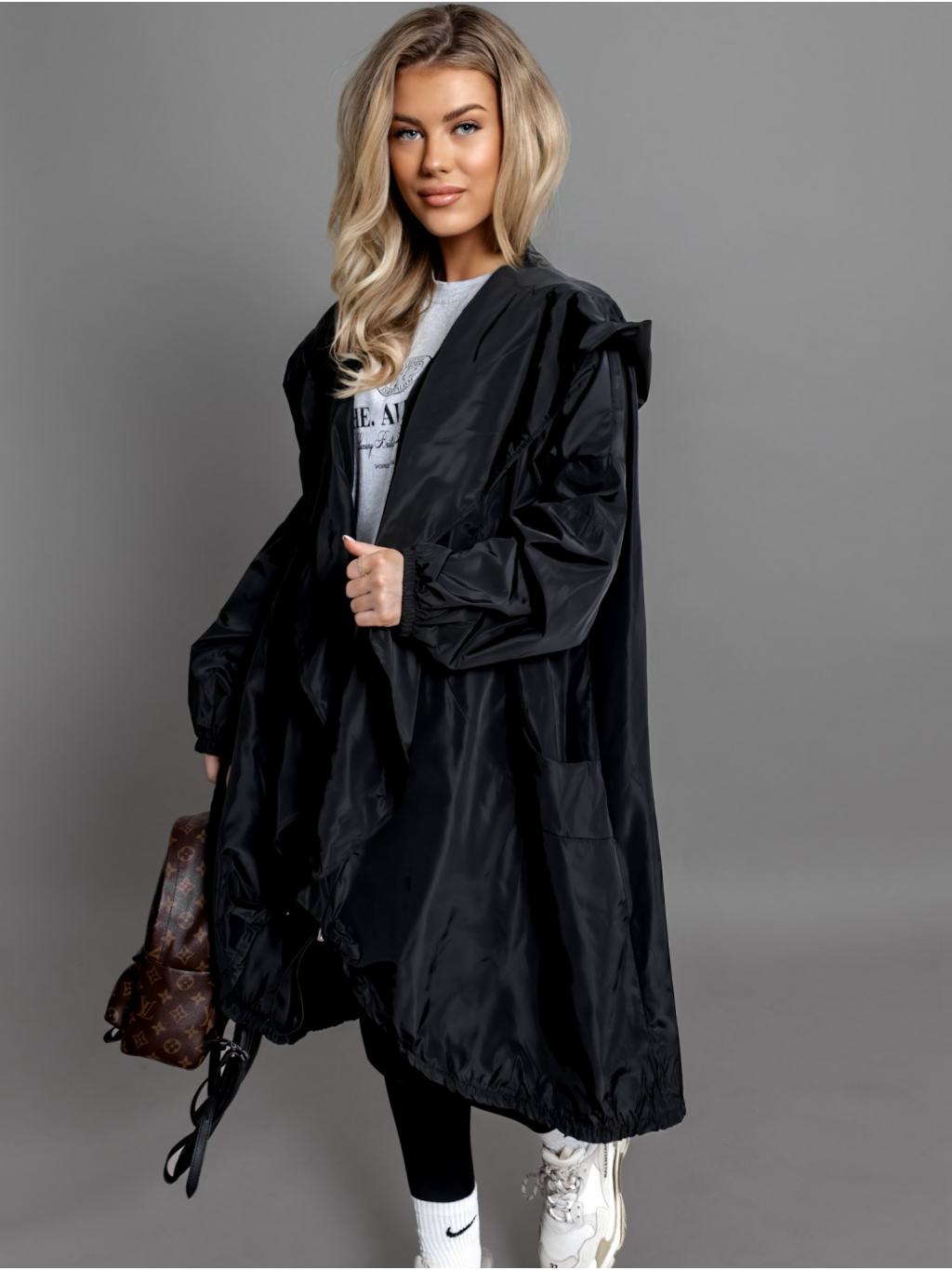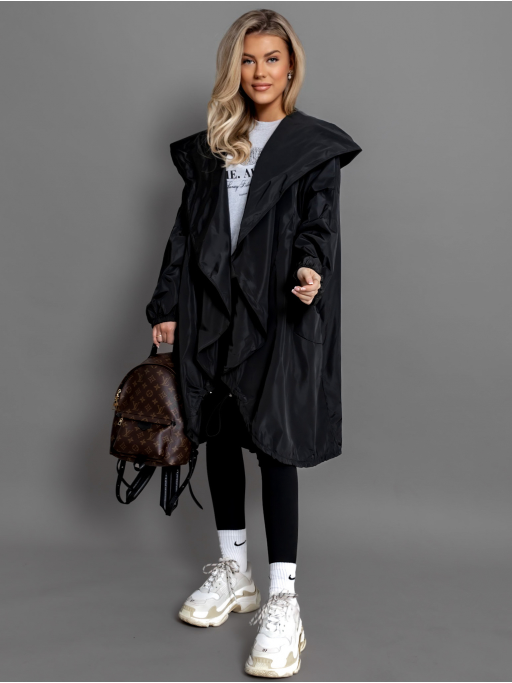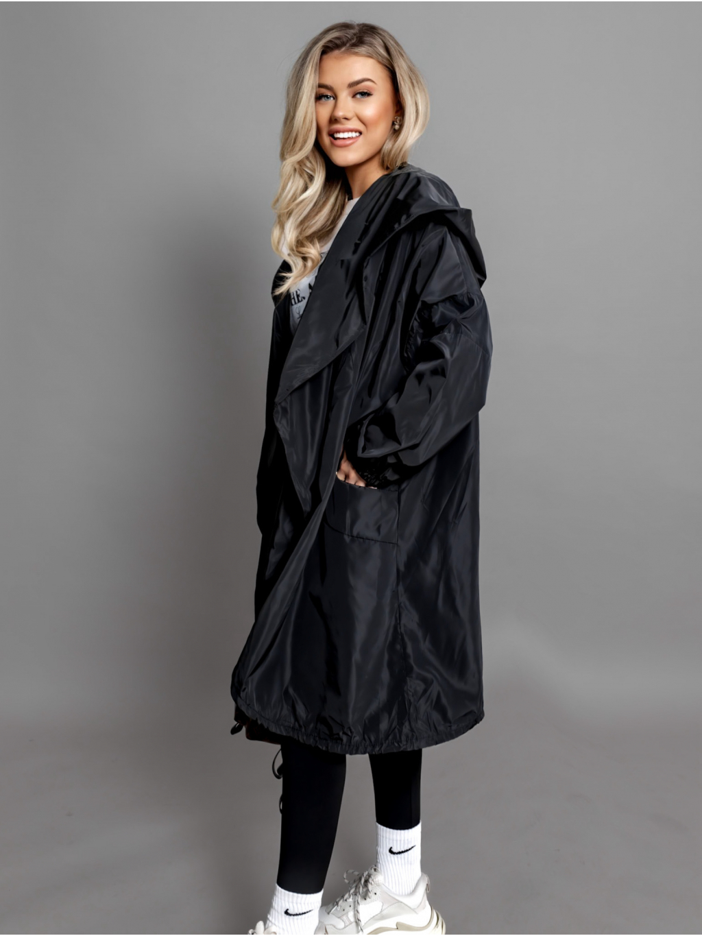 Černý šusťákový cardigan LUJUANA s kapucí