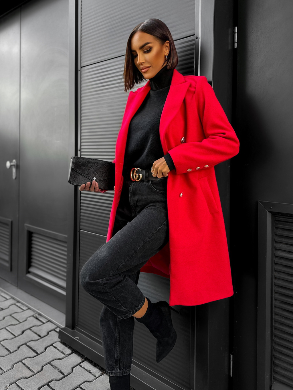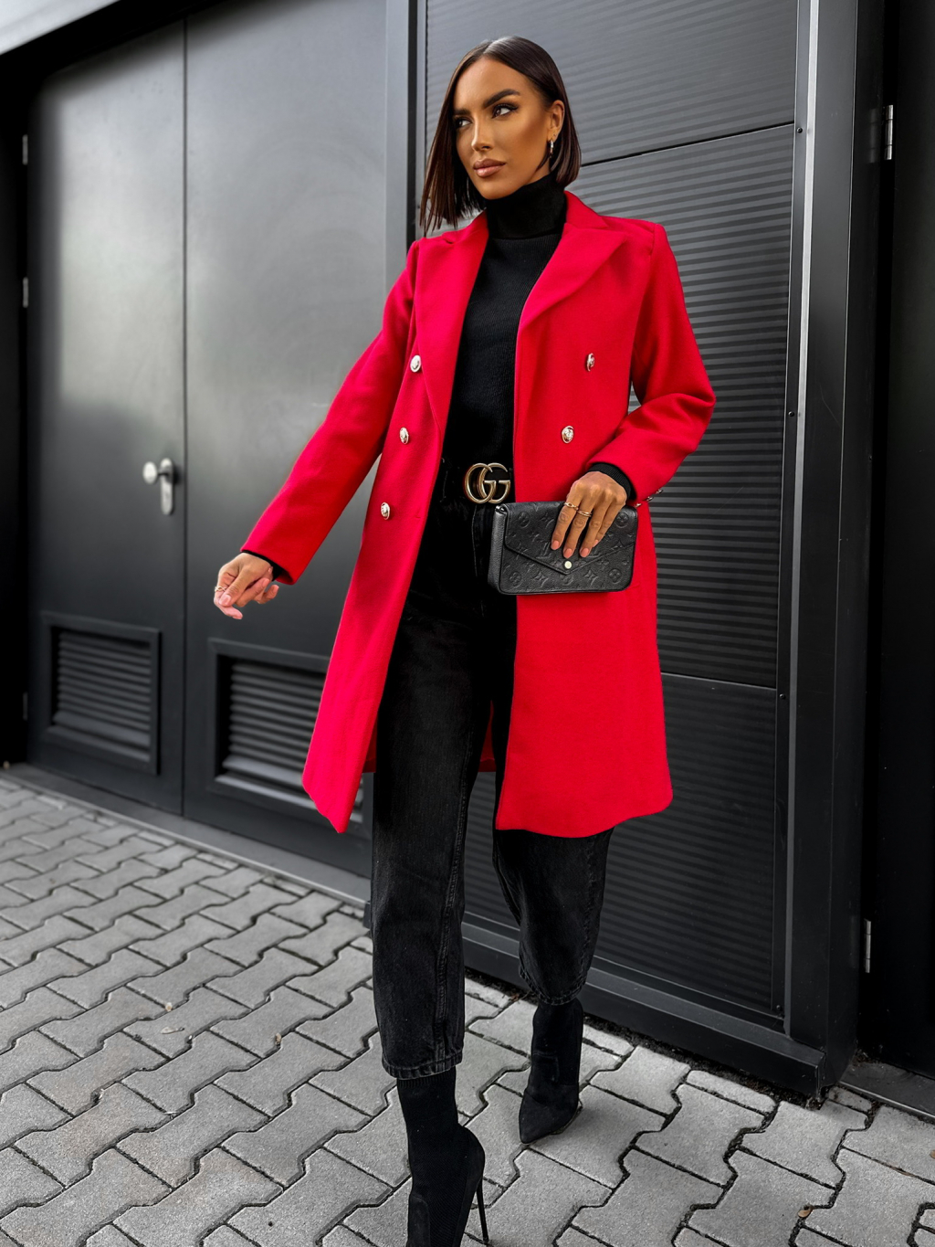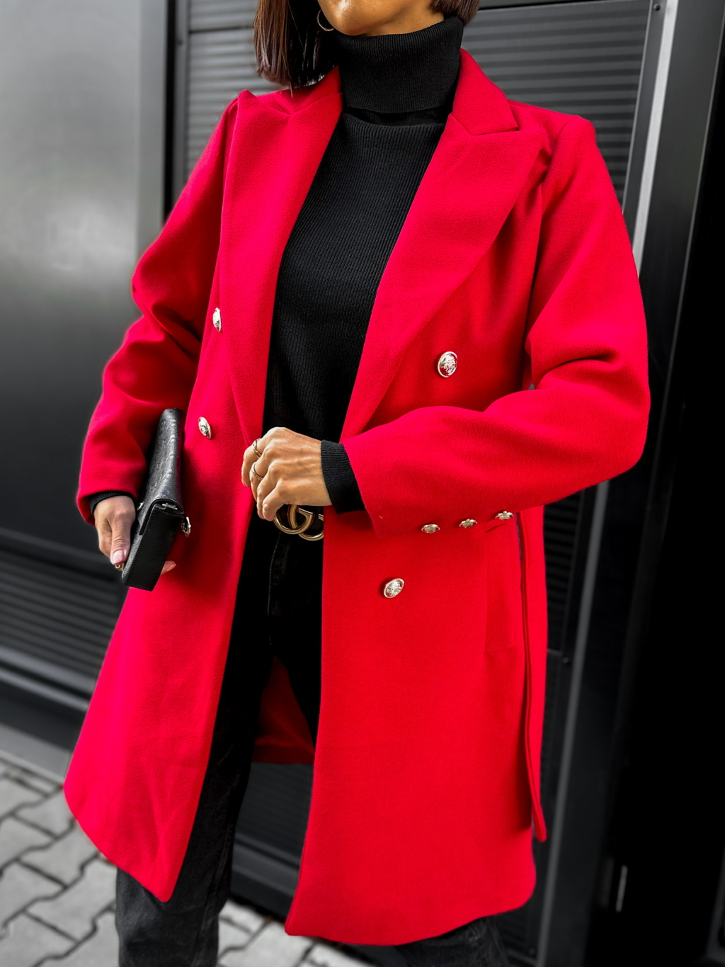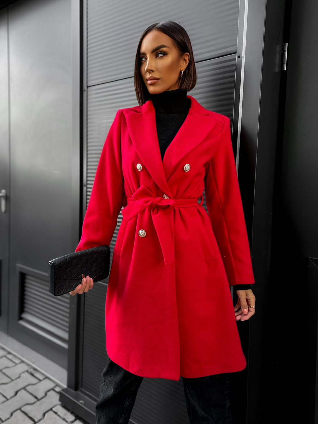 Červený kabát NUTRYD s páskem